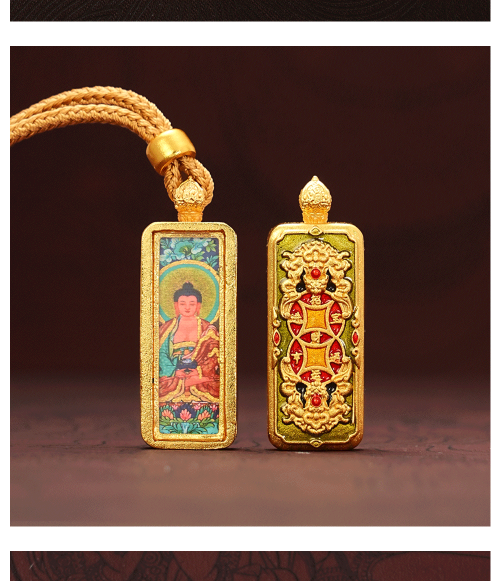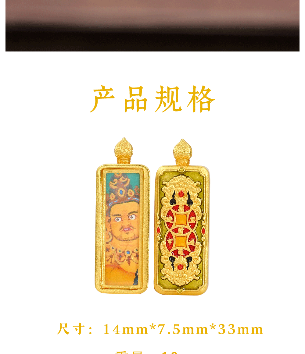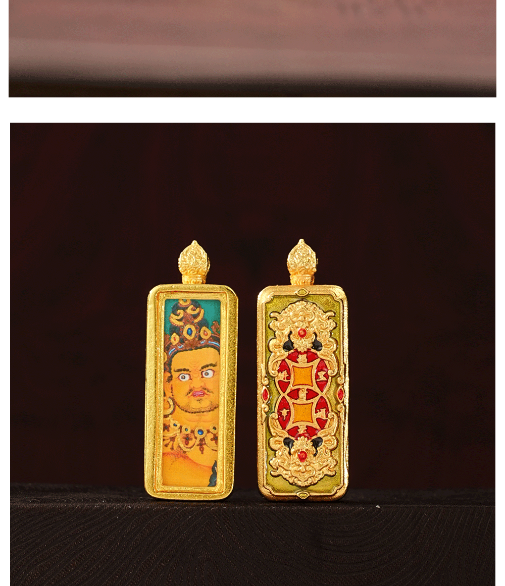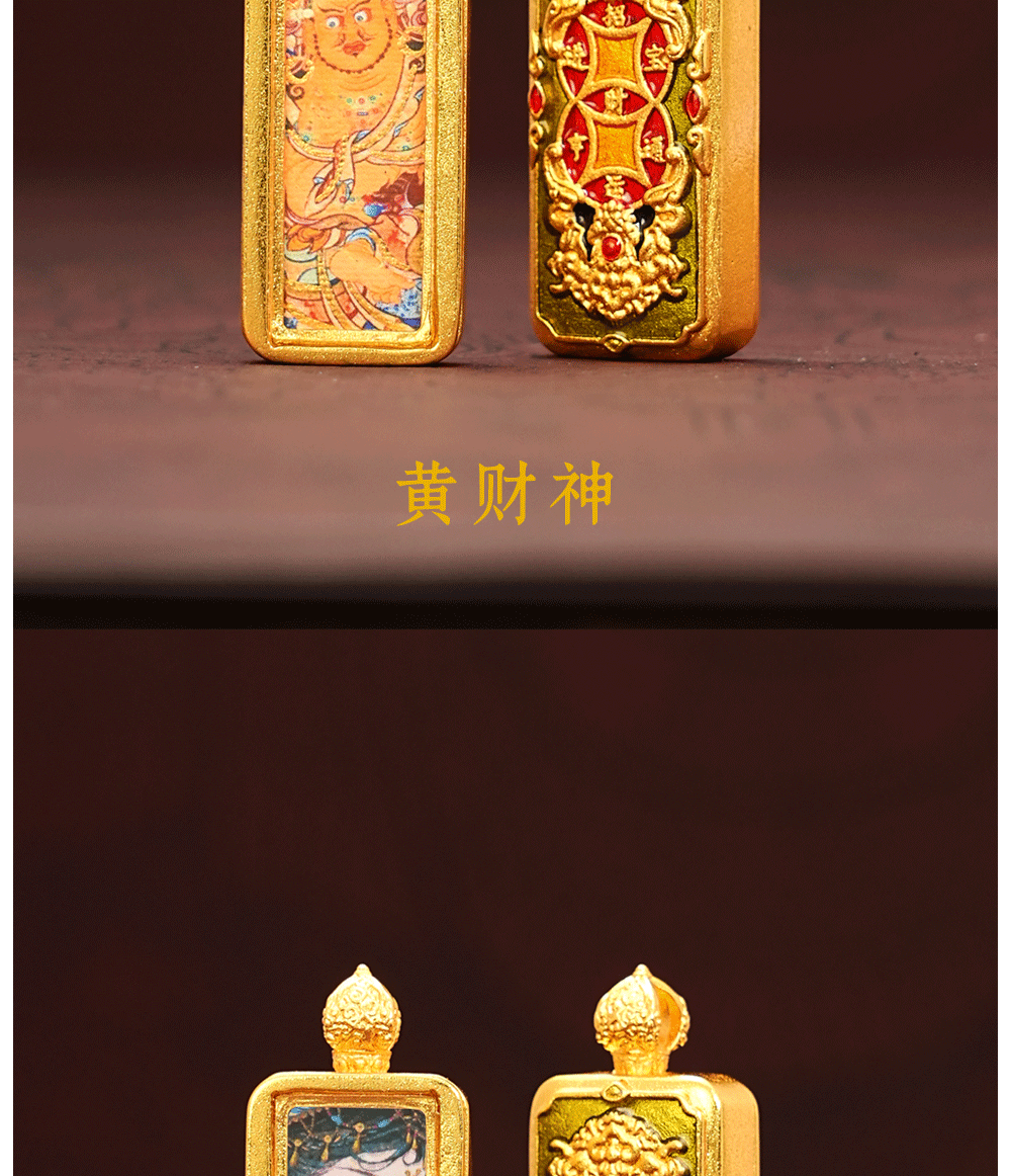 新款黄铜藏式小吊坠唐卡手绘描金八大守护神佛牌黄财神扎基拉姆