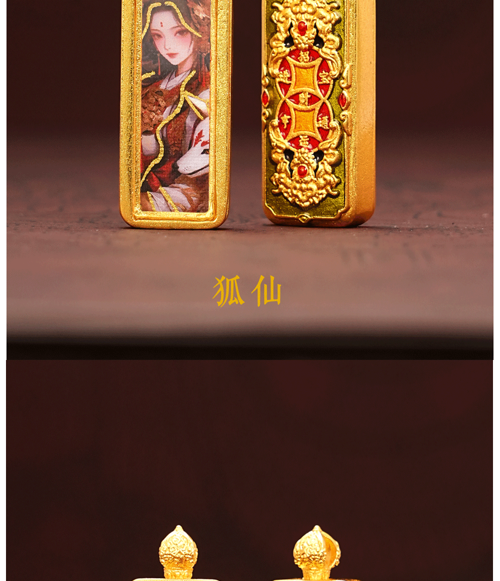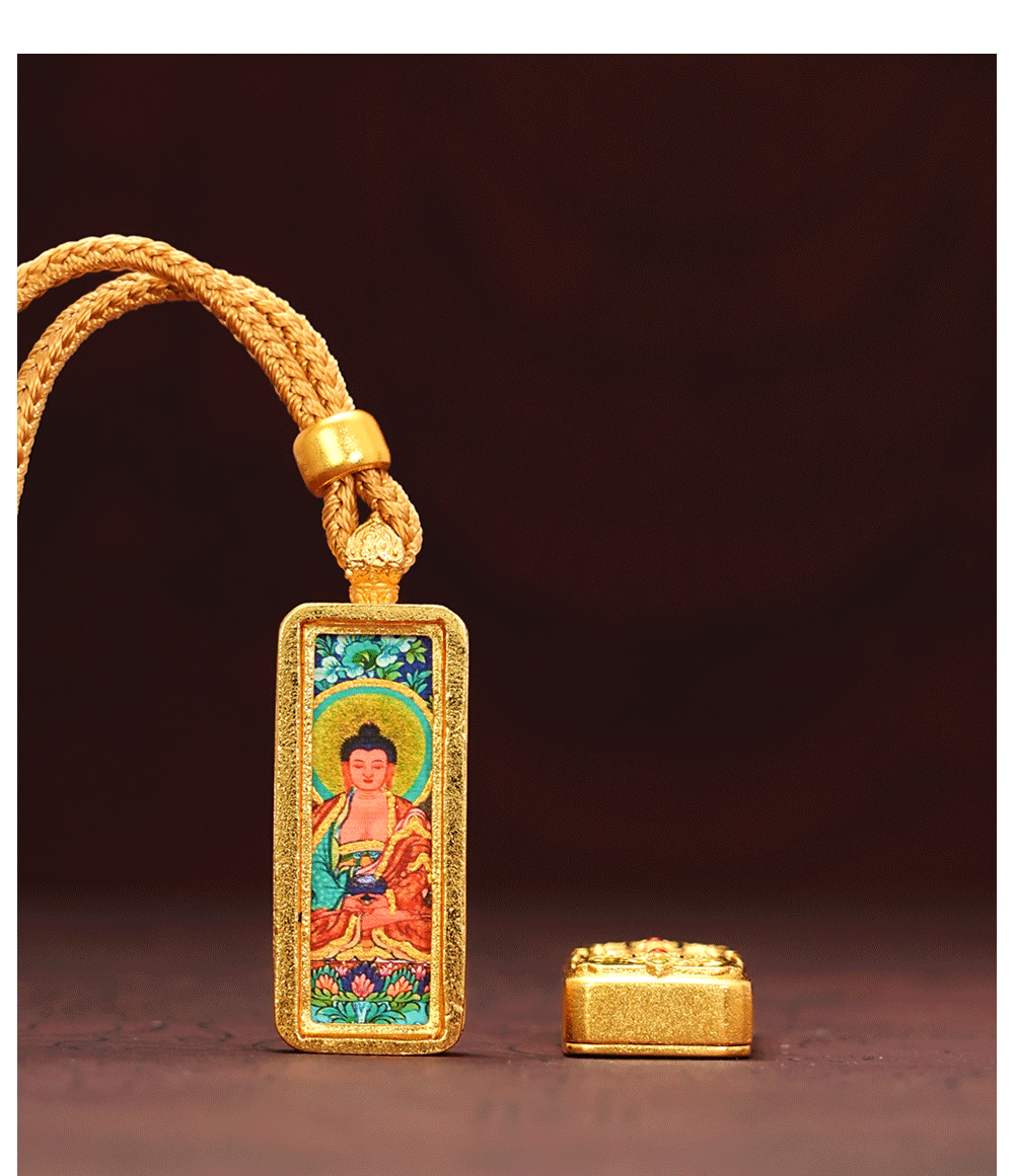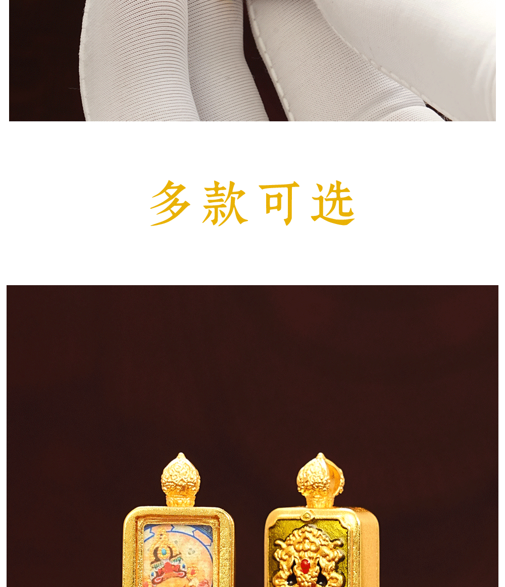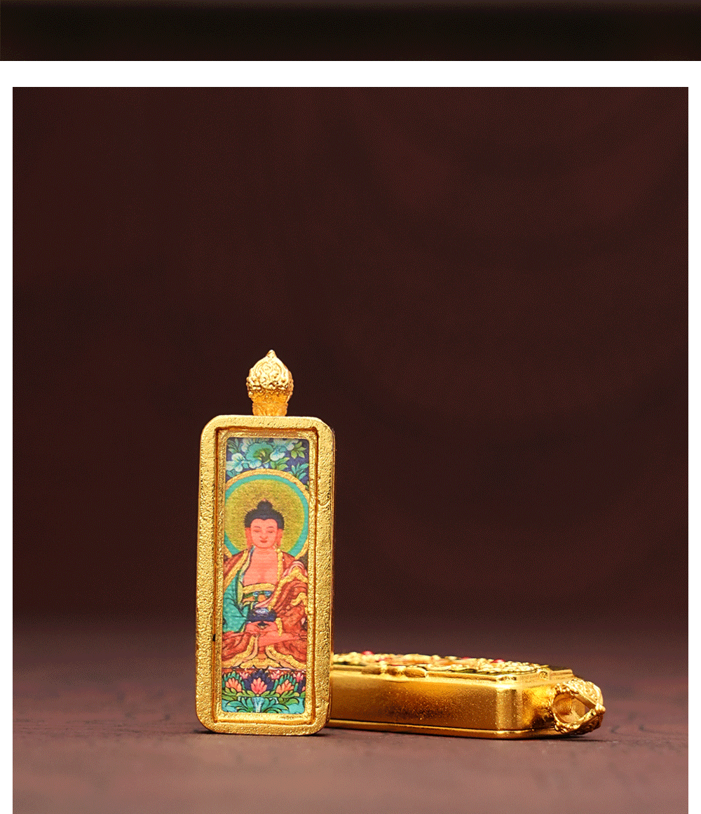 新款黄铜藏式小吊坠唐卡手绘描金八大守护神佛牌黄财神扎基拉姆