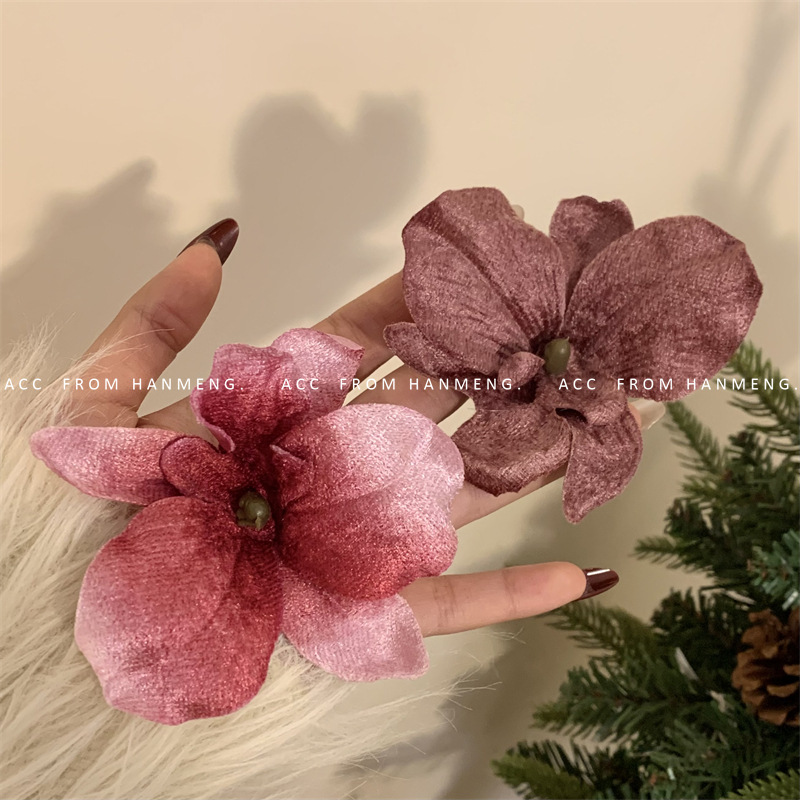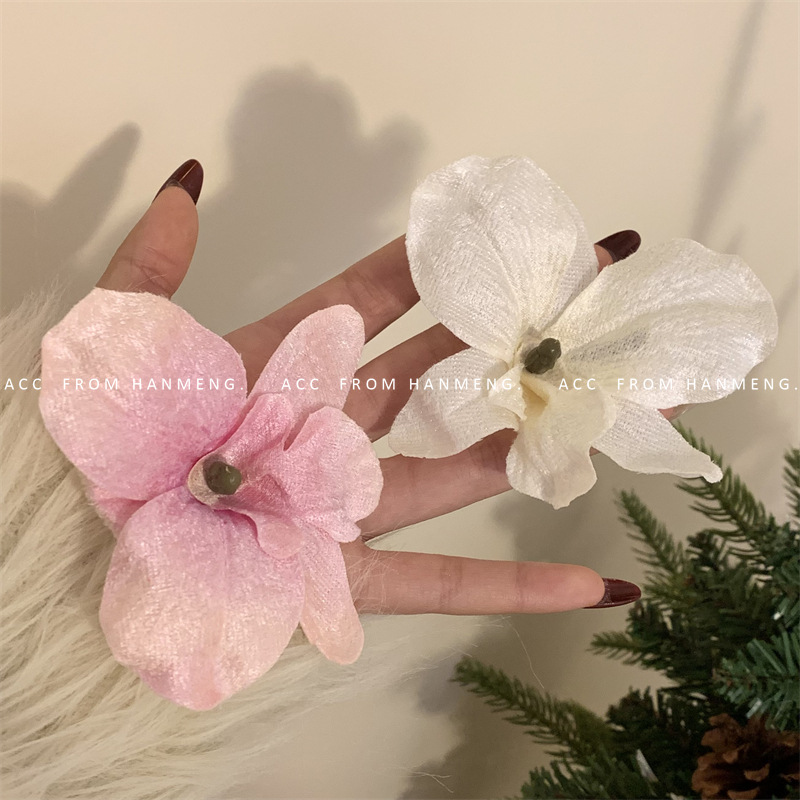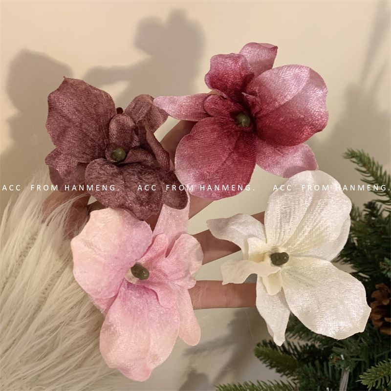 高级设计感花仙子仿妆造型洋兰花发饰花朵发夹配饰繁花头饰品女