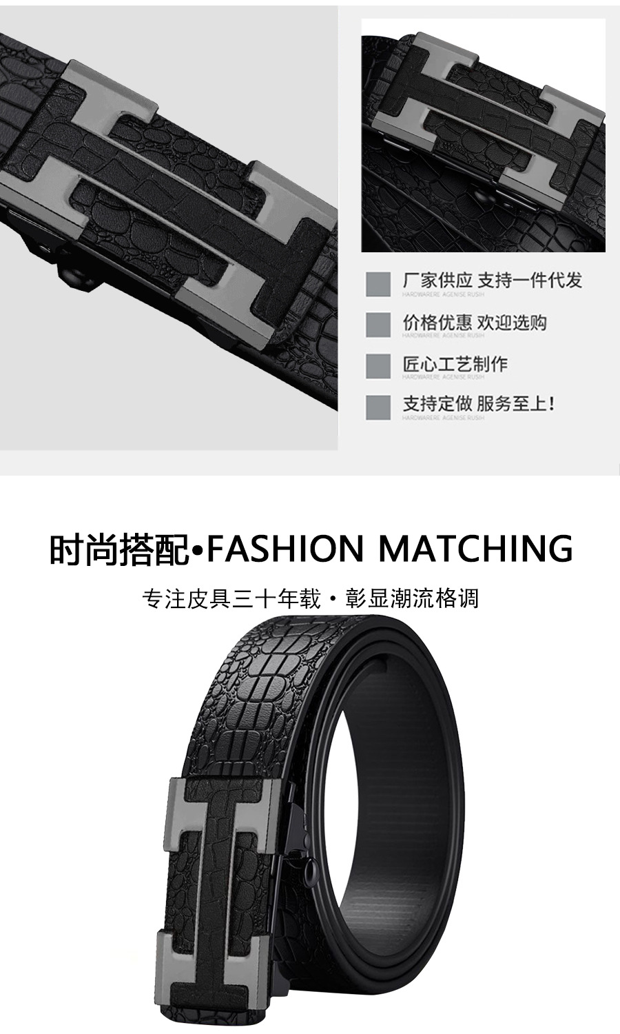 【抖音爆款】保罗鳄鱼纹男士自动扣腰带中青年商务百搭休闲皮带