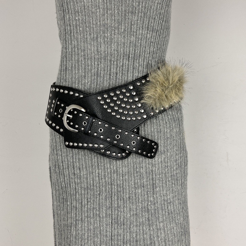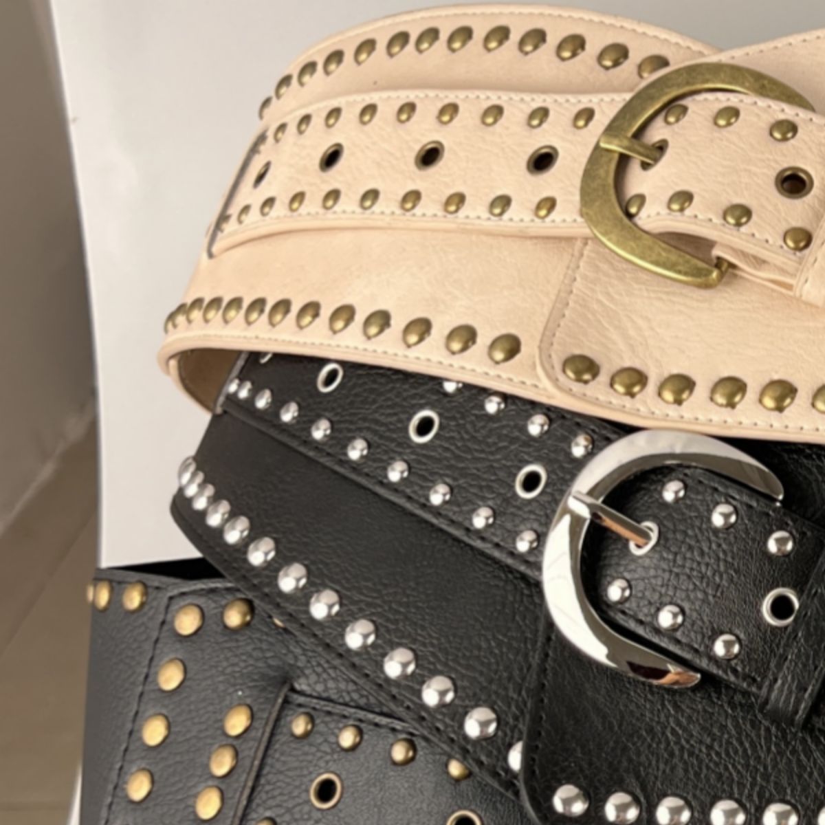 新款Y2K铆钉朋克宽腰带个性辣妹时尚百搭复古跨境皮带货源