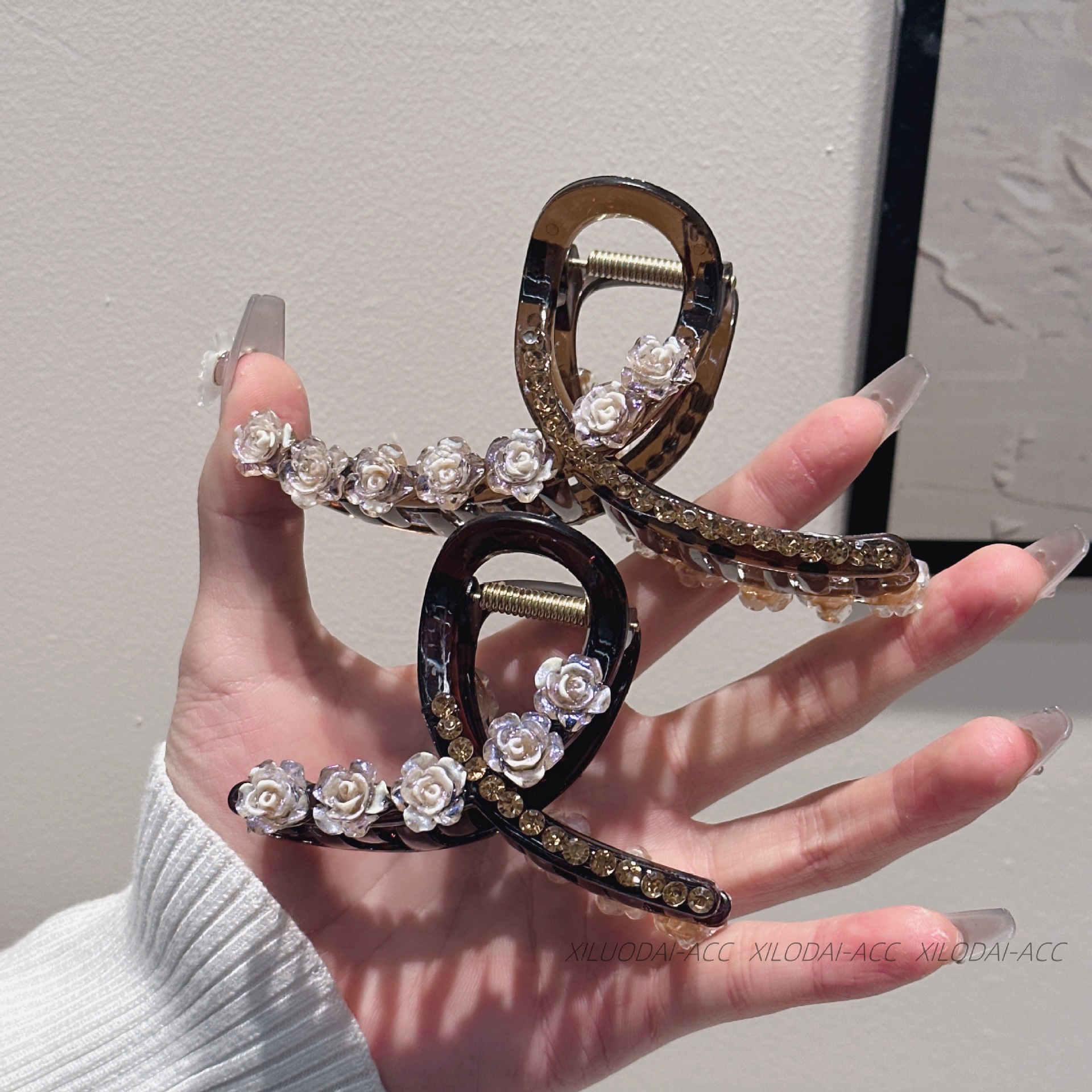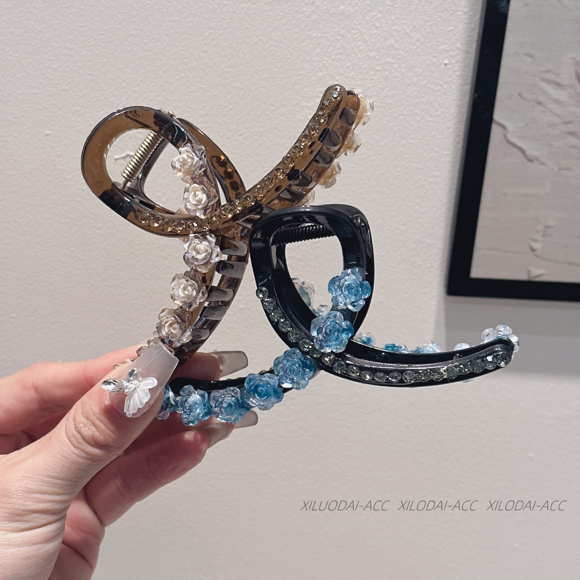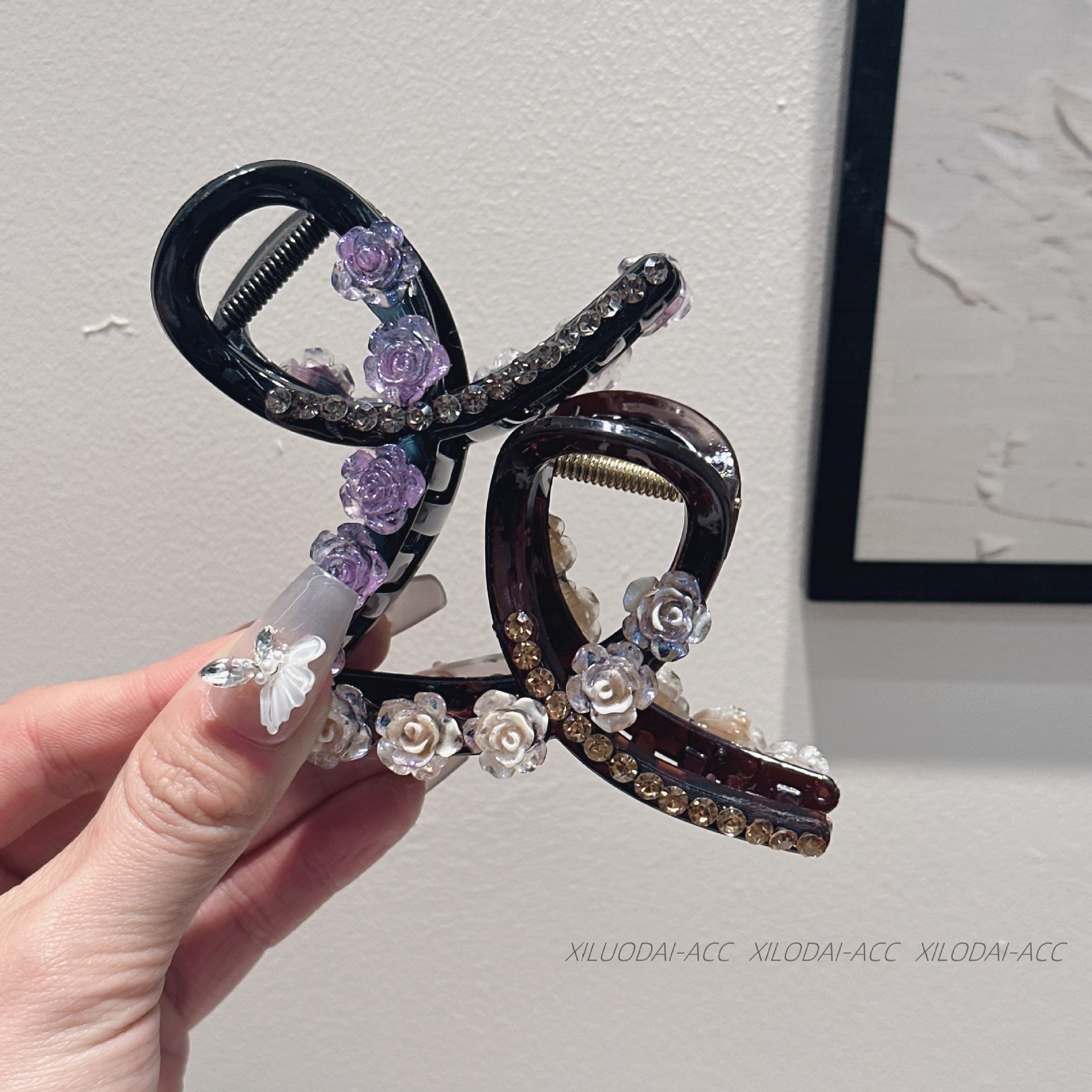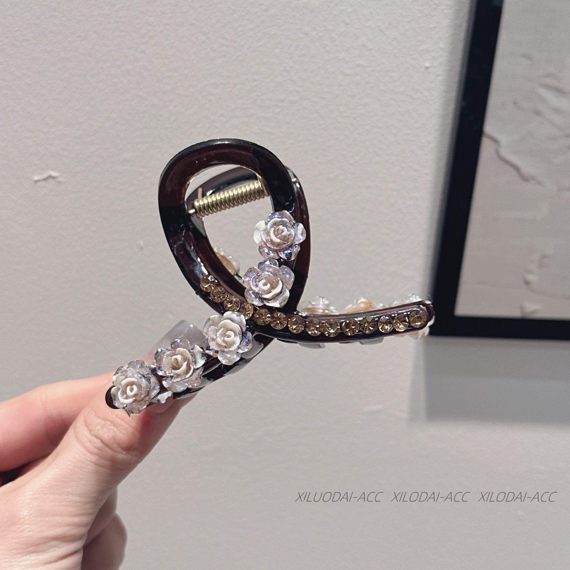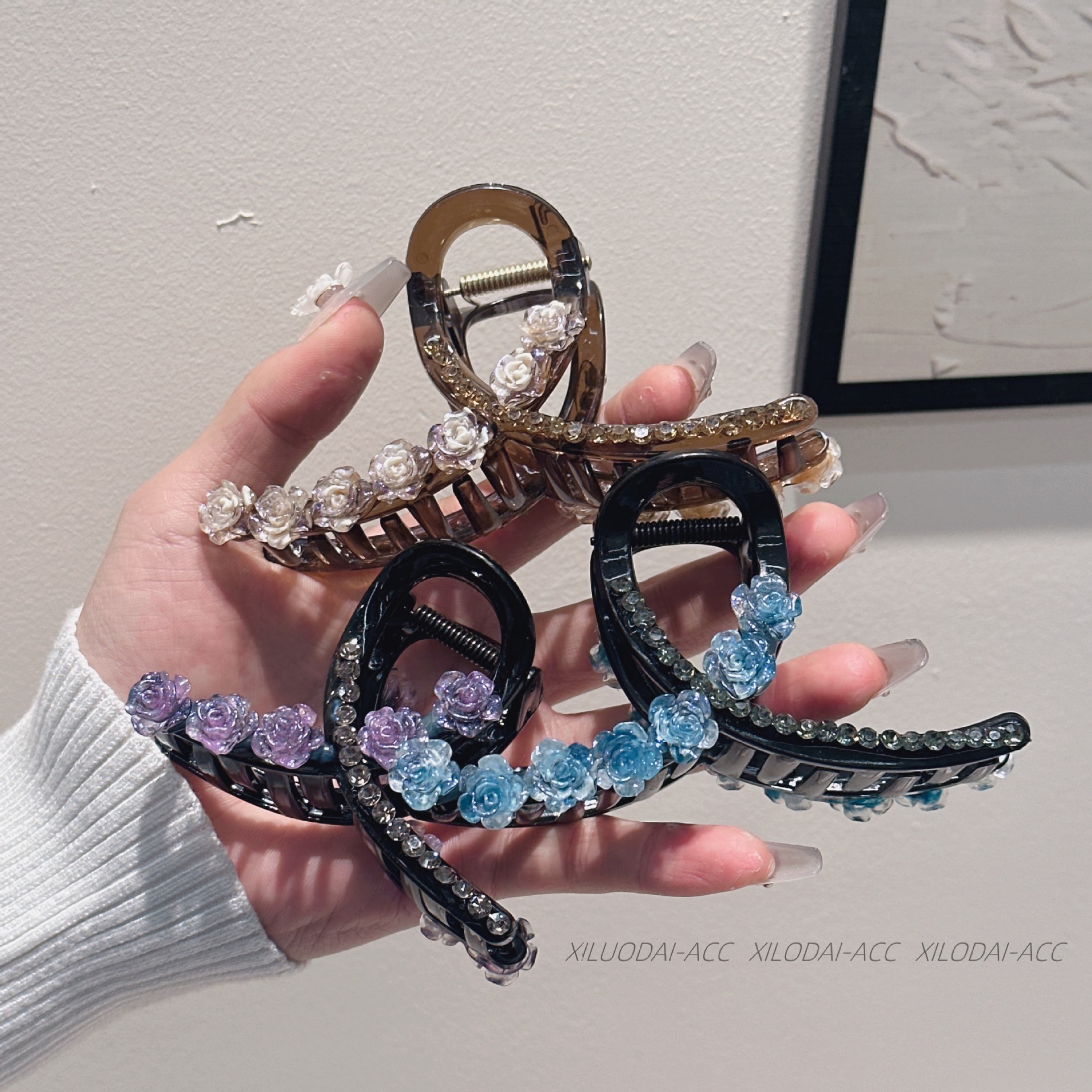 高级感浪漫蔷薇发夹女后脑勺盘发抓夹优雅气质百搭鲨鱼夹子头饰