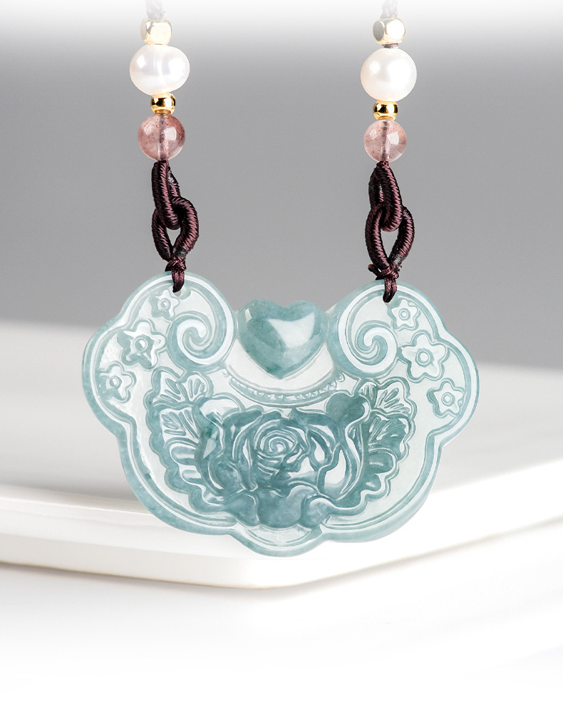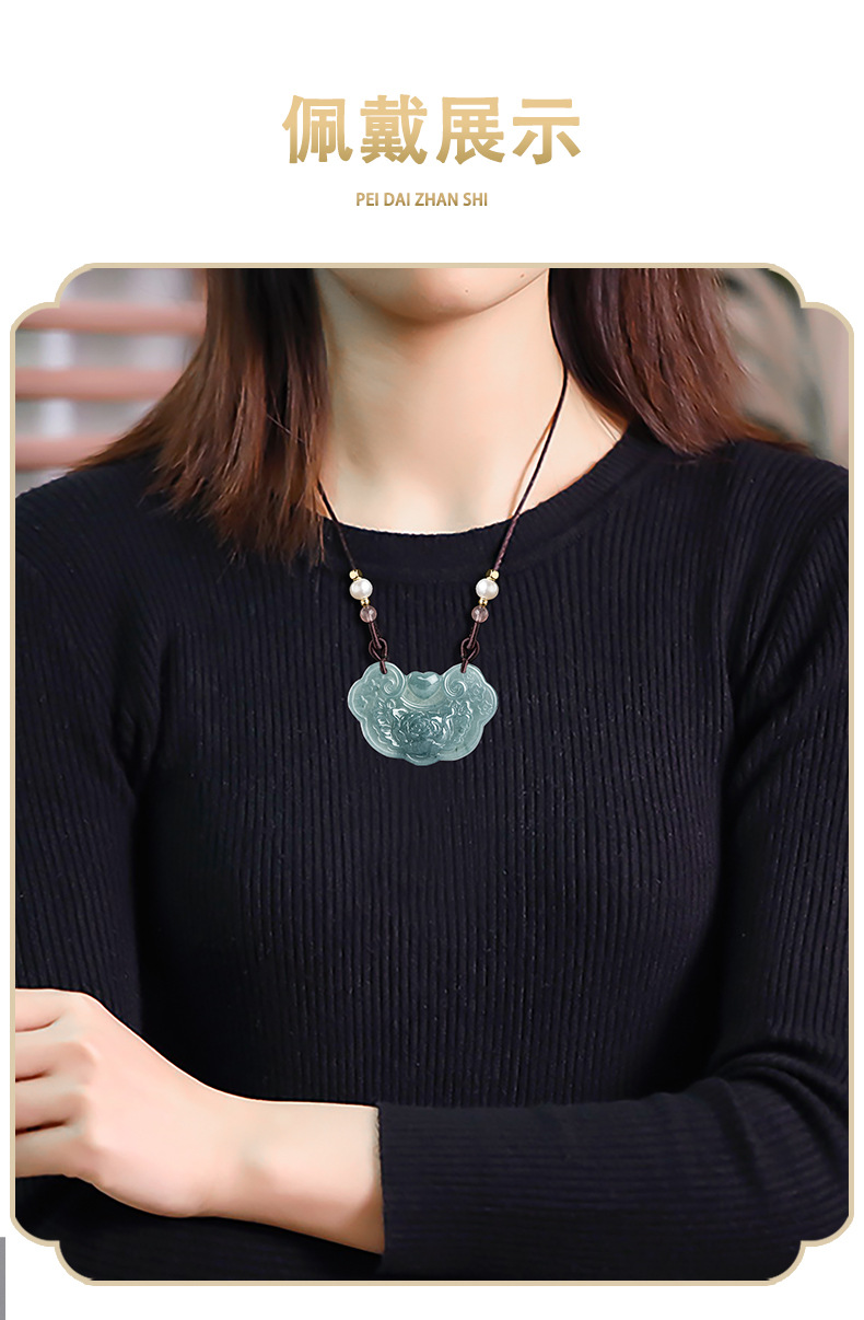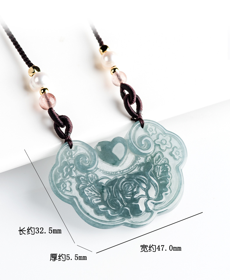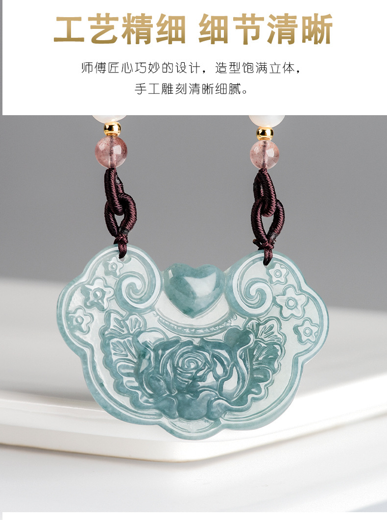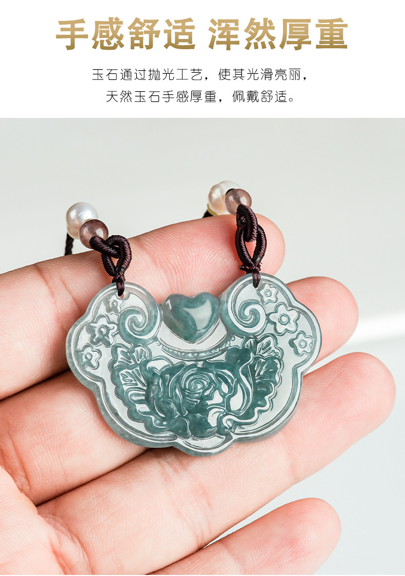 天然a货翡翠蓝水花开富贵吉祥如意玉佩糯种玉石吊坠男女款挂件