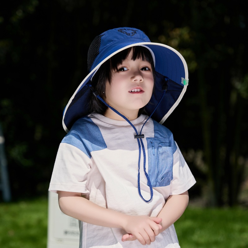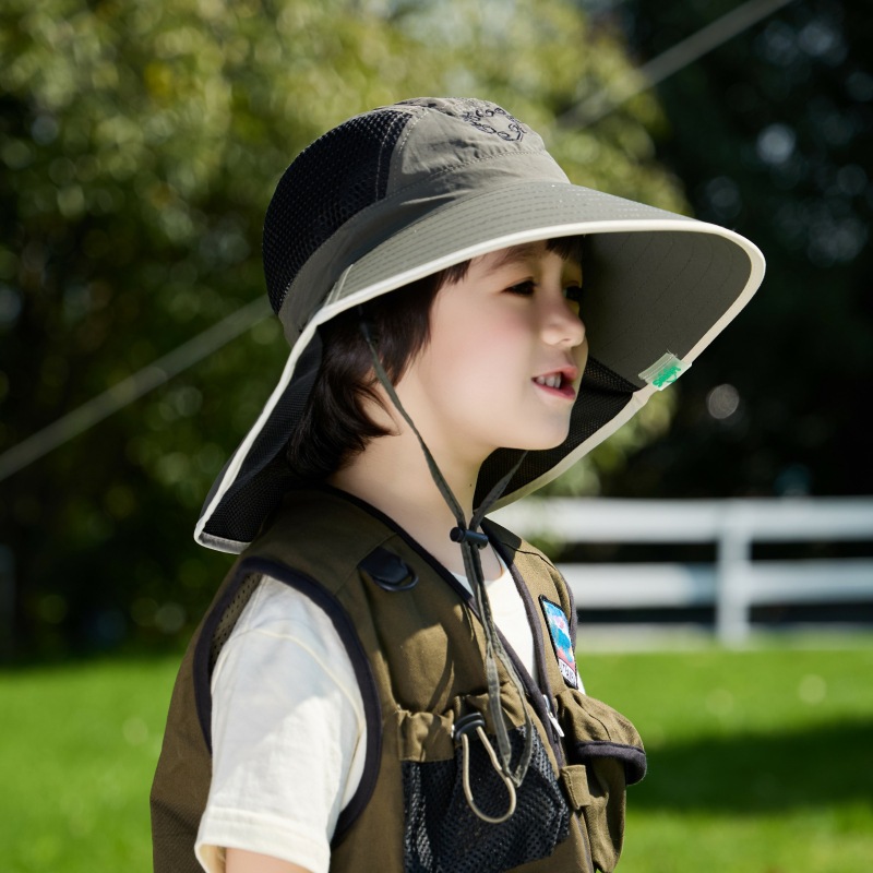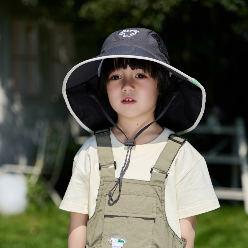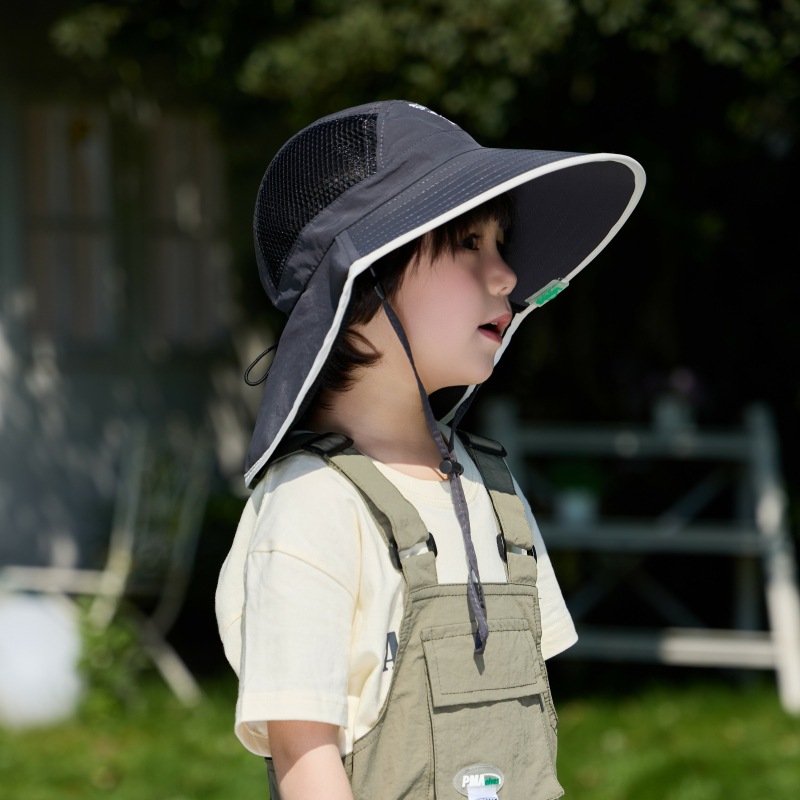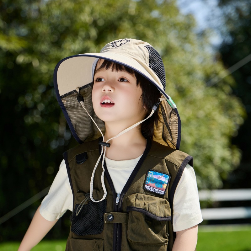 儿童防晒帽夏季男女童大檐沙滩披肩帽宝宝防紫外线透气网眼遮阳帽