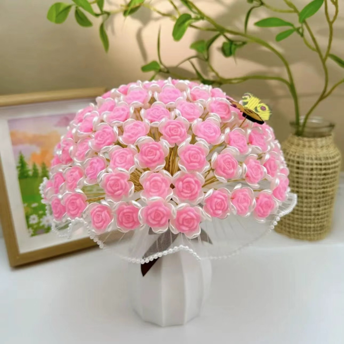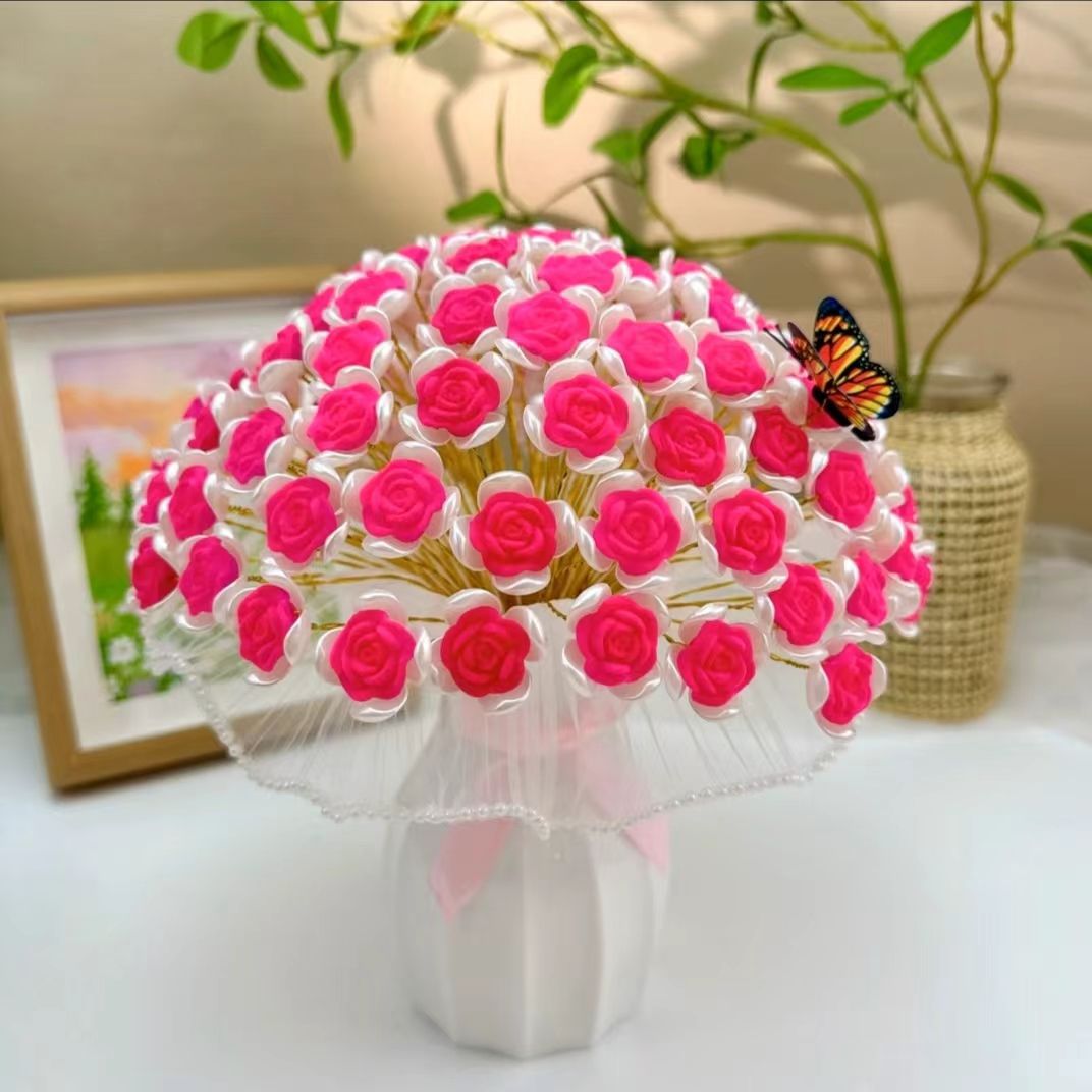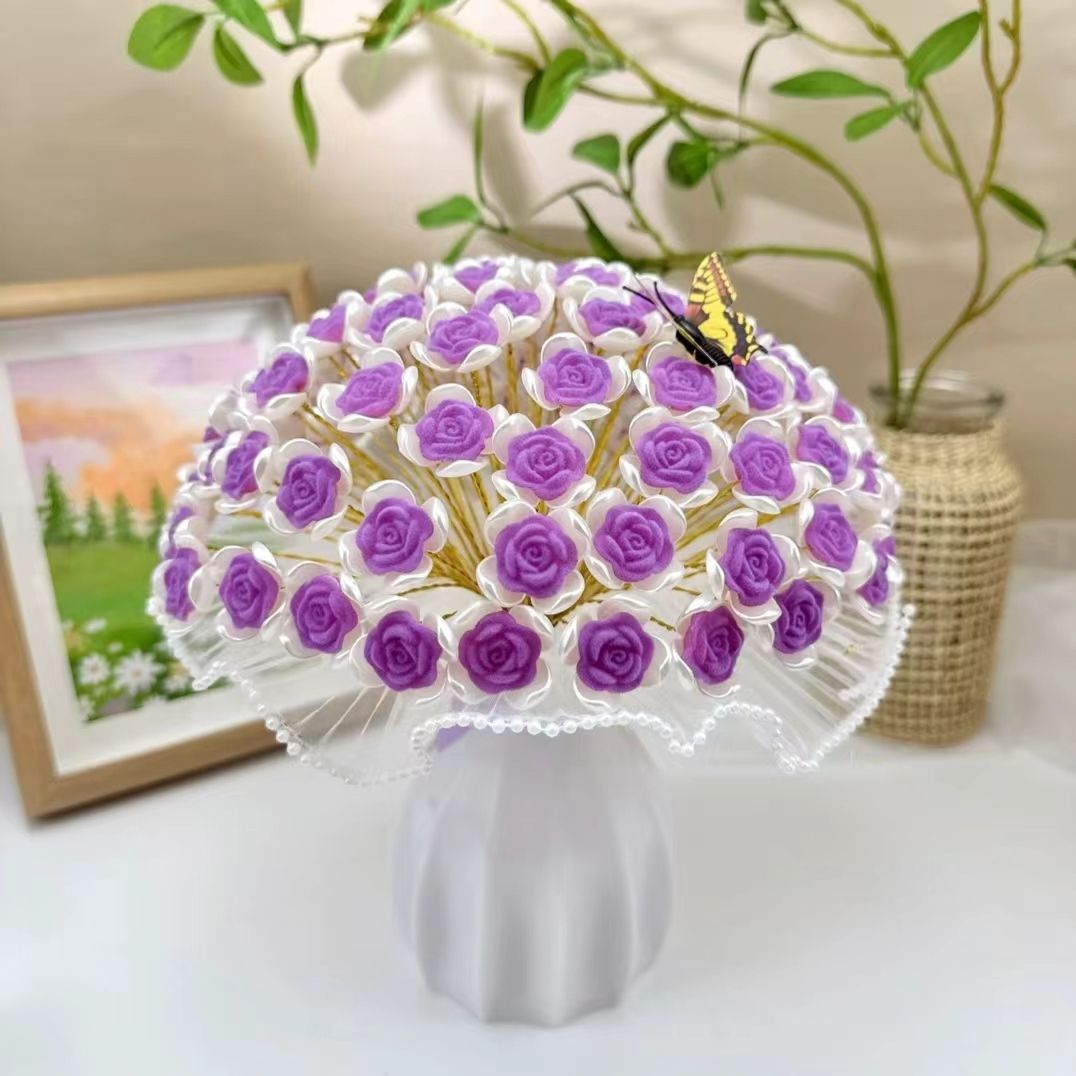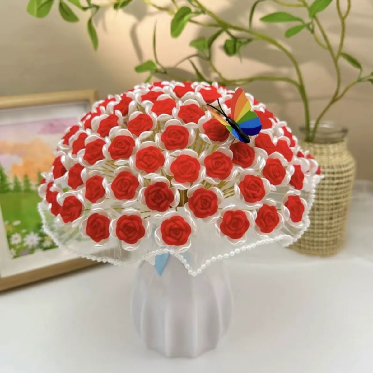 七夕福利99朵植绒玫瑰花手工材料包(彩灯+波浪纱+花瓶+蝴蝶+贺卡)
