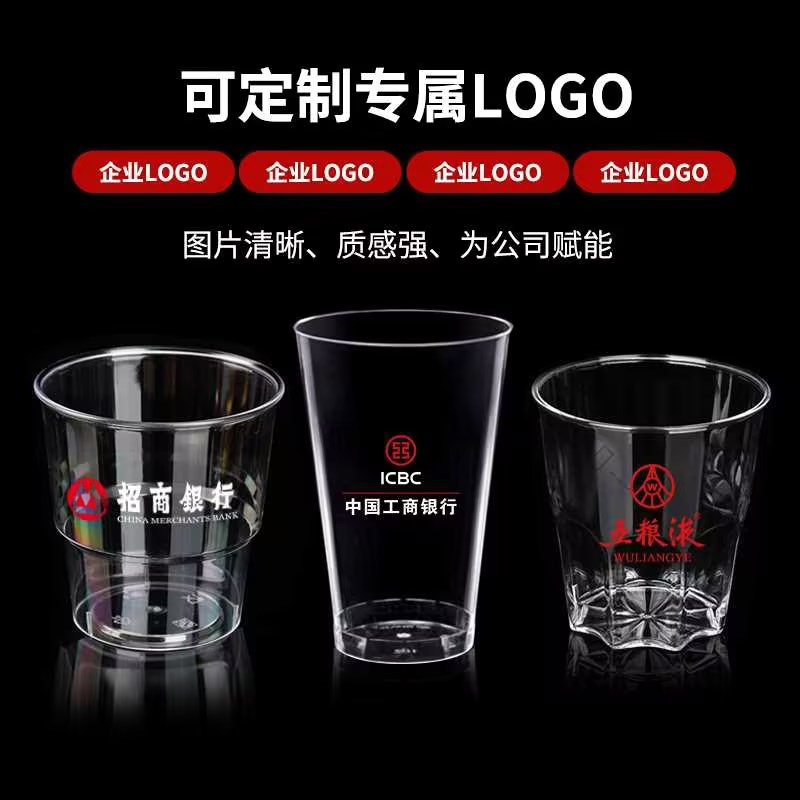 一次性杯子酒杯透明家用茶杯硬质水杯商用加厚航空杯硬杯塑料杯