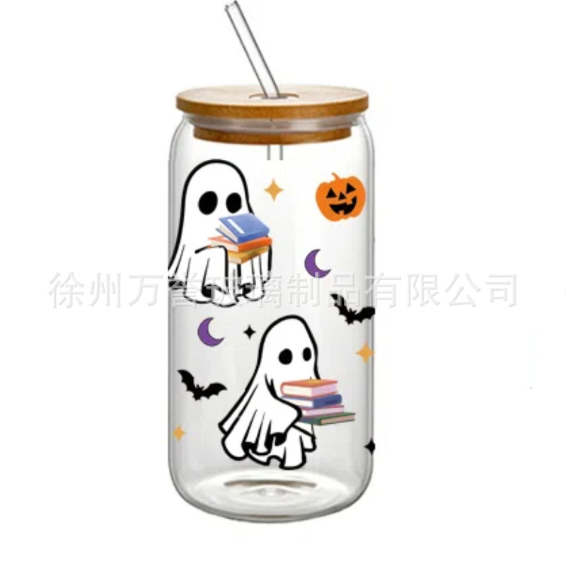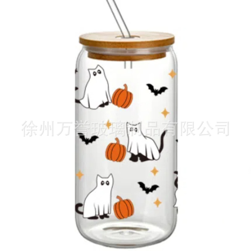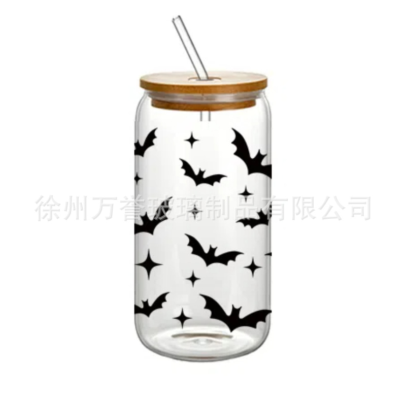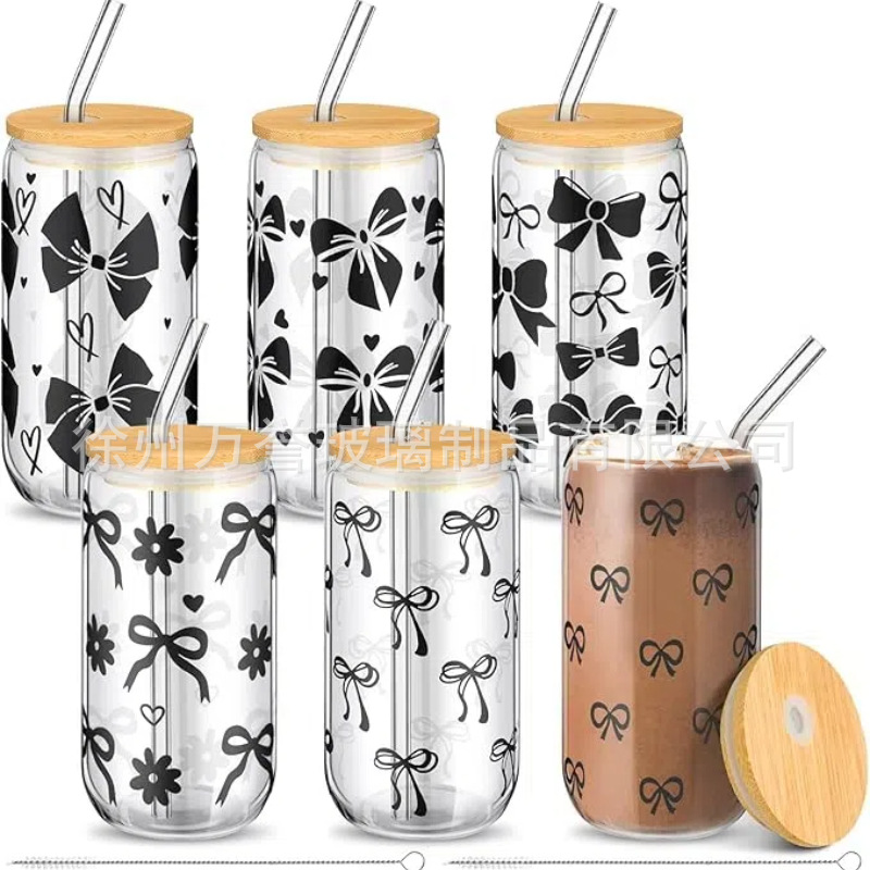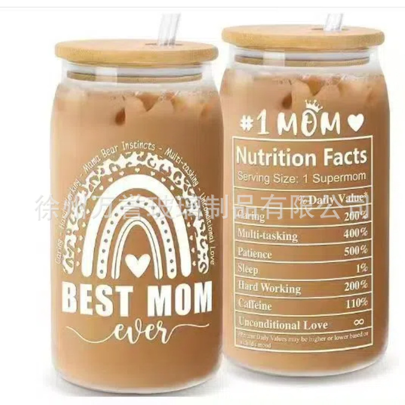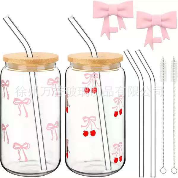 16oz跨境亚马逊可乐杯果汁梅森杯吸管饮料咖啡杯竹盖玻璃水杯批发