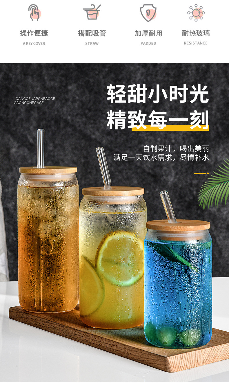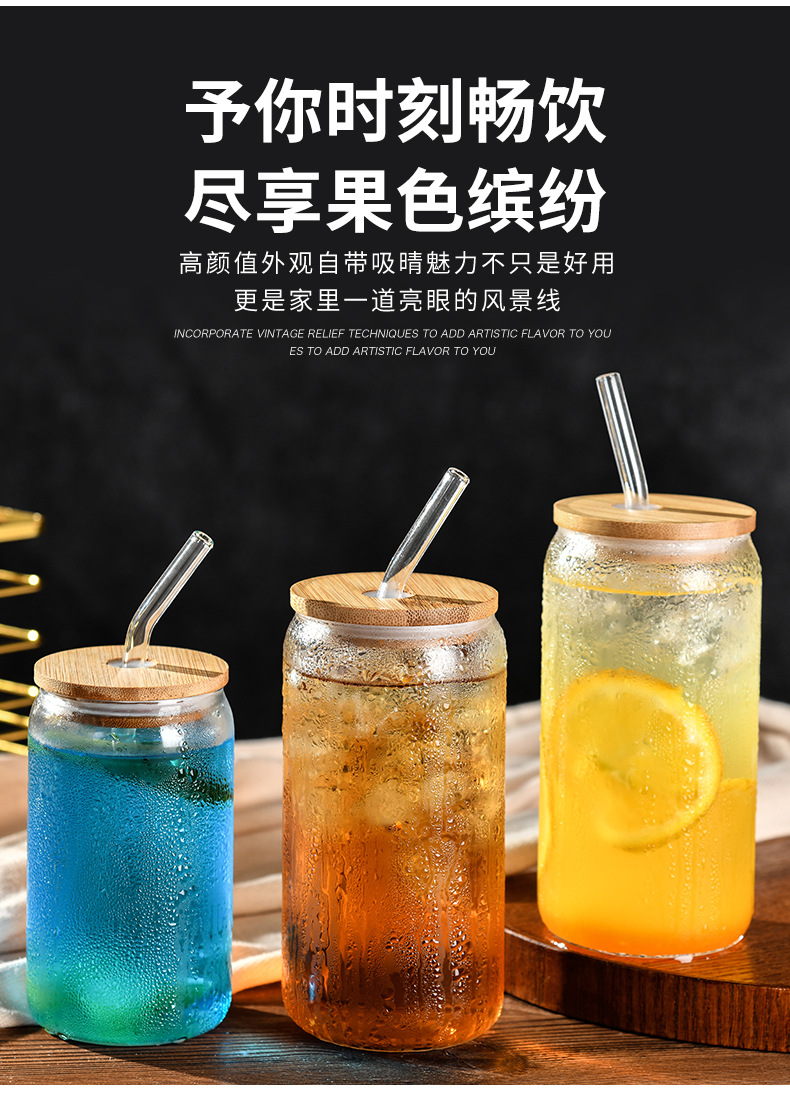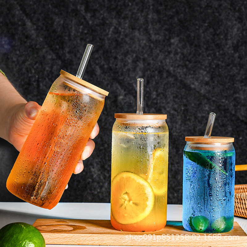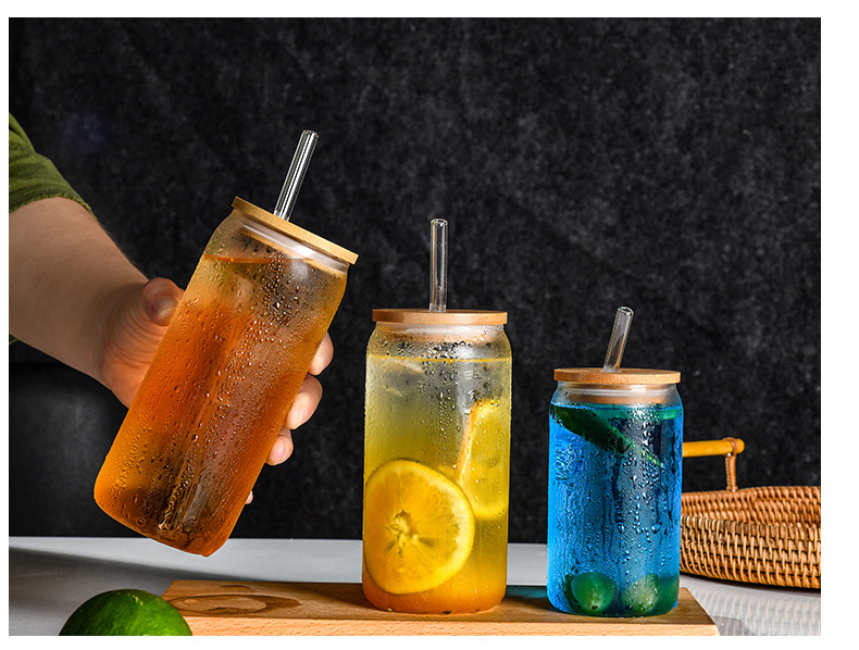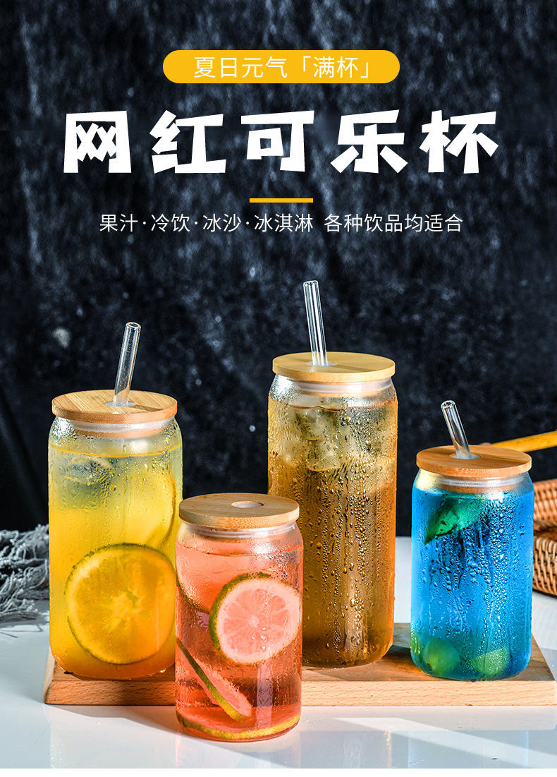16oz跨境批发高硼硅可乐杯高颜值果汁咖啡水杯耐高温ins风玻璃杯