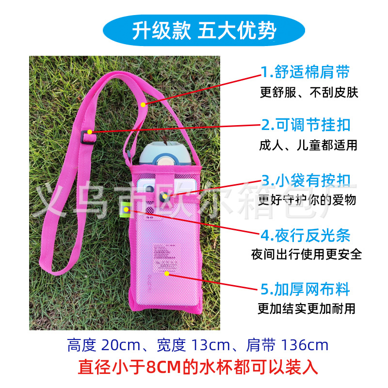 水杯套保护套水杯袋网格斜跨户外奶茶水壶通用儿童保温杯套网布