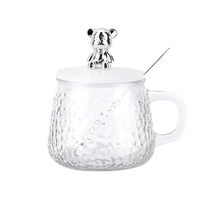 定制网红锤纹小熊玻璃杯ins风高级感把手杯子带盖子透明夏季水杯