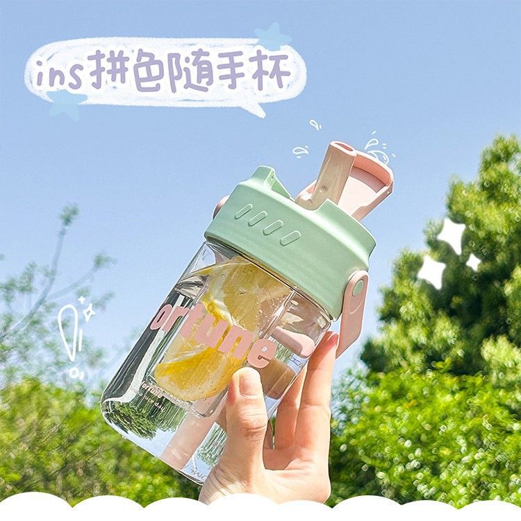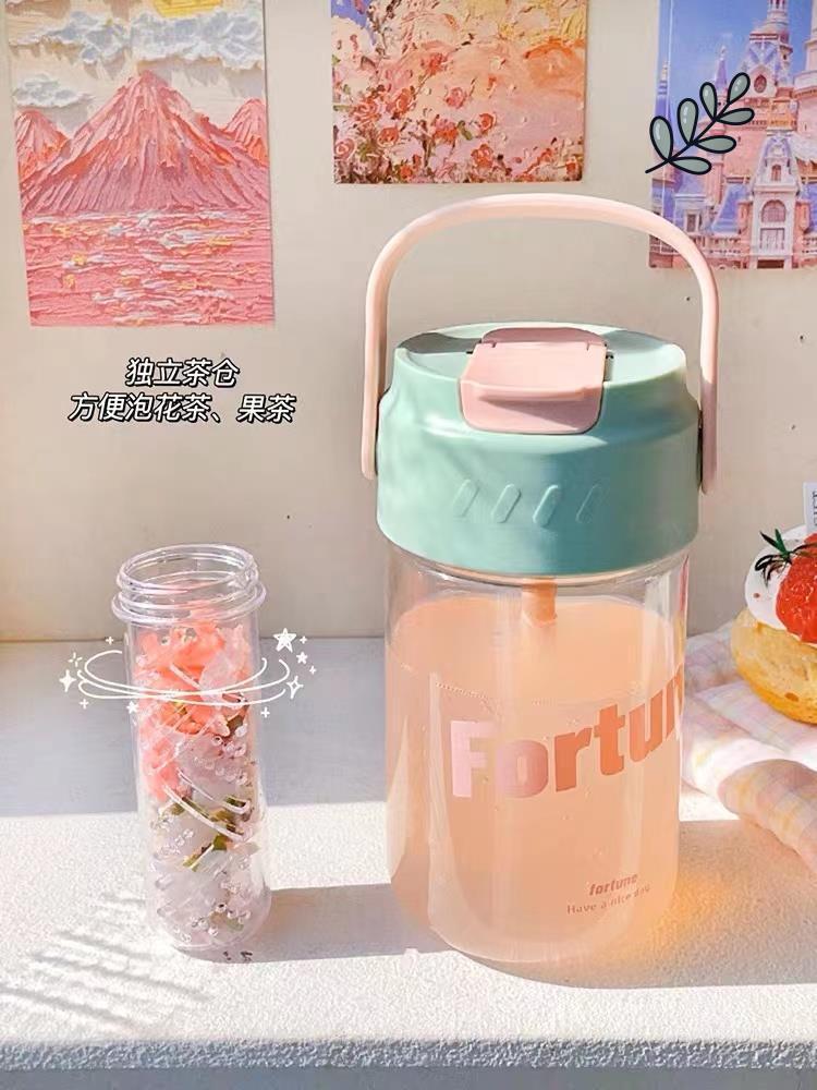 ins高颜值吸管杯水杯学生便携杯子茶水分离花茶杯子泡茶大容量