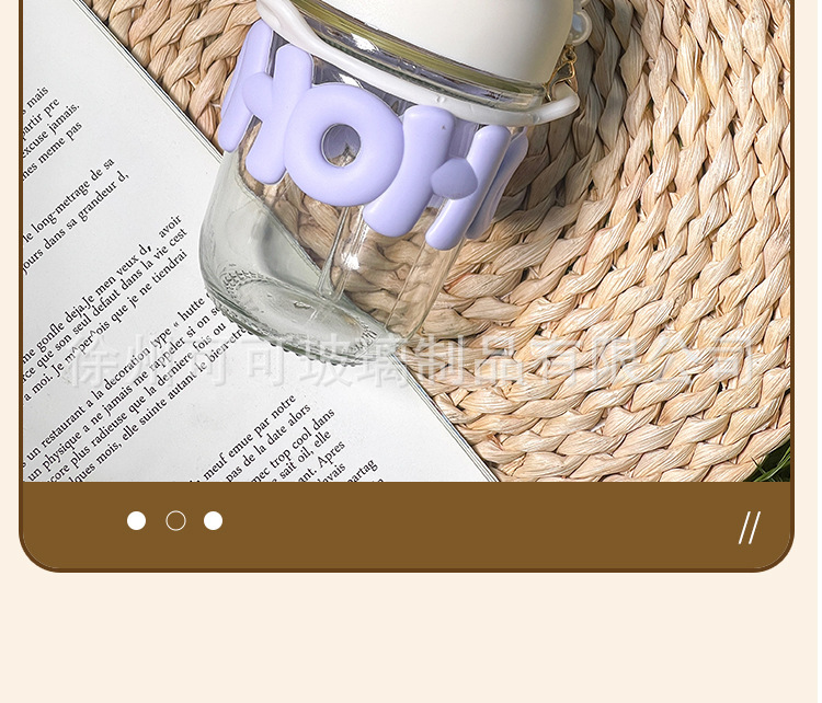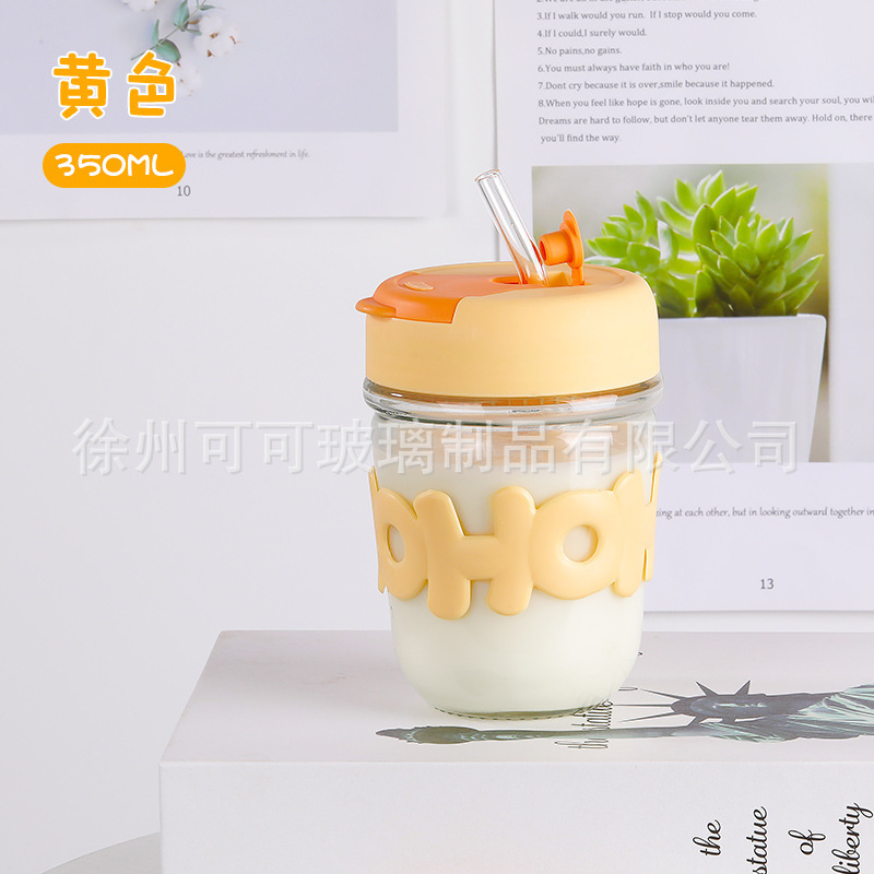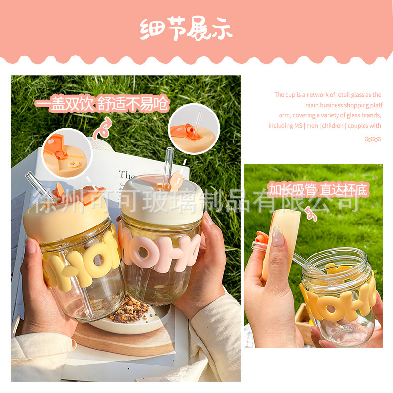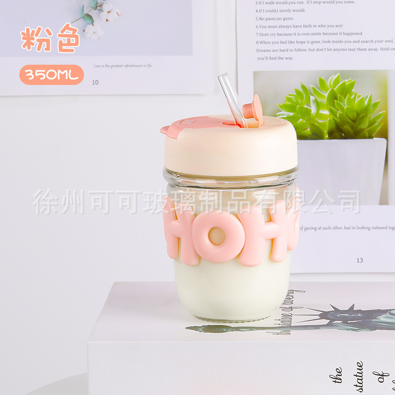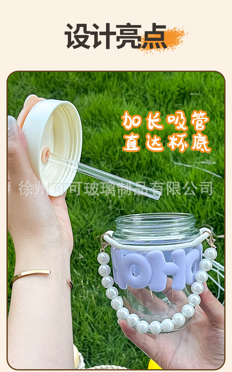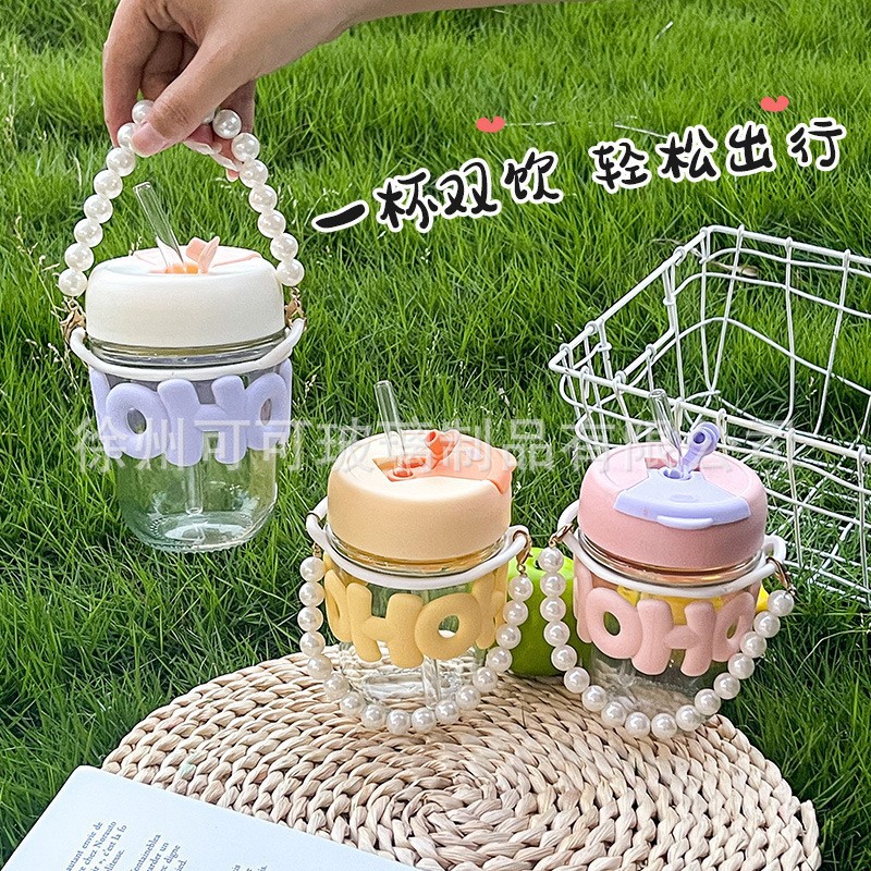 可爱吸管杯高颜值网红卡通玻璃杯珍珠链杯子字母玻璃水杯冷饮杯子