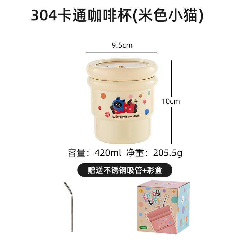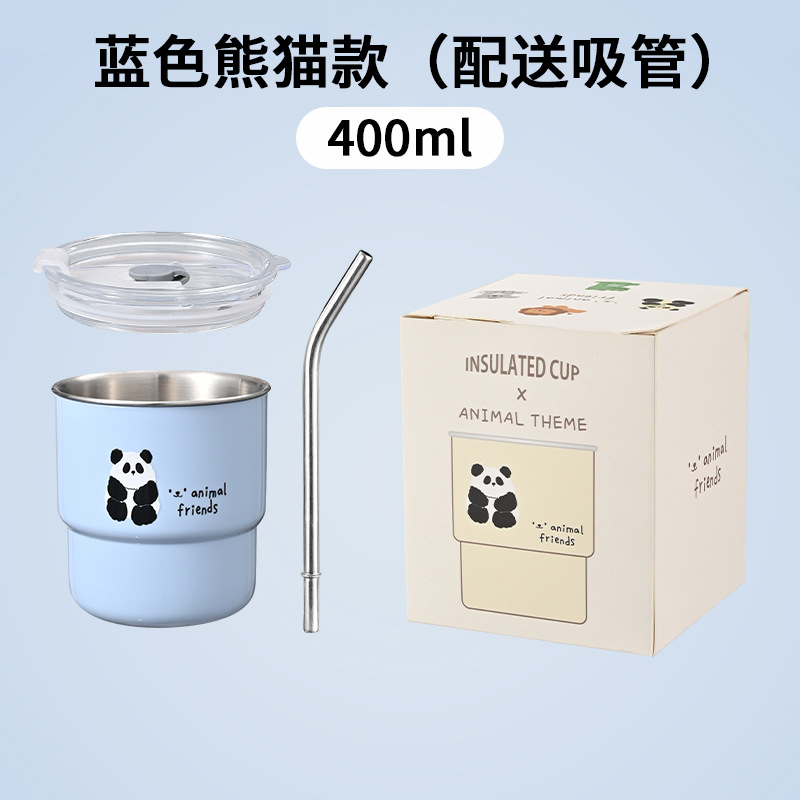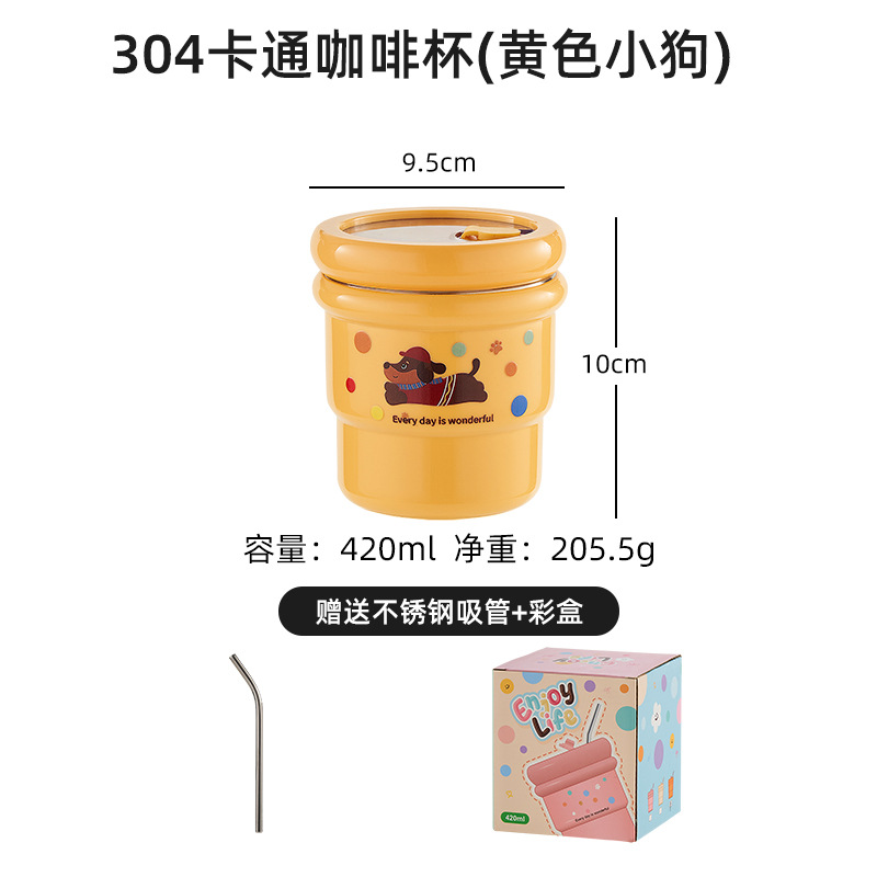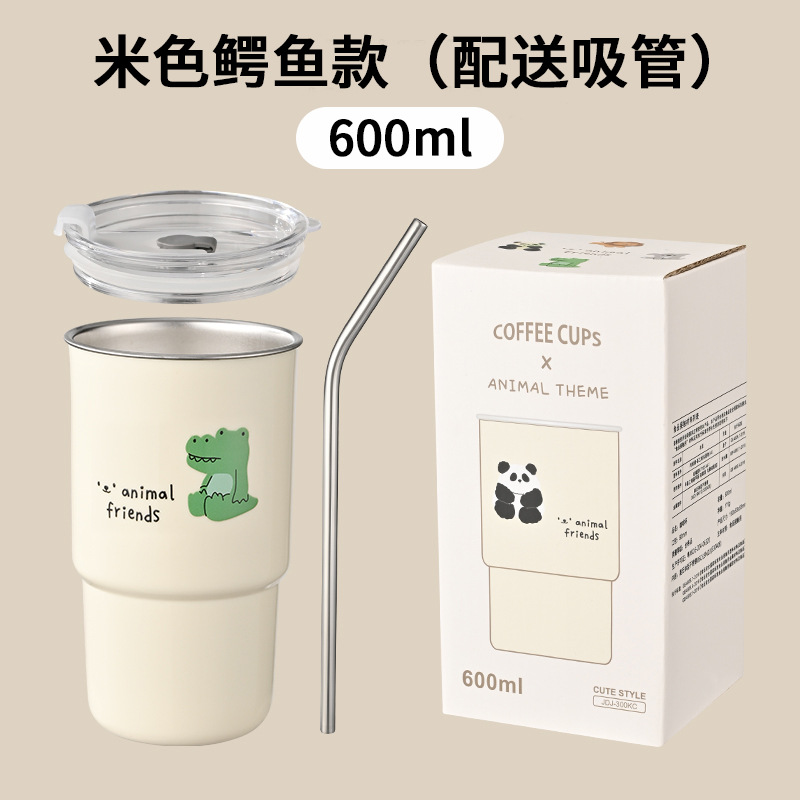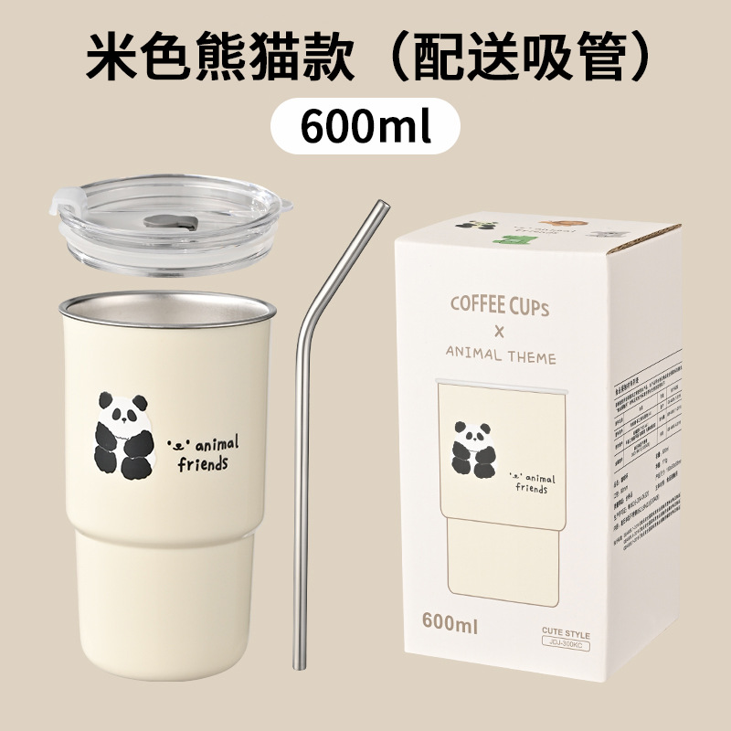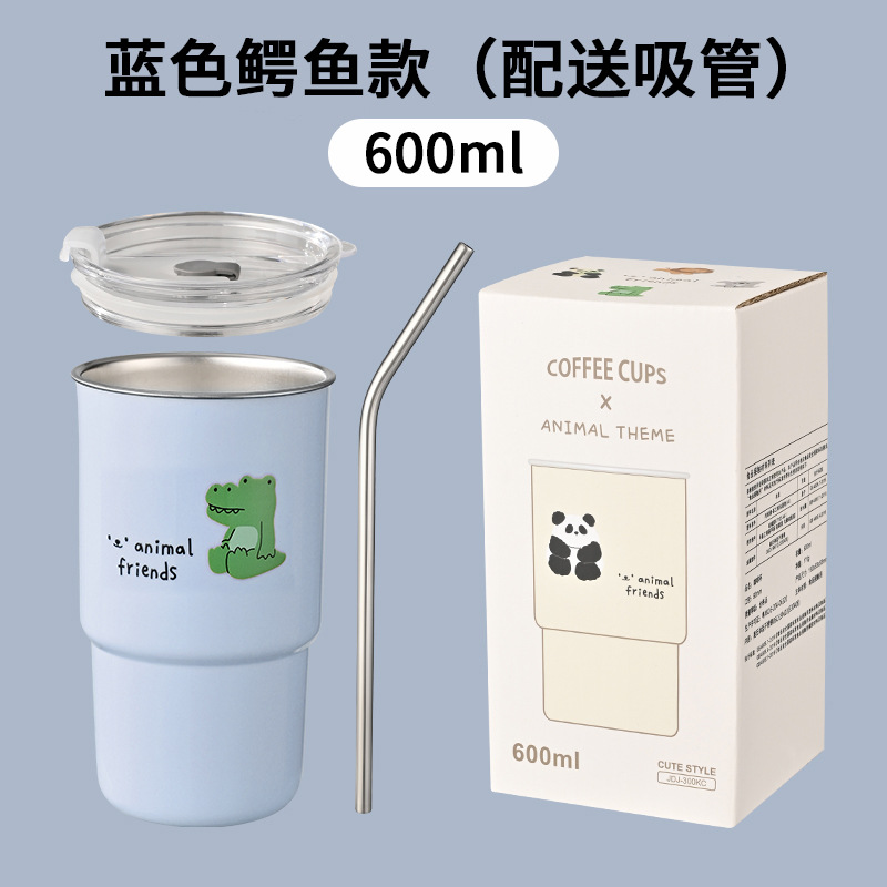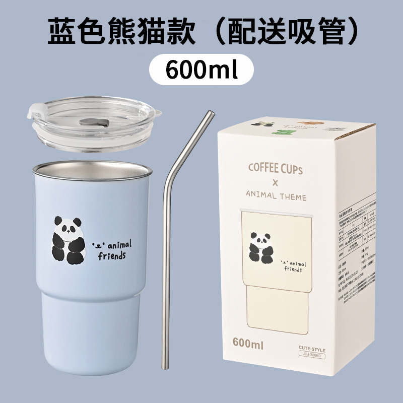 304不锈钢咖啡杯卡通ins风马克杯学生便携带吸管水杯高颜值奶茶杯