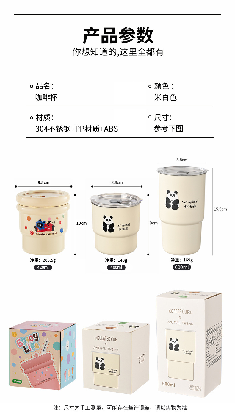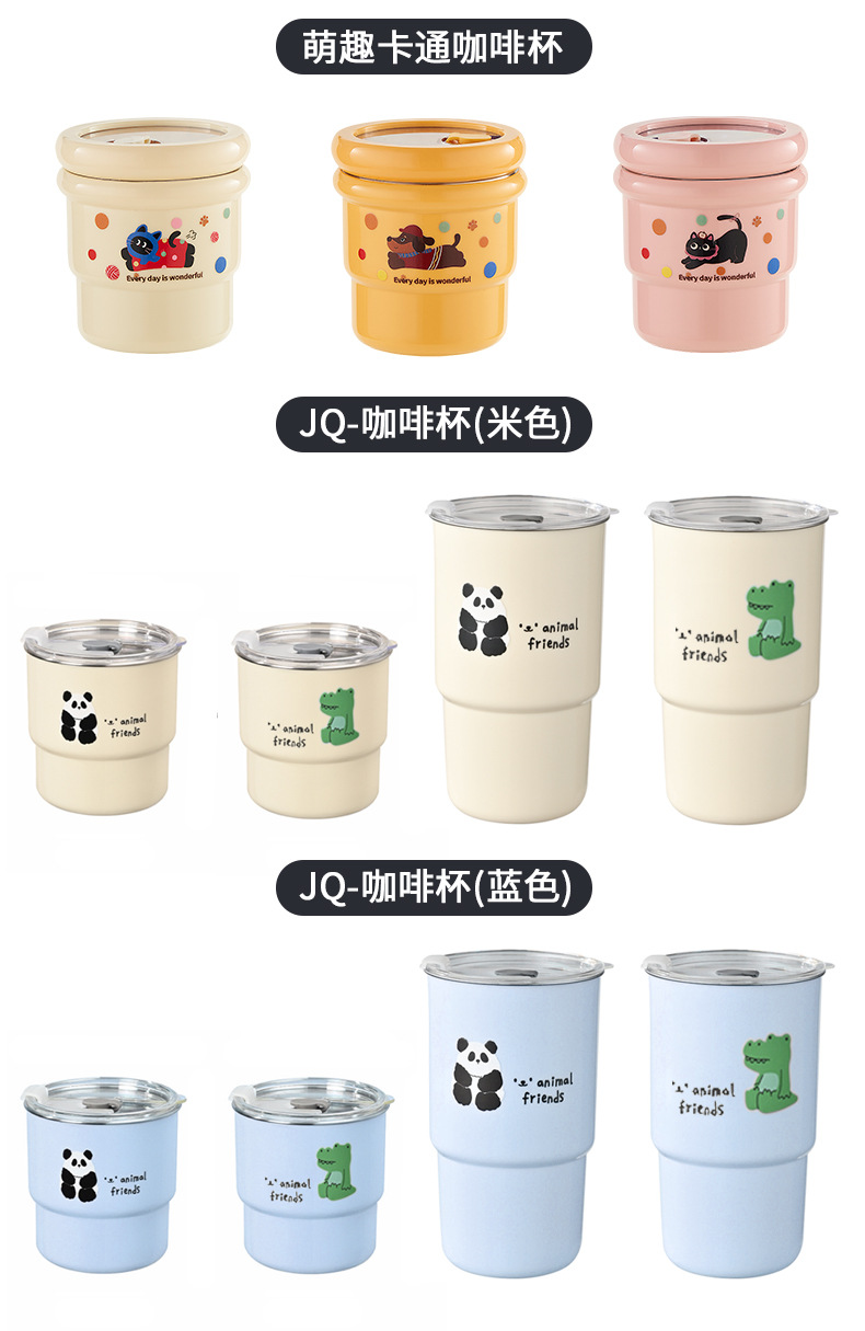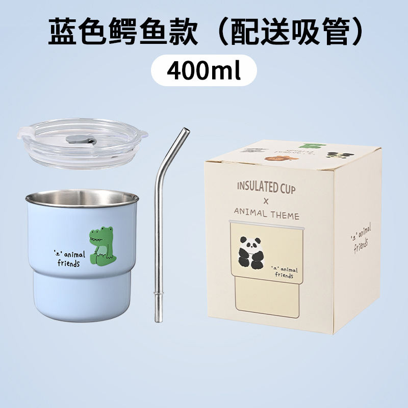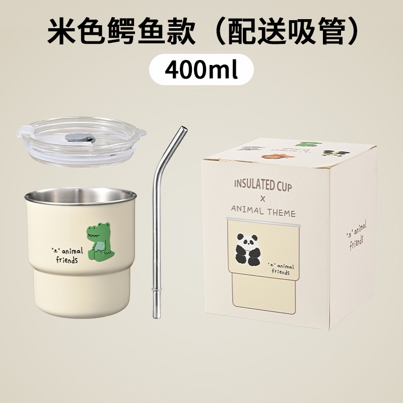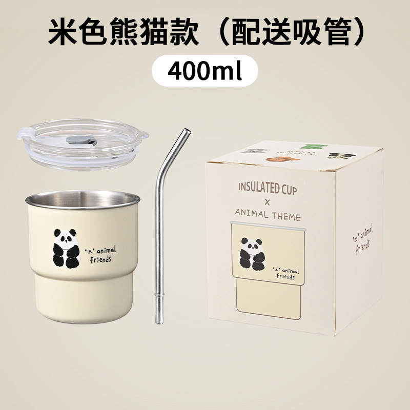 304不锈钢咖啡杯卡通ins风马克杯学生便携带吸管水杯高颜值奶茶杯