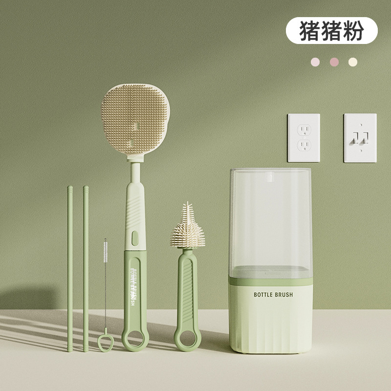 多功能直柄硅胶奶瓶刷便携奶嘴刷婴儿洗奶瓶水杯容器清洁杯刷套装