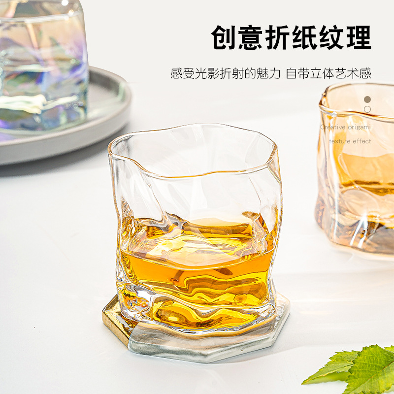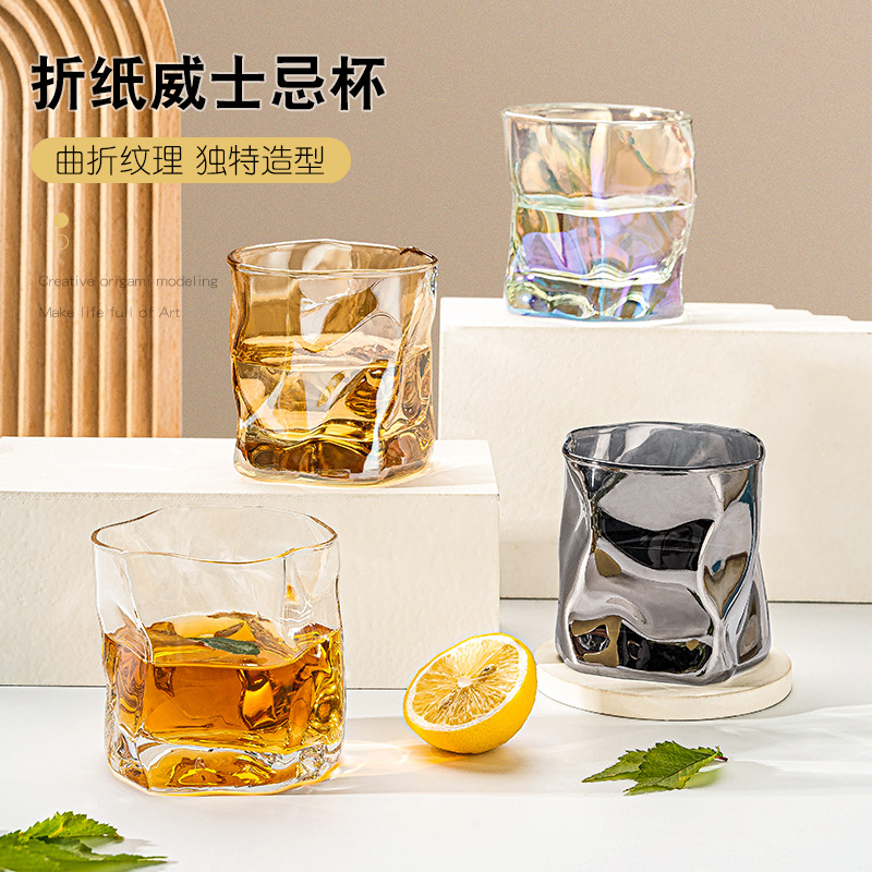 ins网红玻璃杯威士忌酒杯玻璃杯水杯子折纸扭扭杯果汁牛奶饮料酒