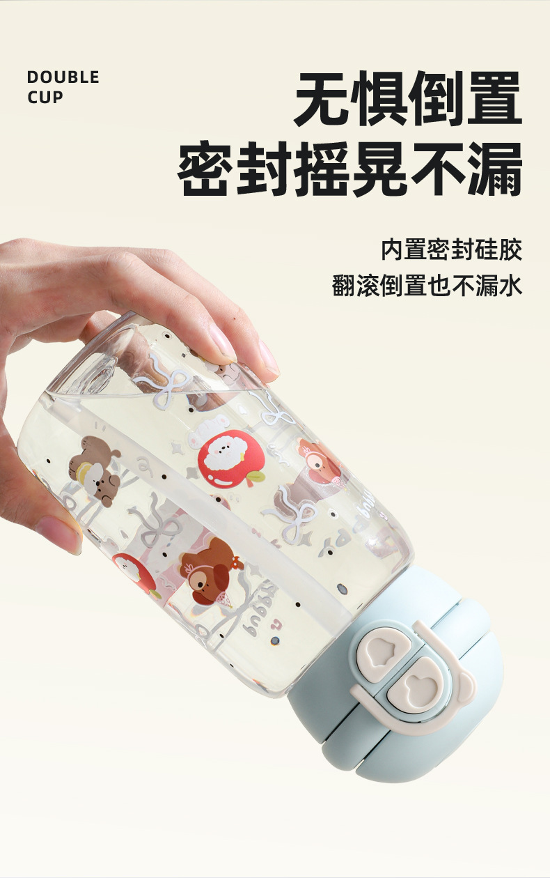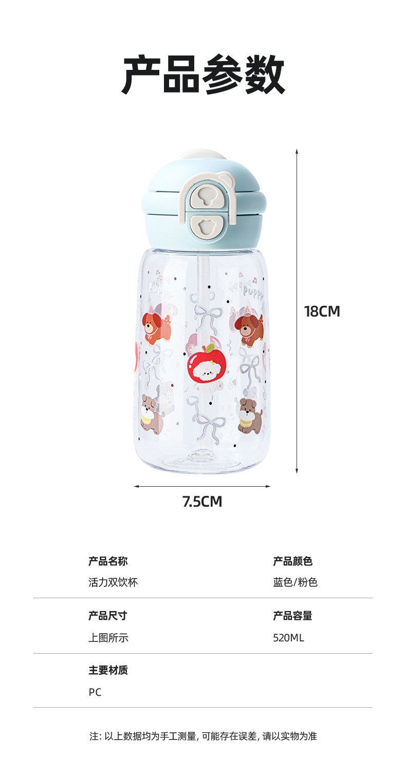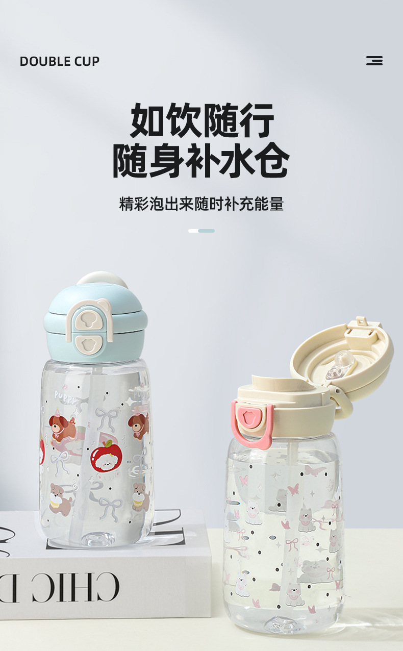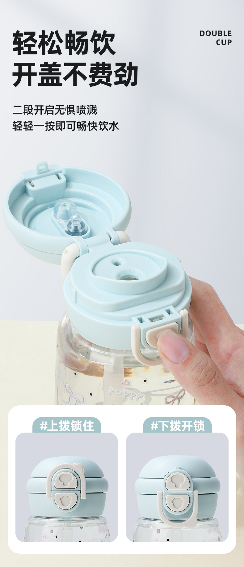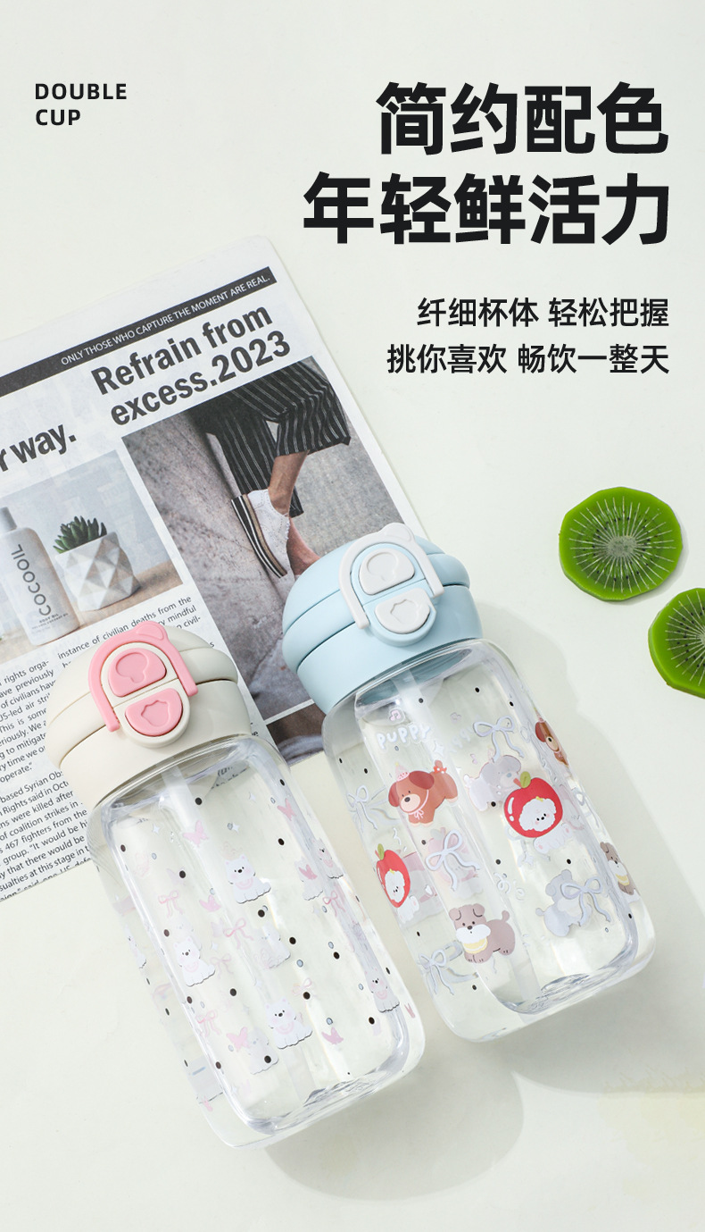 西高地卡通塑料杯可爱弹跳双饮水杯密封防漏吸管杯便捷式随手杯子