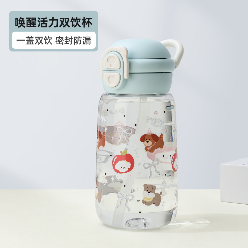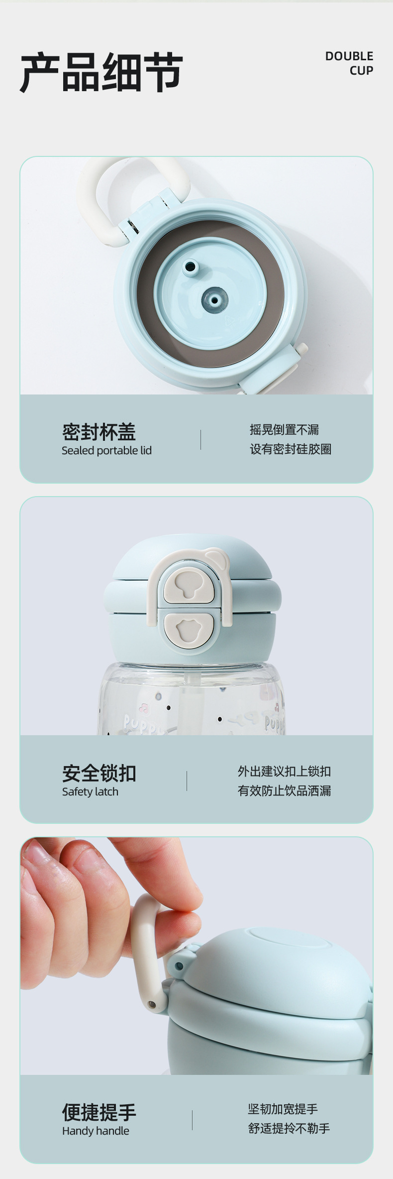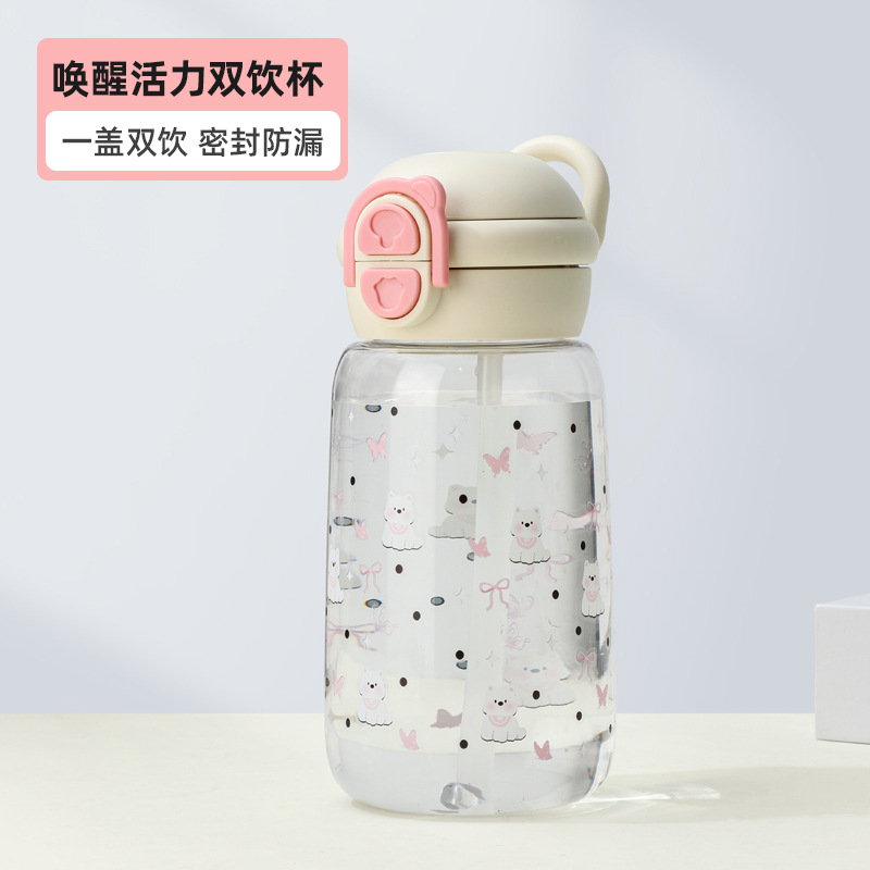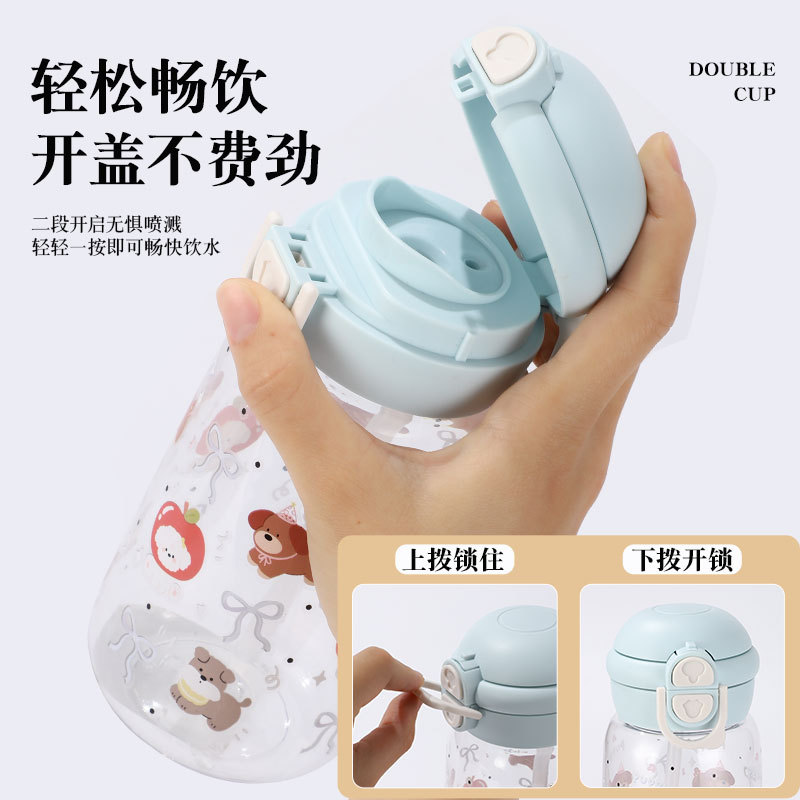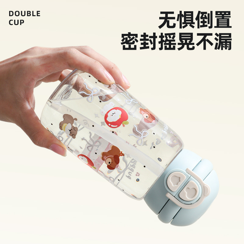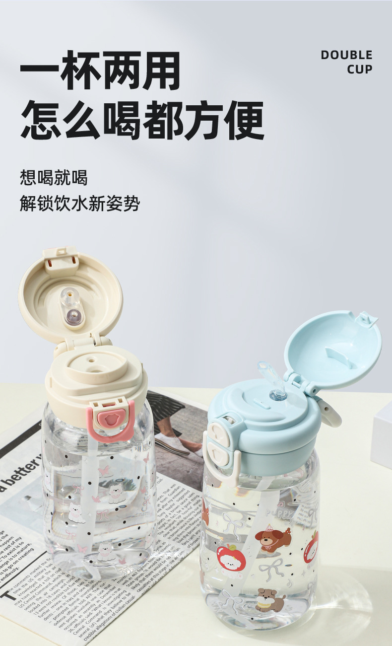 西高地卡通塑料杯可爱弹跳双饮水杯密封防漏吸管杯便捷式随手杯子