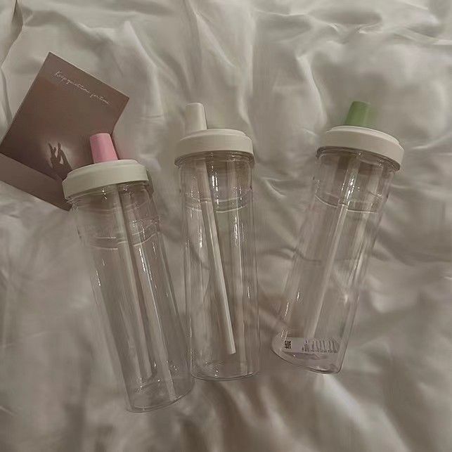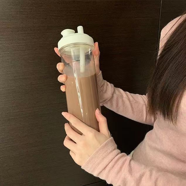 高颜值韩式大容量随行吸管塑料杯耐温高温便携ins风水杯奶茶杯子