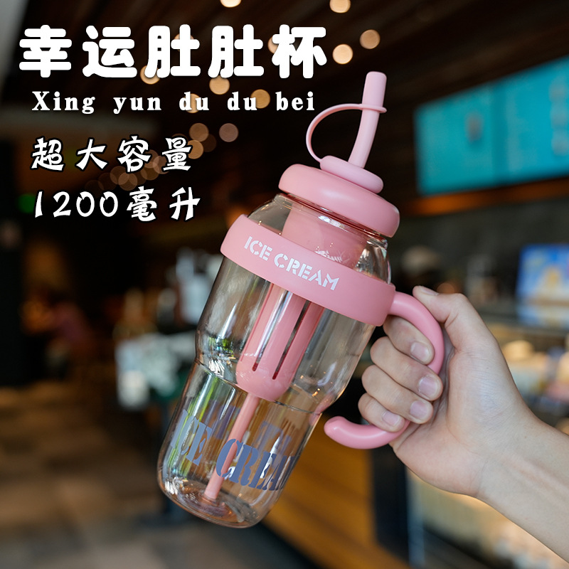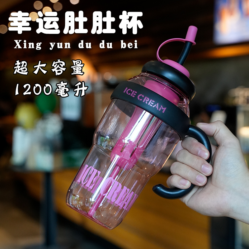 大容量水杯便携高颜值冰霸杯幸运肚肚杯大容量塑料新款夏天吸管杯