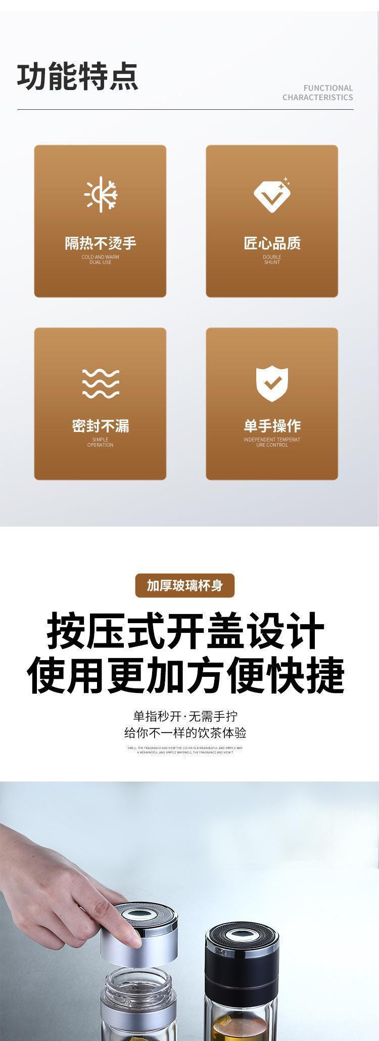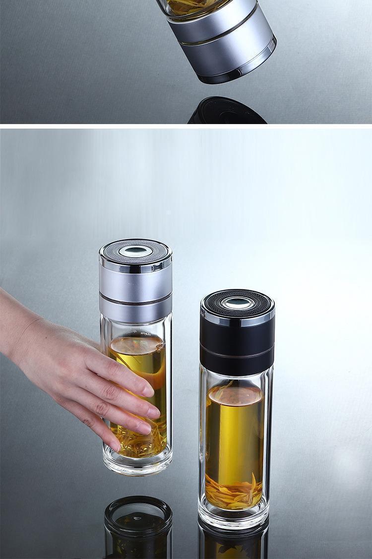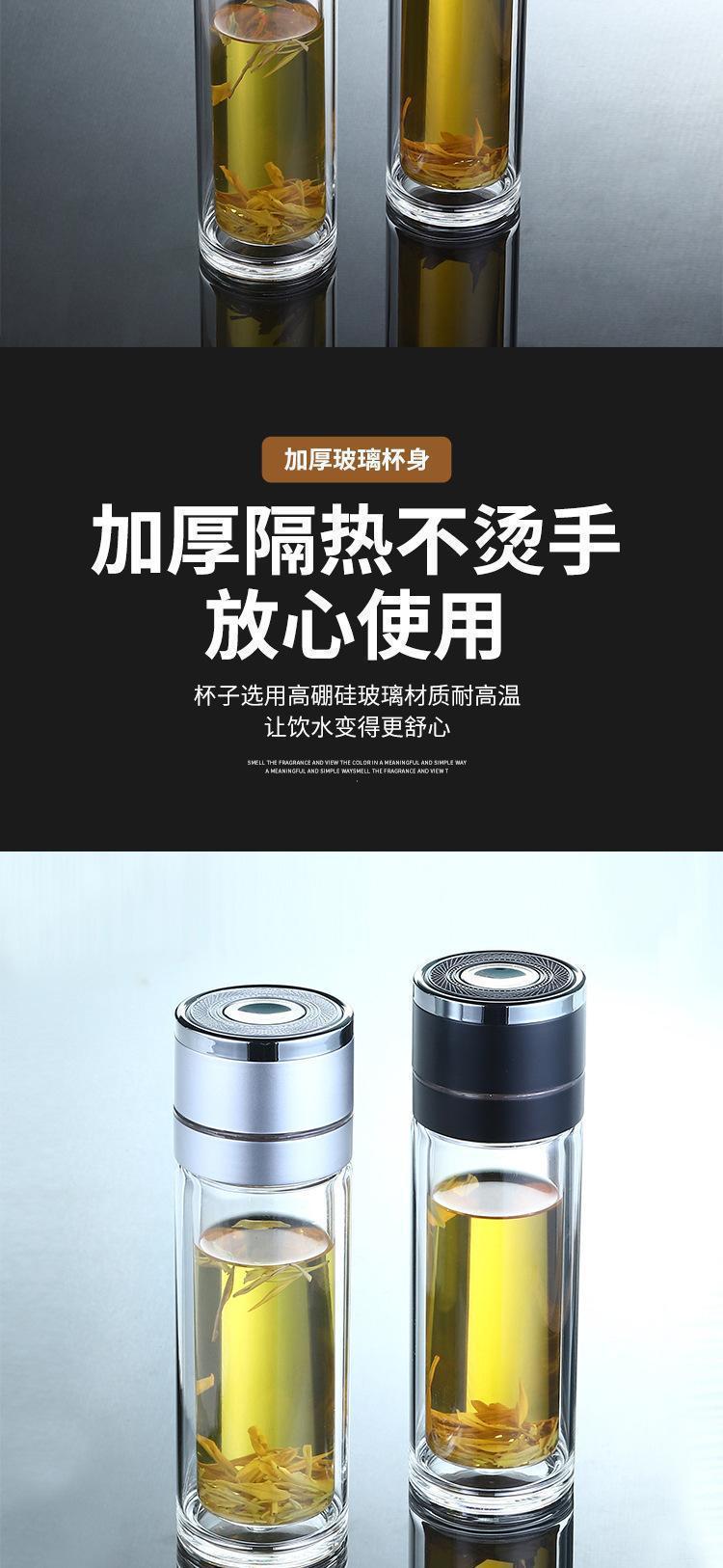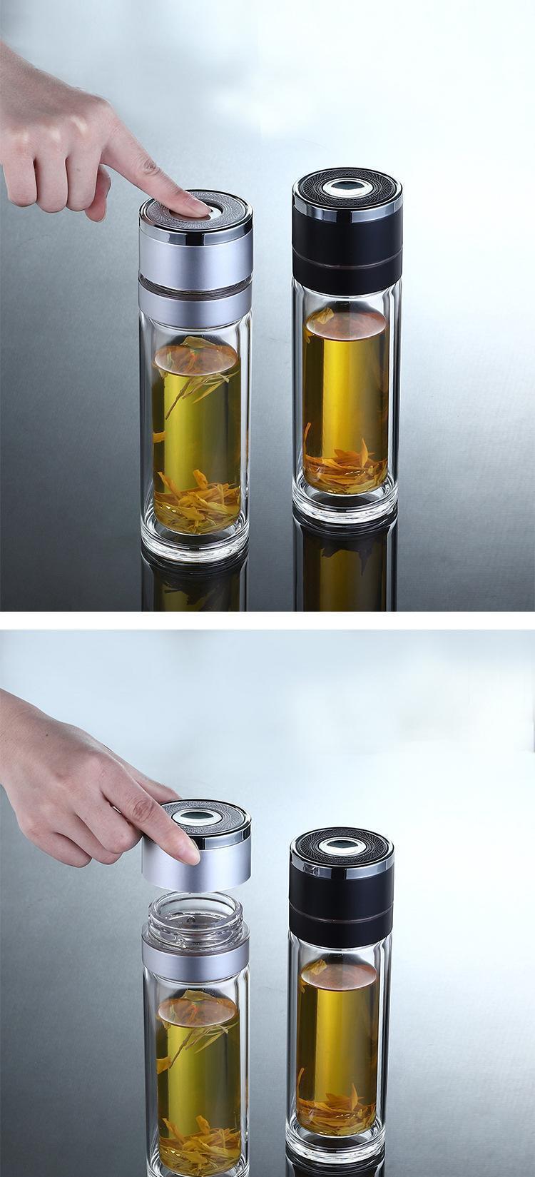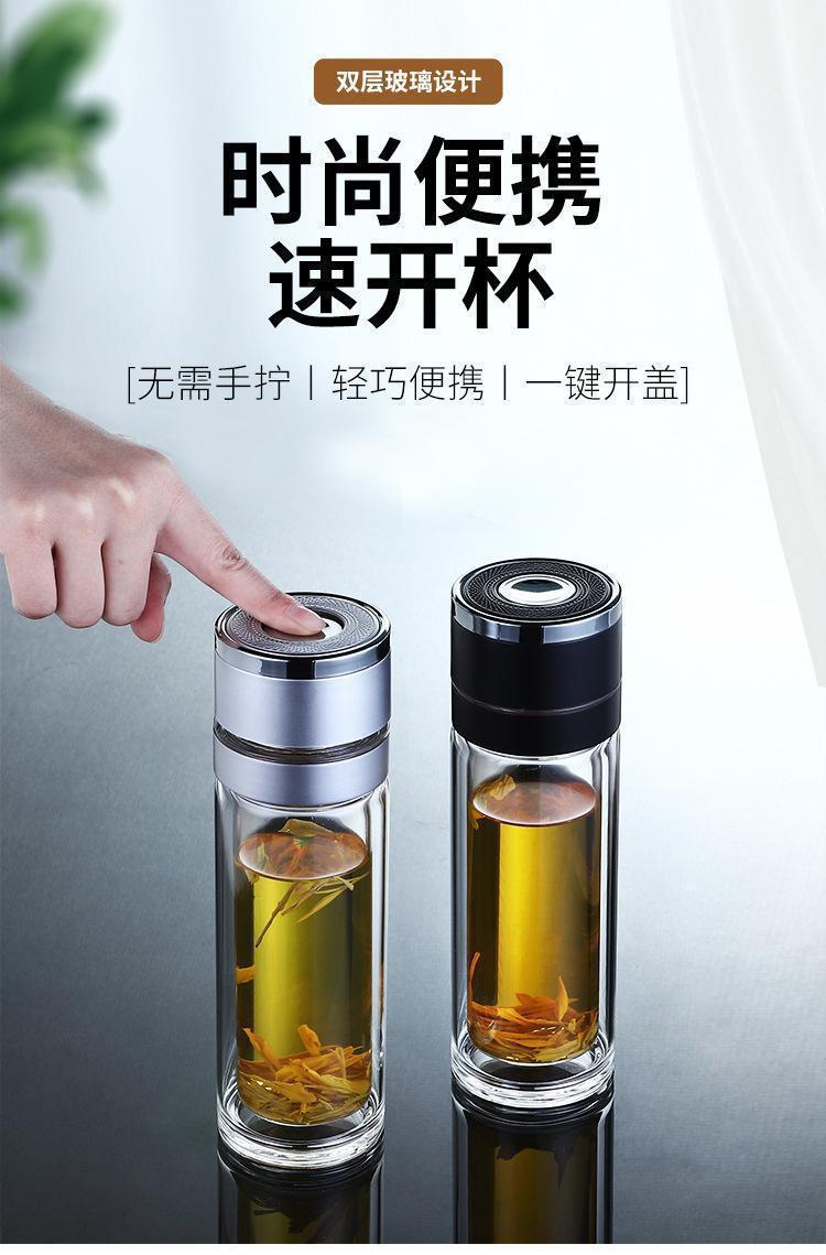 高档车载速开杯茶水分离杯男女便携泡茶杯弹扣双层玻璃水杯可印字