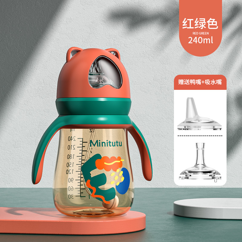 Minitutu小熊6个月以上奶瓶宽口径PP奶瓶水杯一瓶三用奶瓶批发