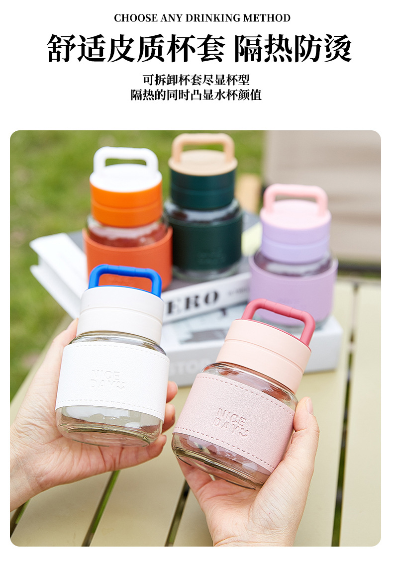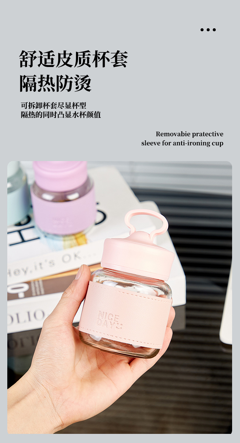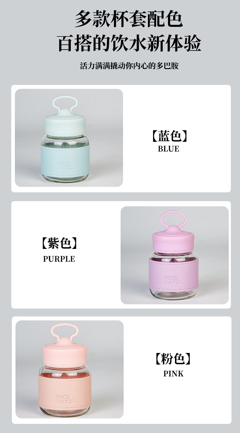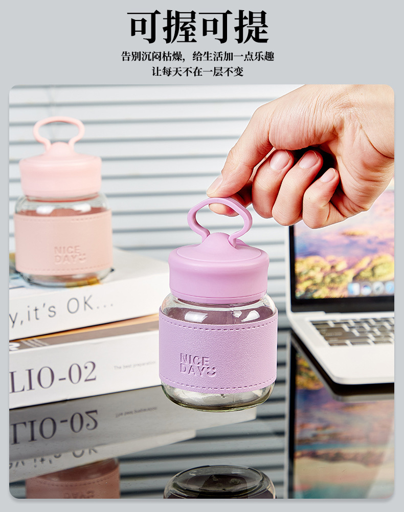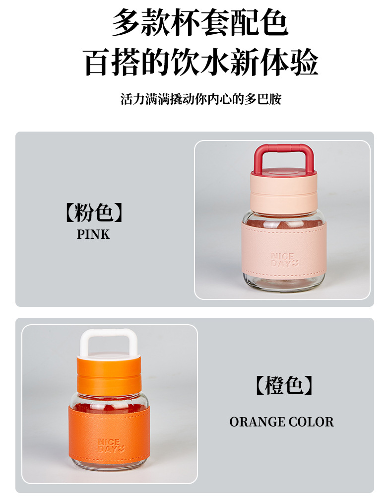 手提小水杯玻璃小奶杯摇摇杯果汁杯便携外带高颜值胖胖杯可爱杯子