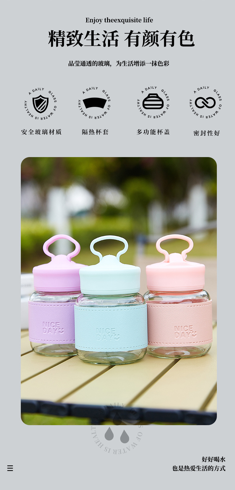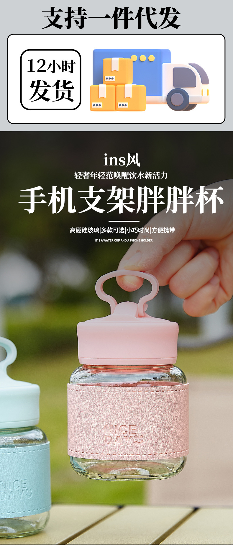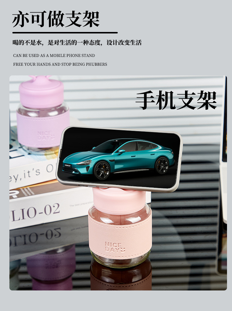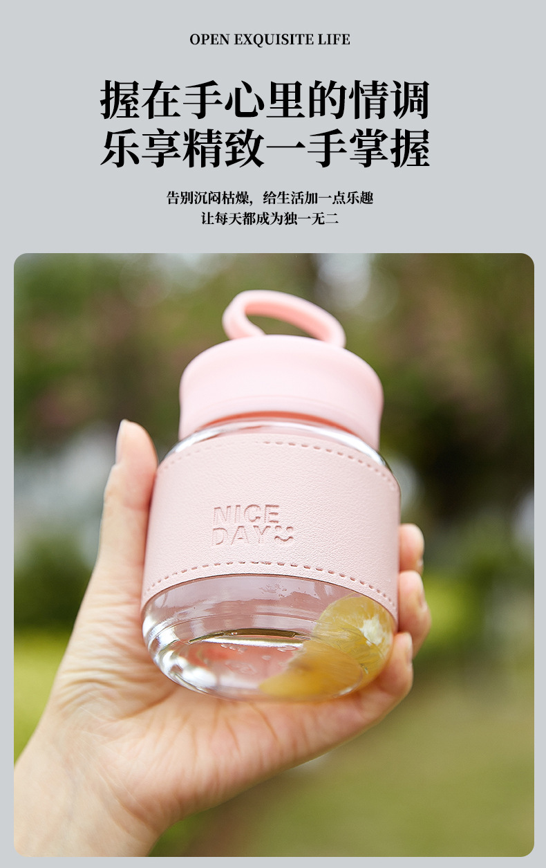 手提小水杯玻璃小奶杯摇摇杯果汁杯便携外带高颜值胖胖杯可爱杯子