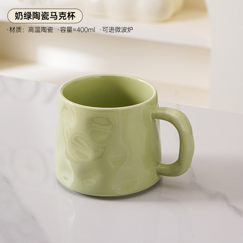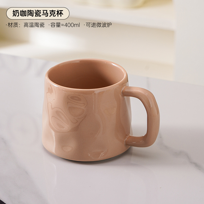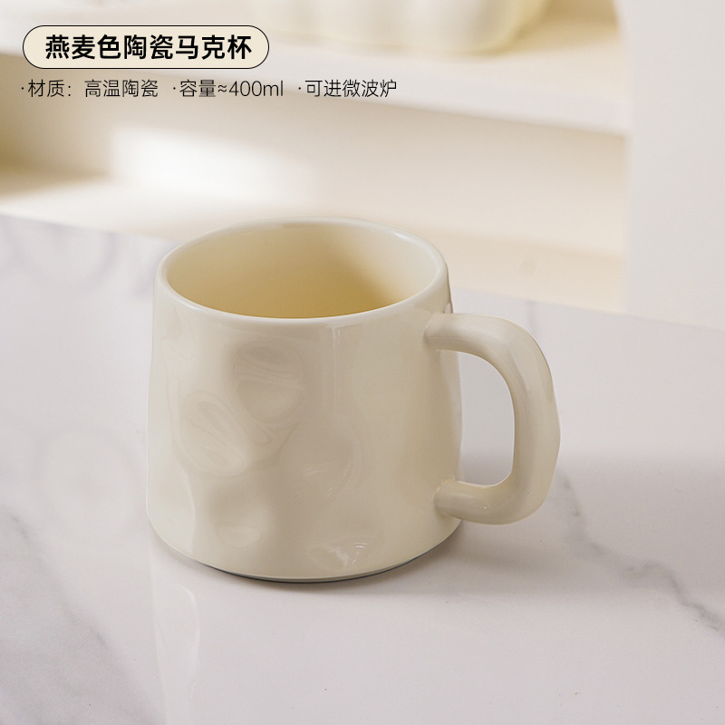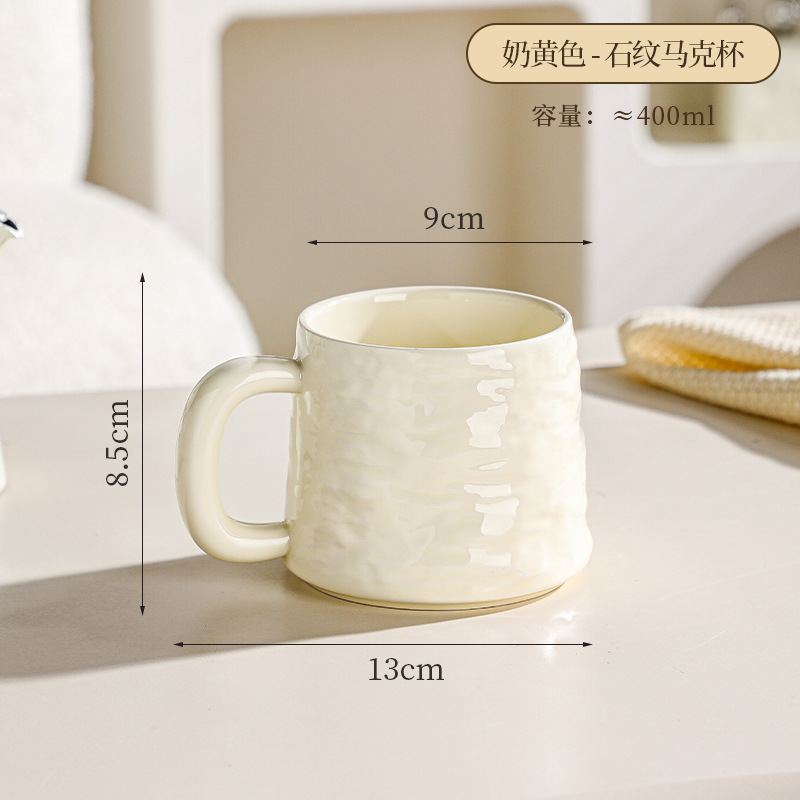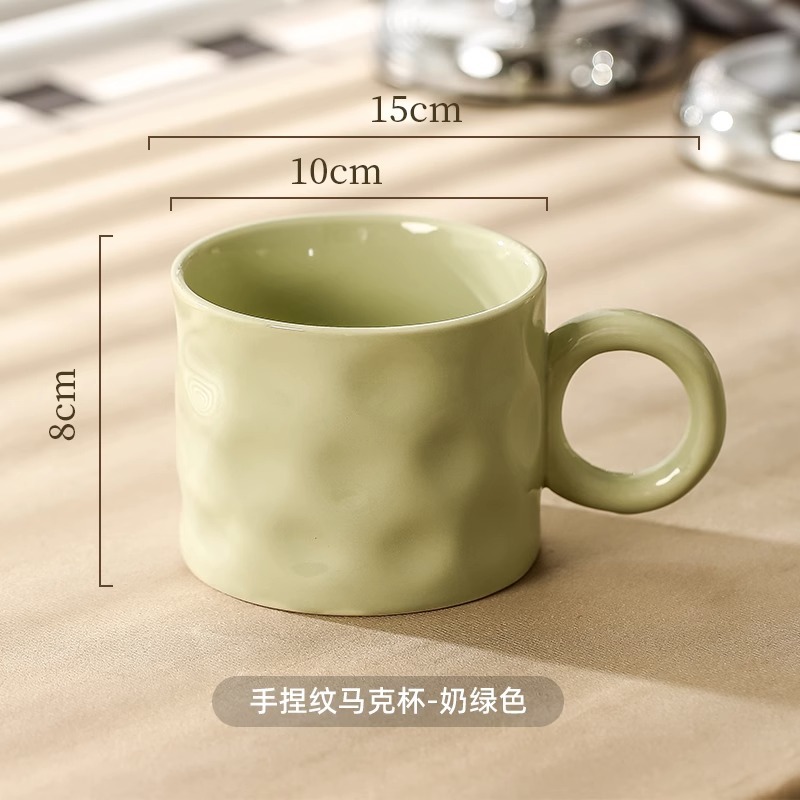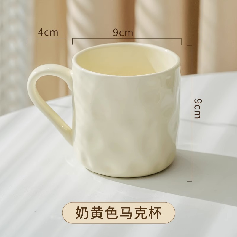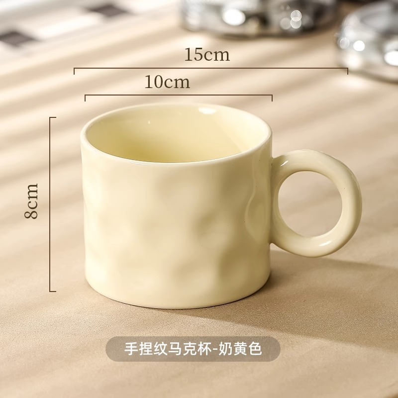 手捏纹奶油风系列马克杯家用大容量纯色陶瓷水杯高颜值创意咖啡杯