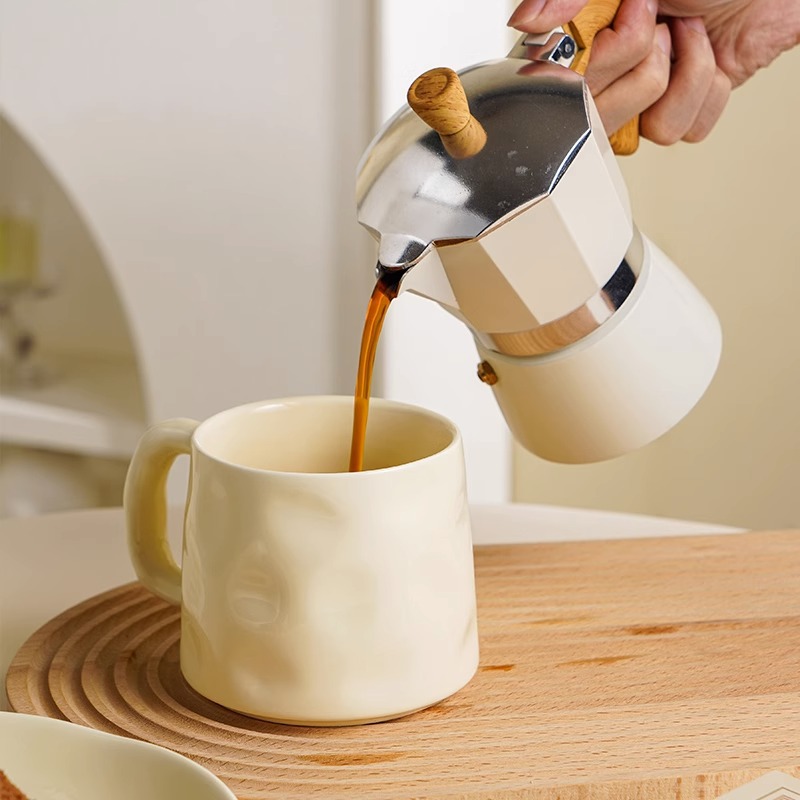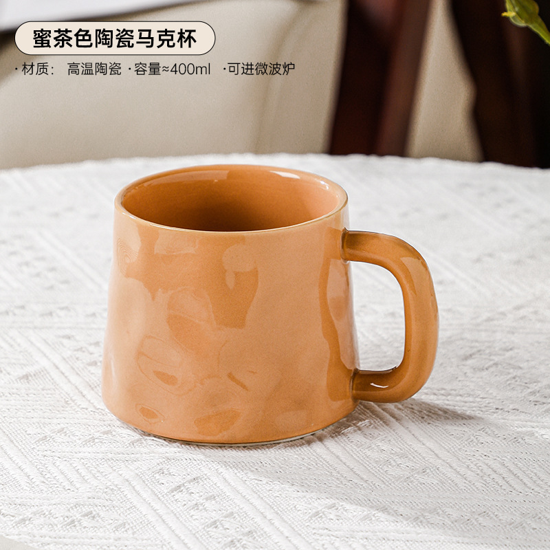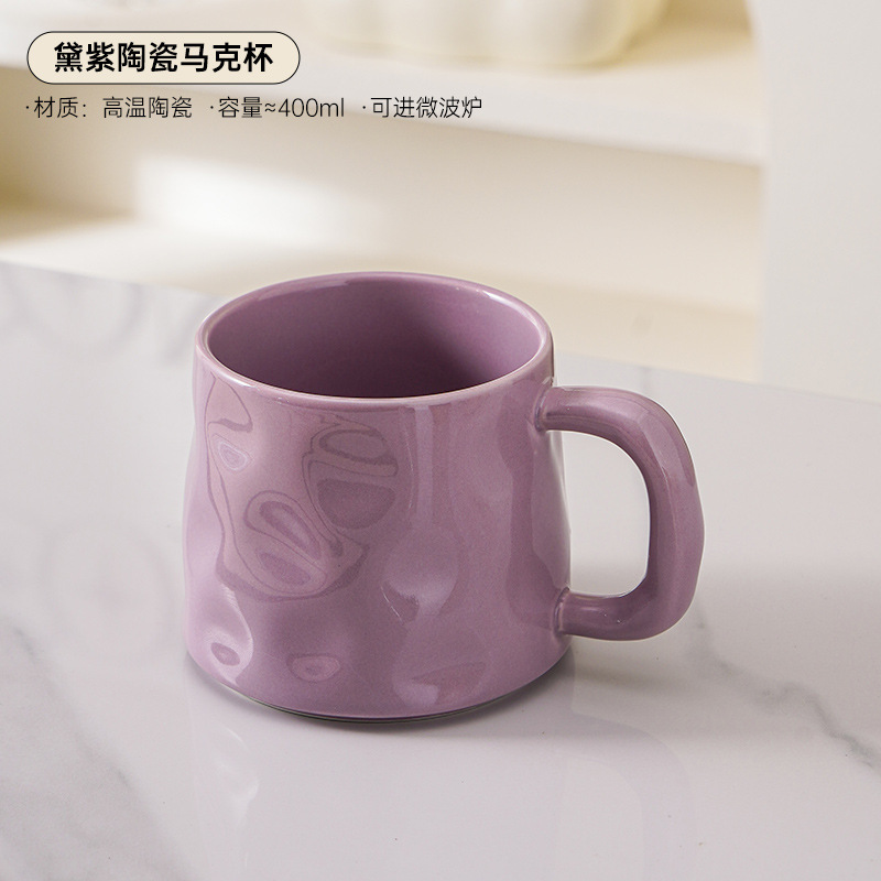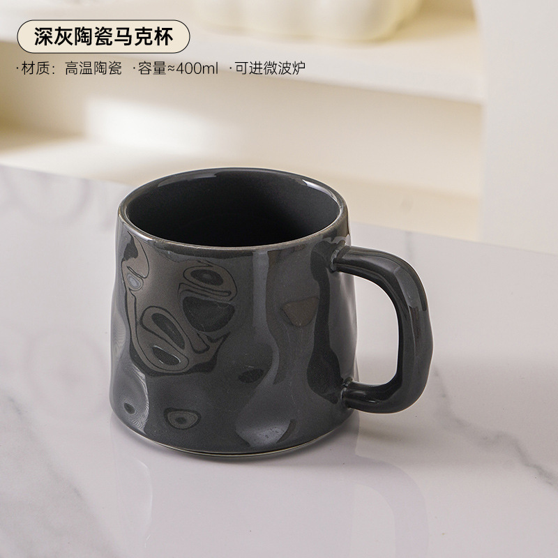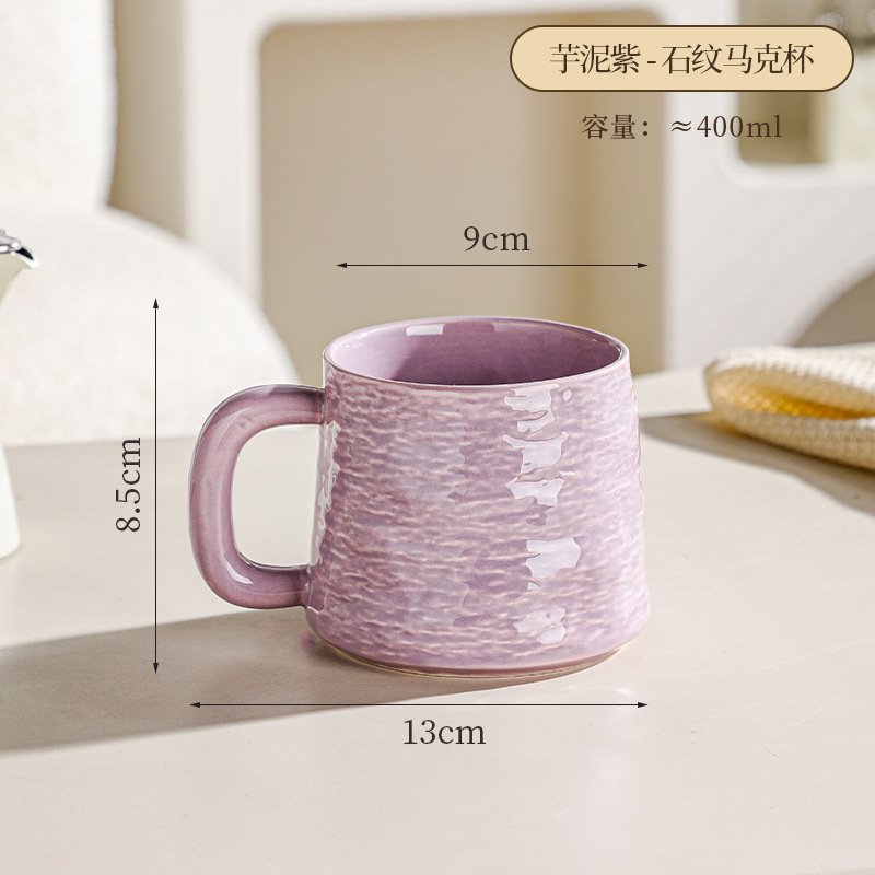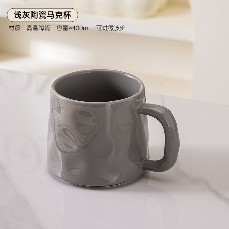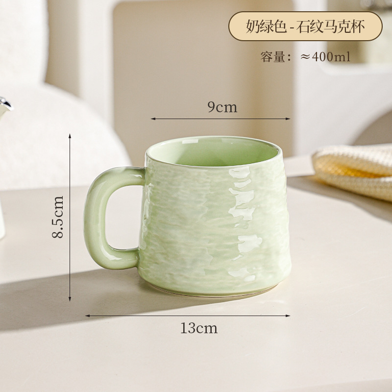 手捏纹奶油风系列马克杯家用大容量纯色陶瓷水杯高颜值创意咖啡杯