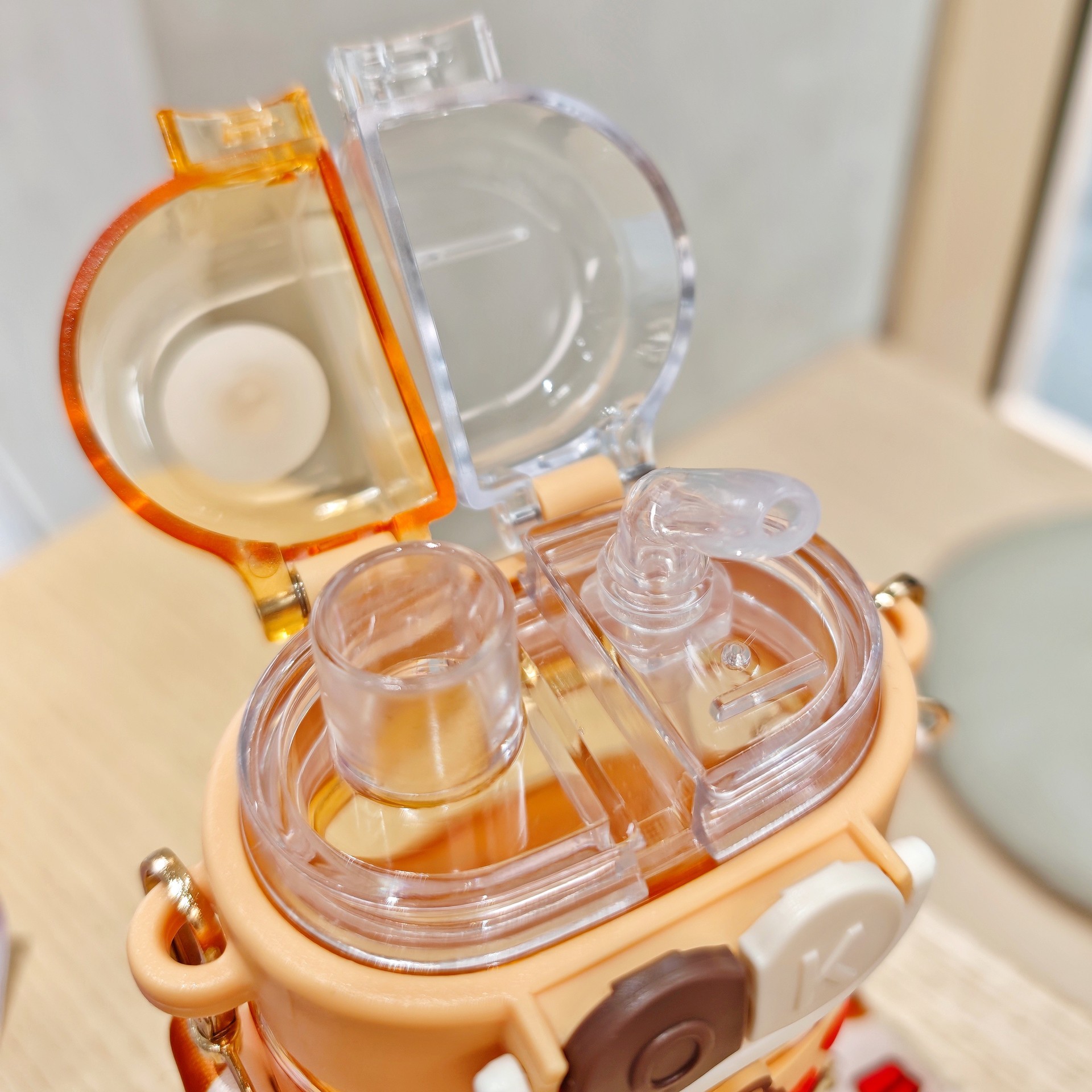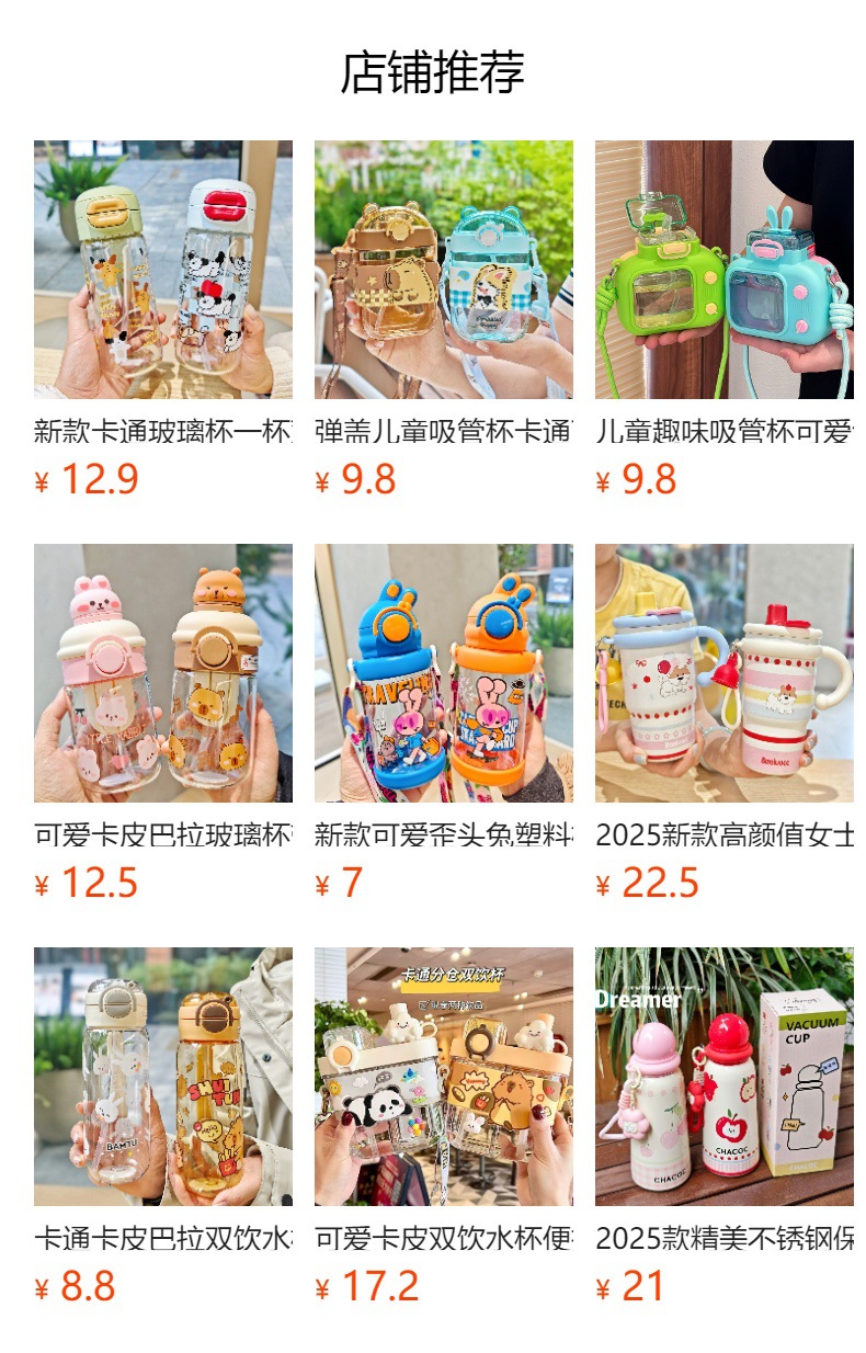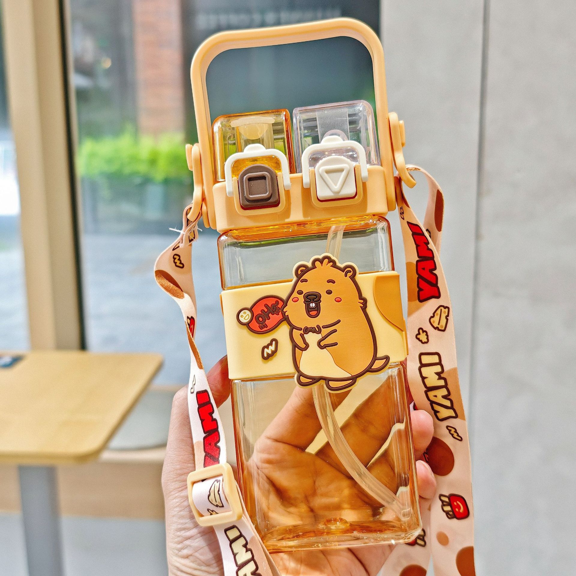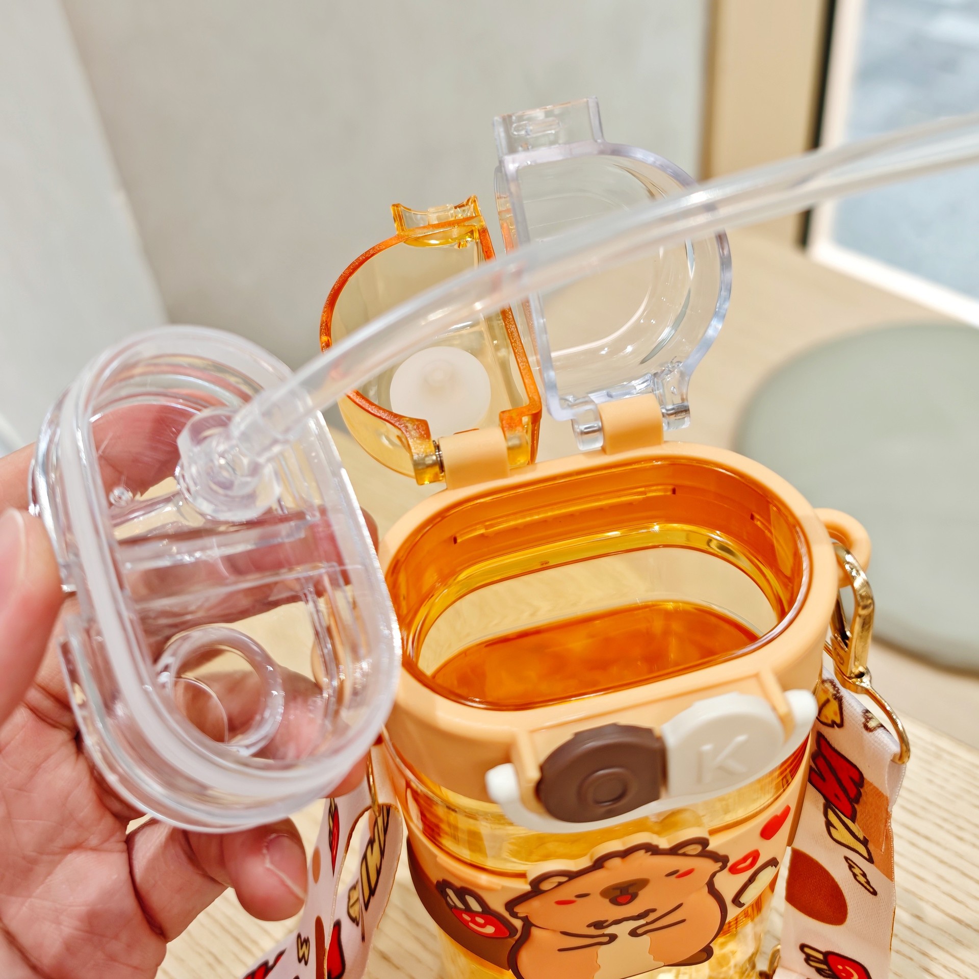 2025新款卡通塑料杯可爱双饮杯背带便携儿童吸管水杯跨境杯子批发