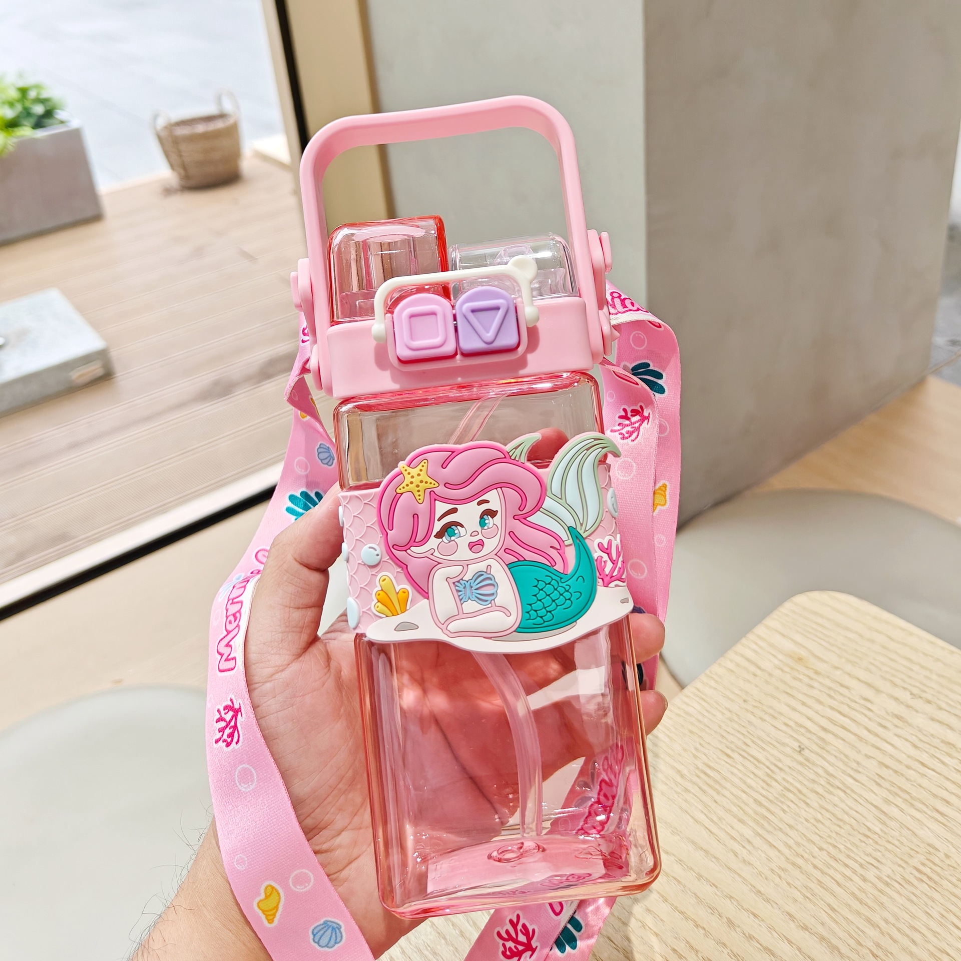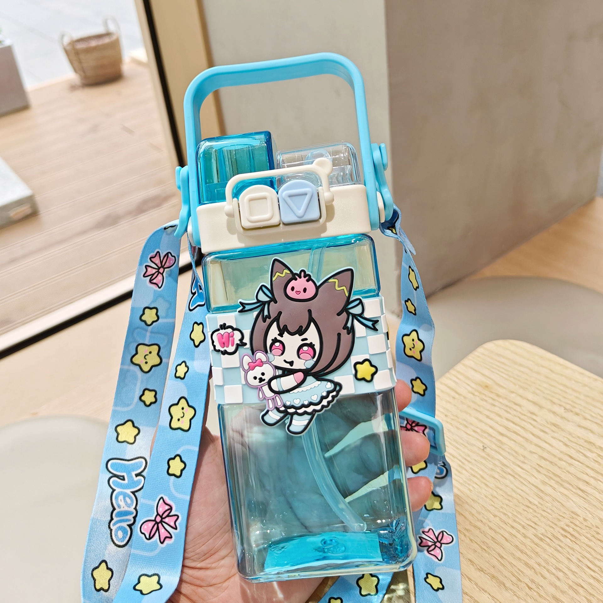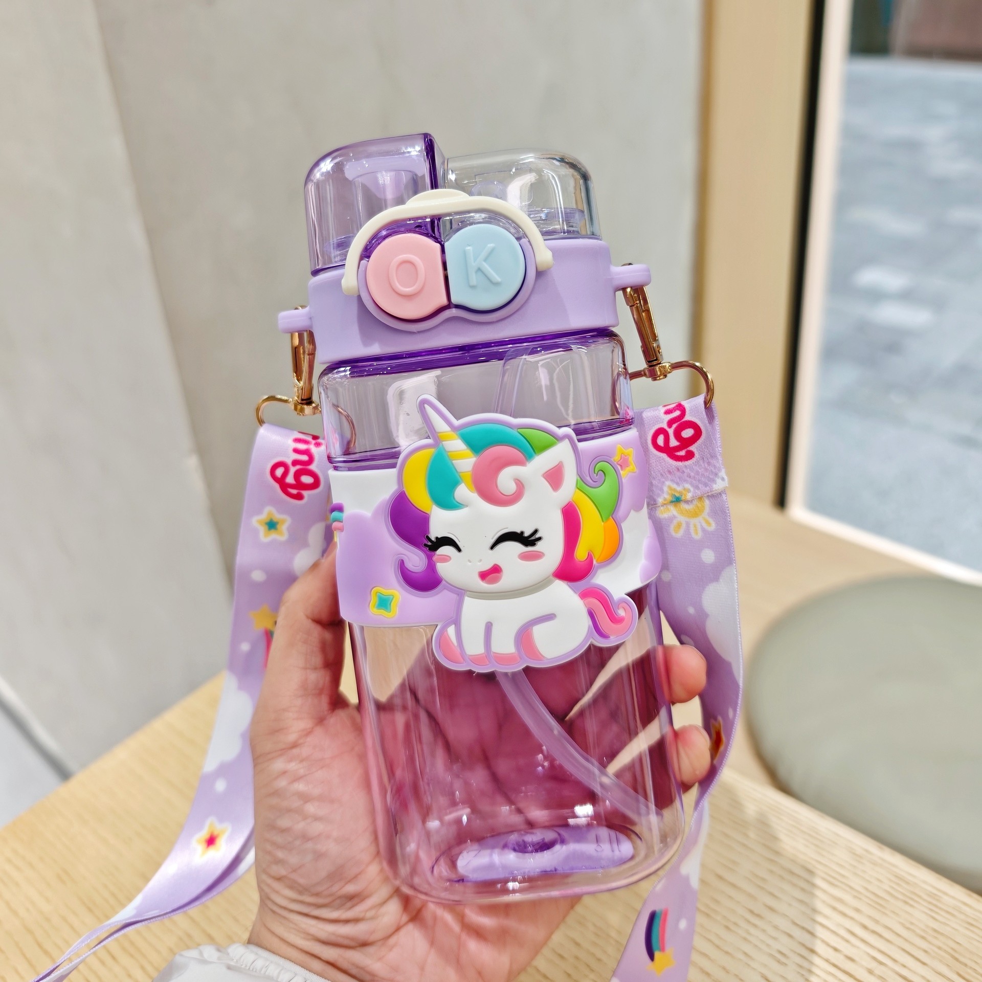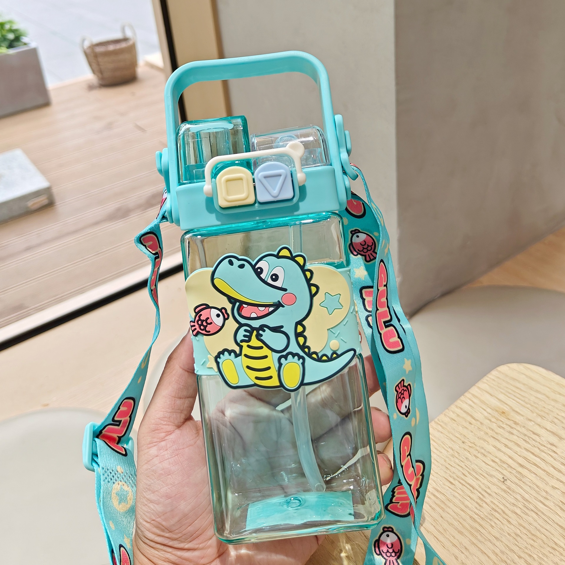 2025新款卡通塑料杯可爱双饮杯背带便携儿童吸管水杯跨境杯子批发