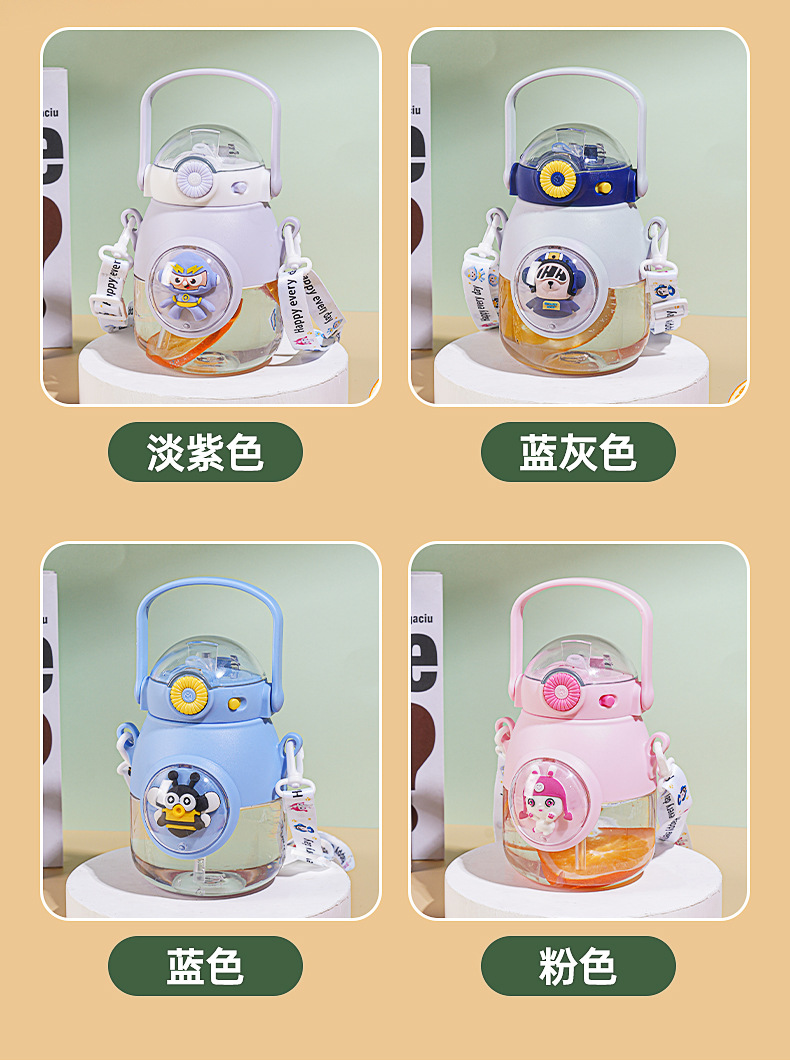 儿童水杯上学专用可爱夏天幼儿园塑料吸管杯大肚杯女孩小学生杯子