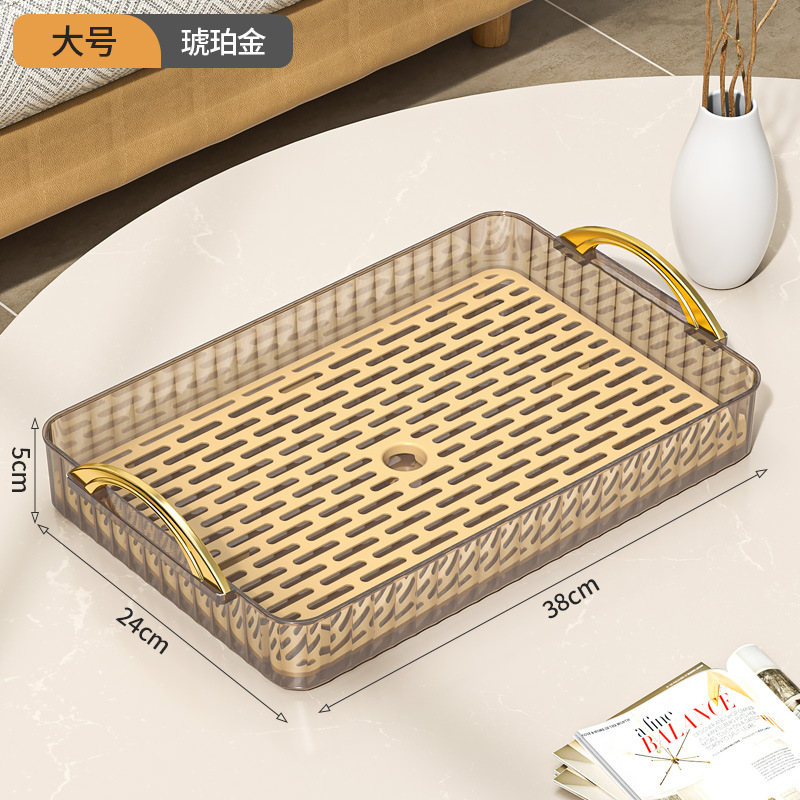 茶盘家用客厅干泡台轻奢茶具杯子架放茶杯水杯长方形双层沥水托盘