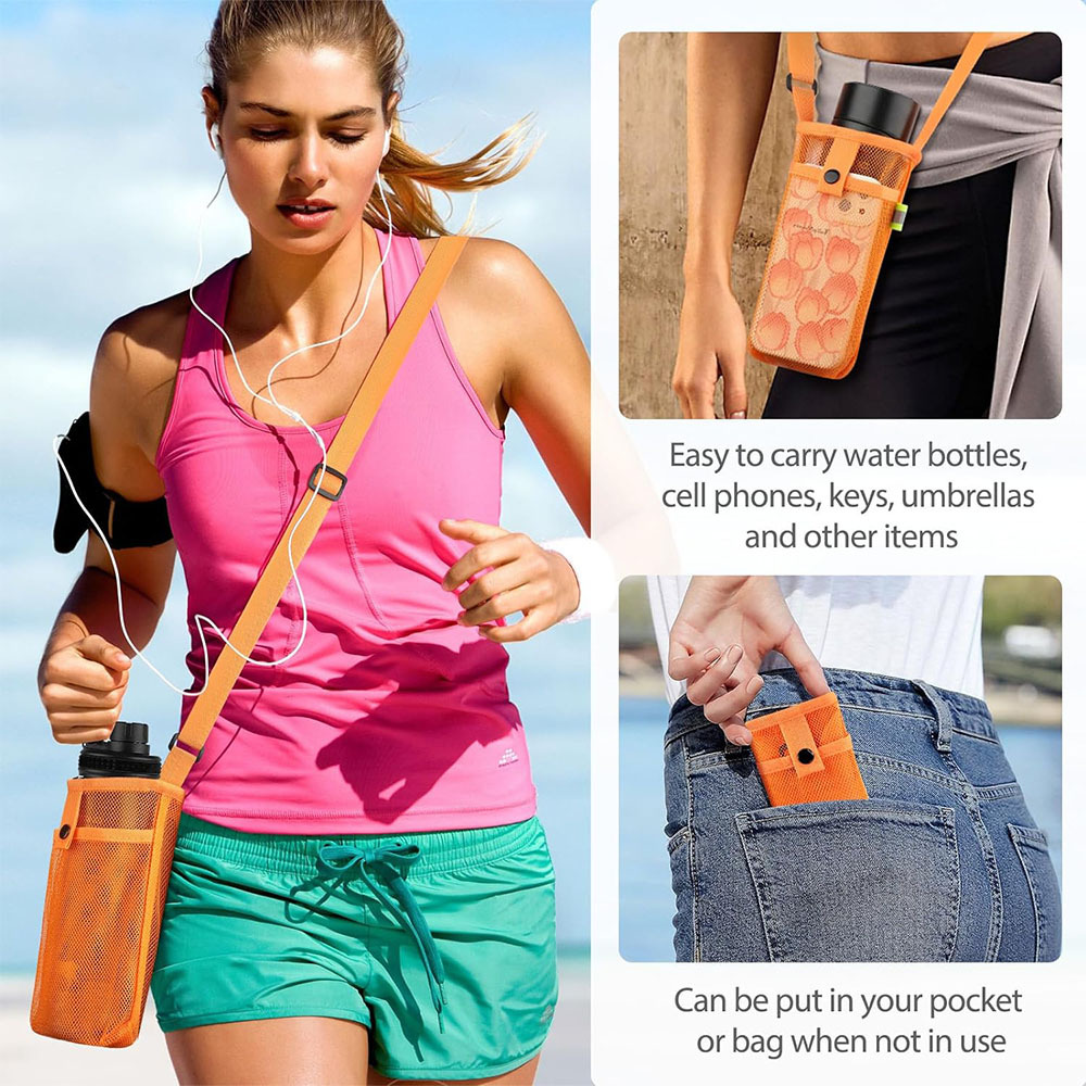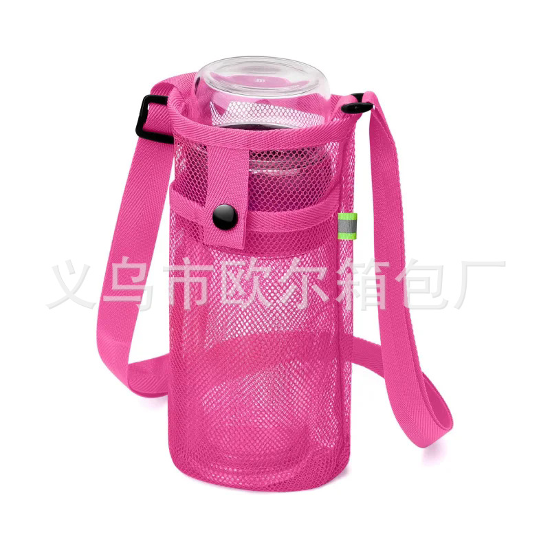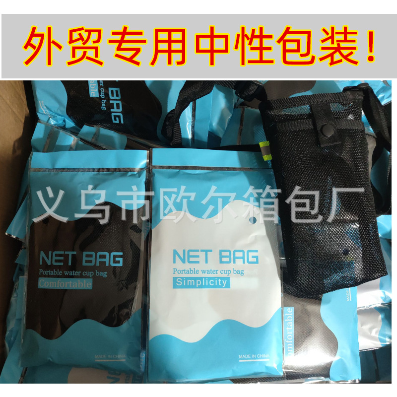 水杯袋网兜便携斜跨网袋带手机亚马逊外贸跨境新爆款保温网格杯套