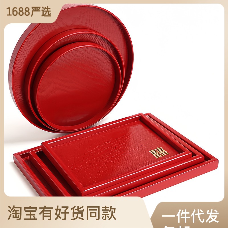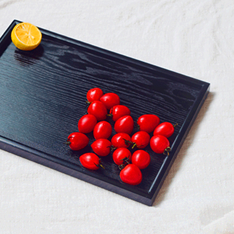 中式酒店黑色木质托盘长方形饭店复古端菜盘家用茶水杯平盘批发