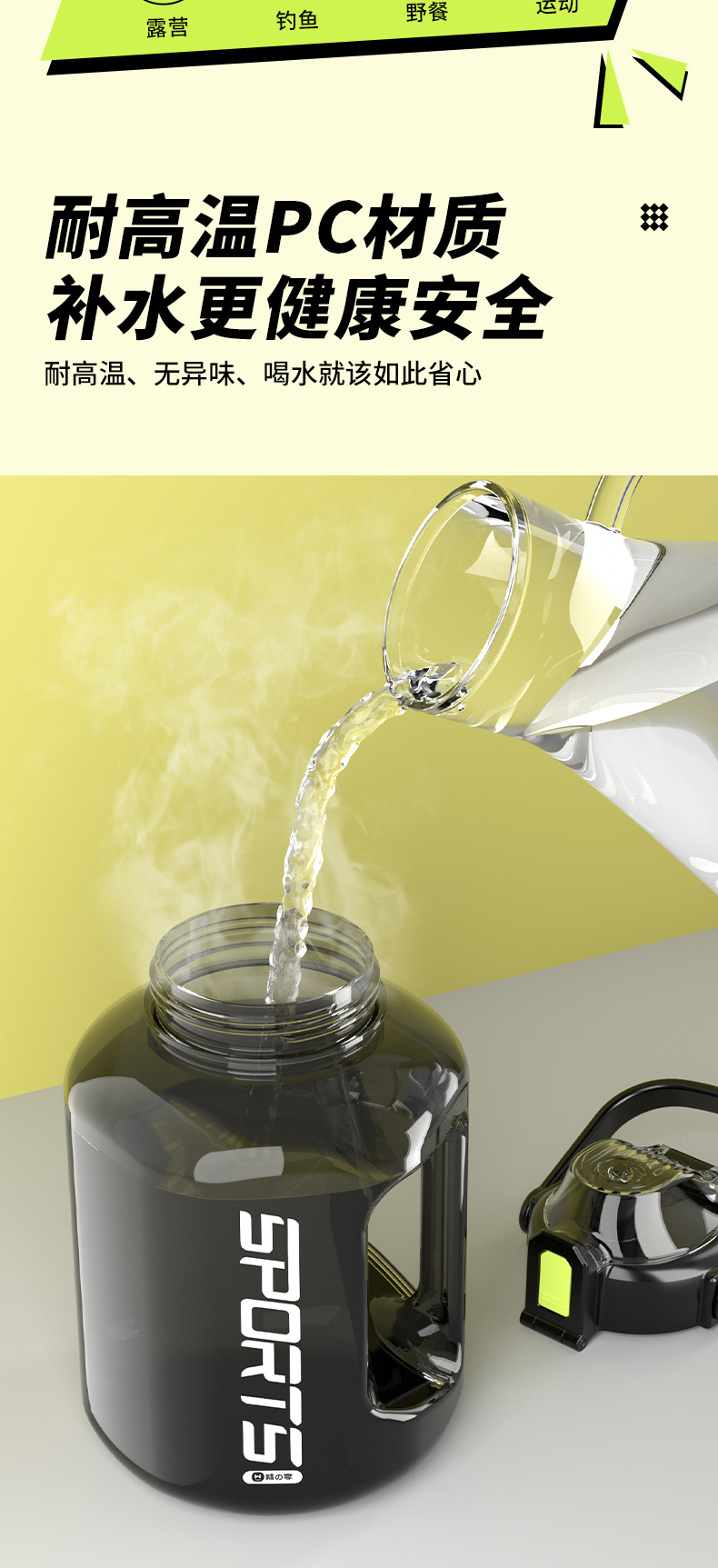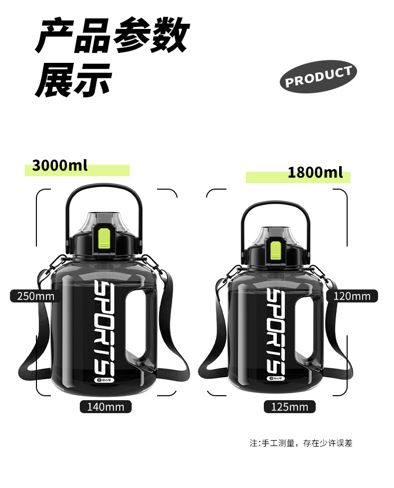 水杯大容量夏季运动水壶通用2000ml吨吨桶太空杯子耐高温夏天