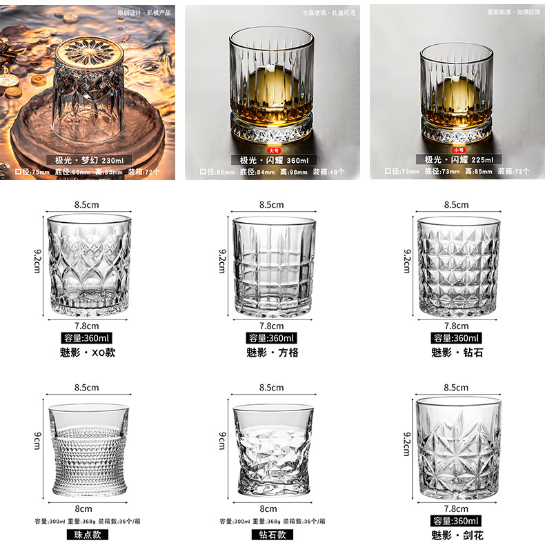 高颜值创意轻奢玻璃威士忌杯商用酒杯啤酒杯家用水杯玻璃杯子套装