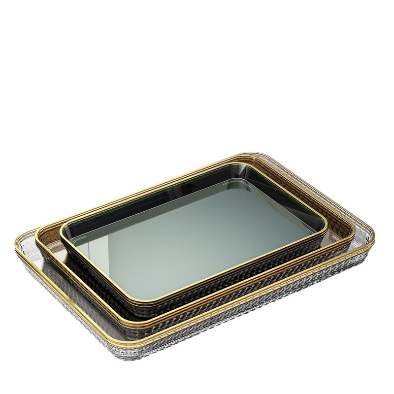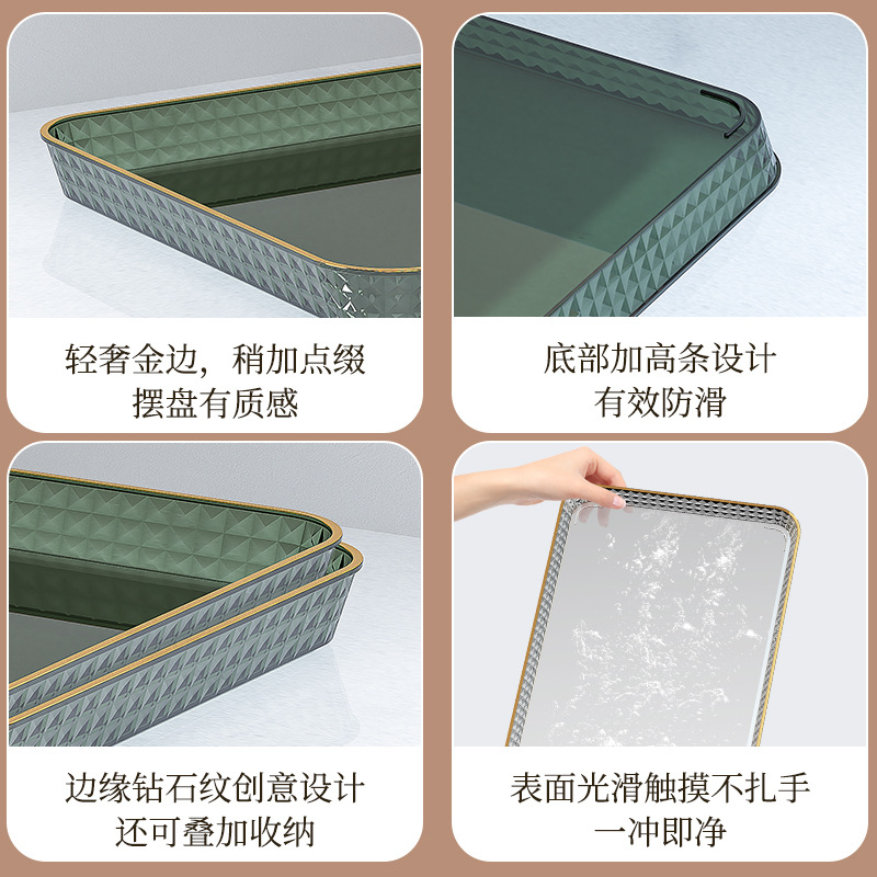 北欧轻奢长方形茶盘托盘家用放茶杯水杯客厅茶几透明金边托盘餐盘