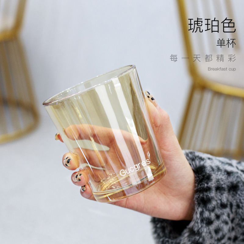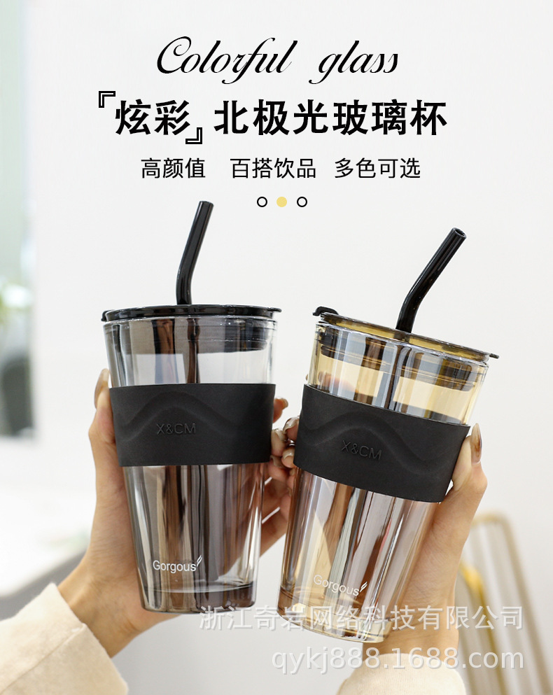 北极光玻璃杯ins创意奶茶杯高颜值伴手礼早餐水杯好看通用咖啡杯