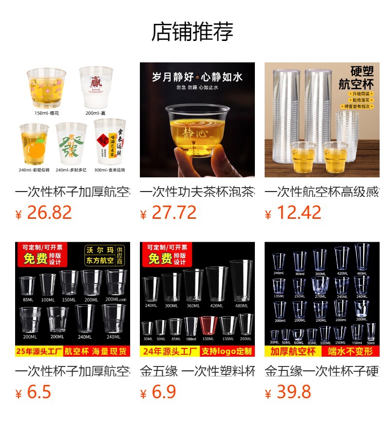 金五缘航空杯一次性杯子硬塑料耐高温加厚试饮试喝杯酒水杯品茶杯