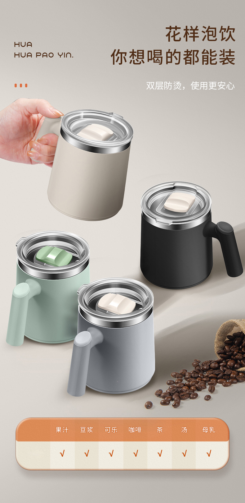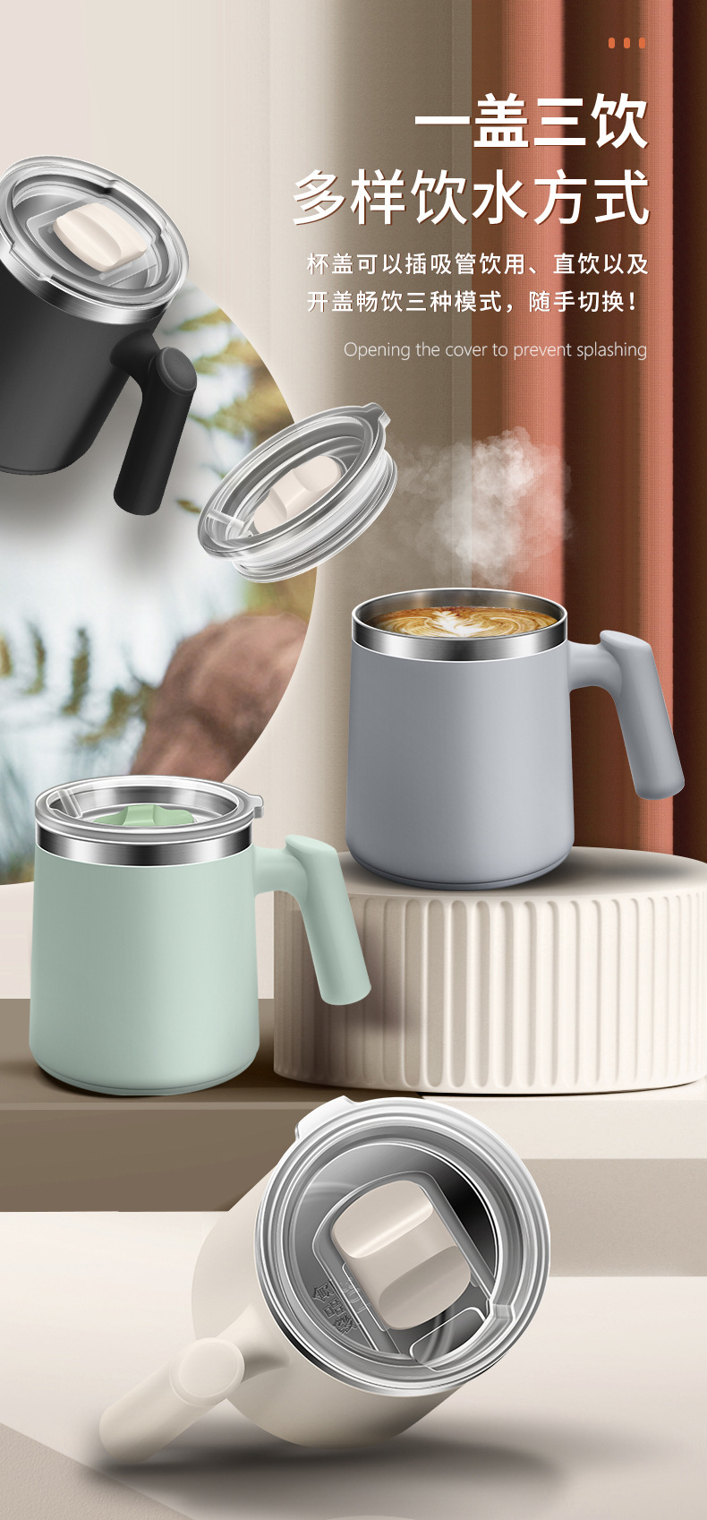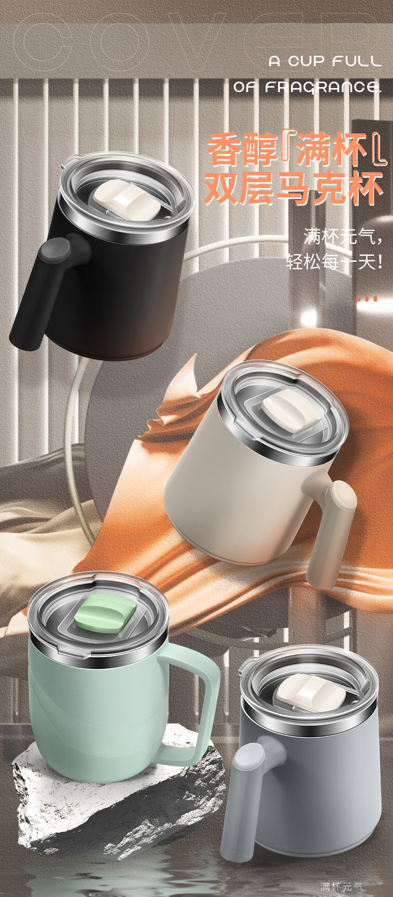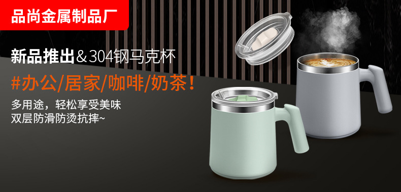 304不锈钢西瓜马克杯便携带盖办公室茶杯双层防烫咖啡杯保温水杯