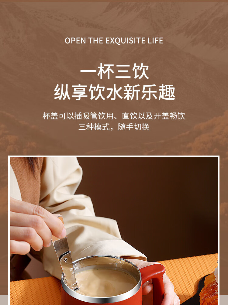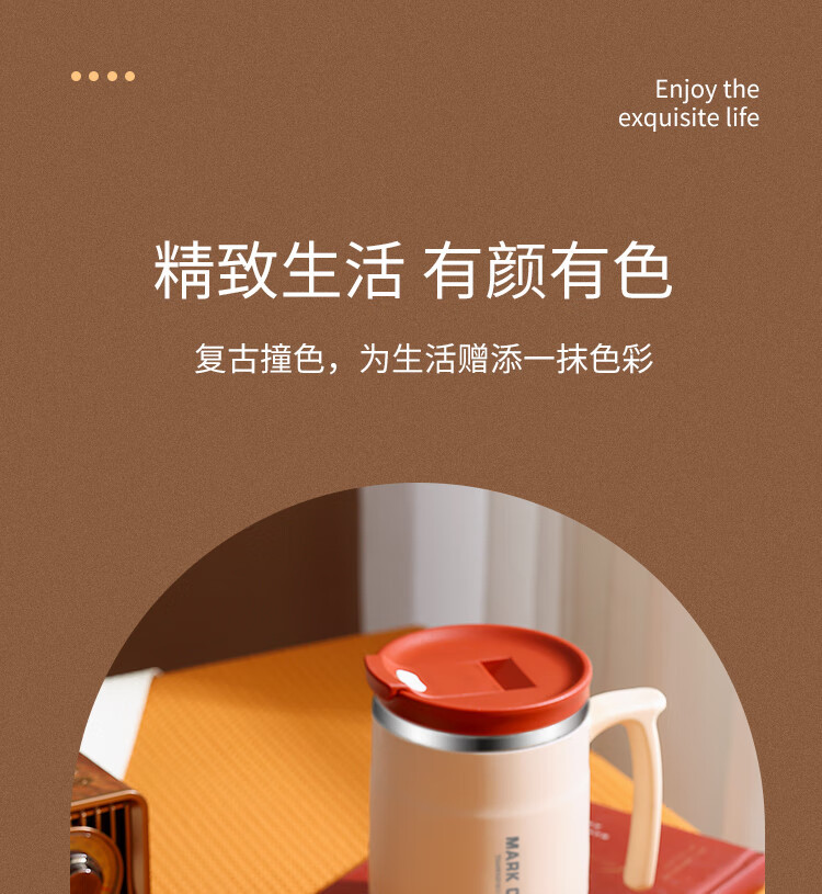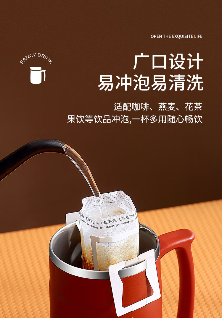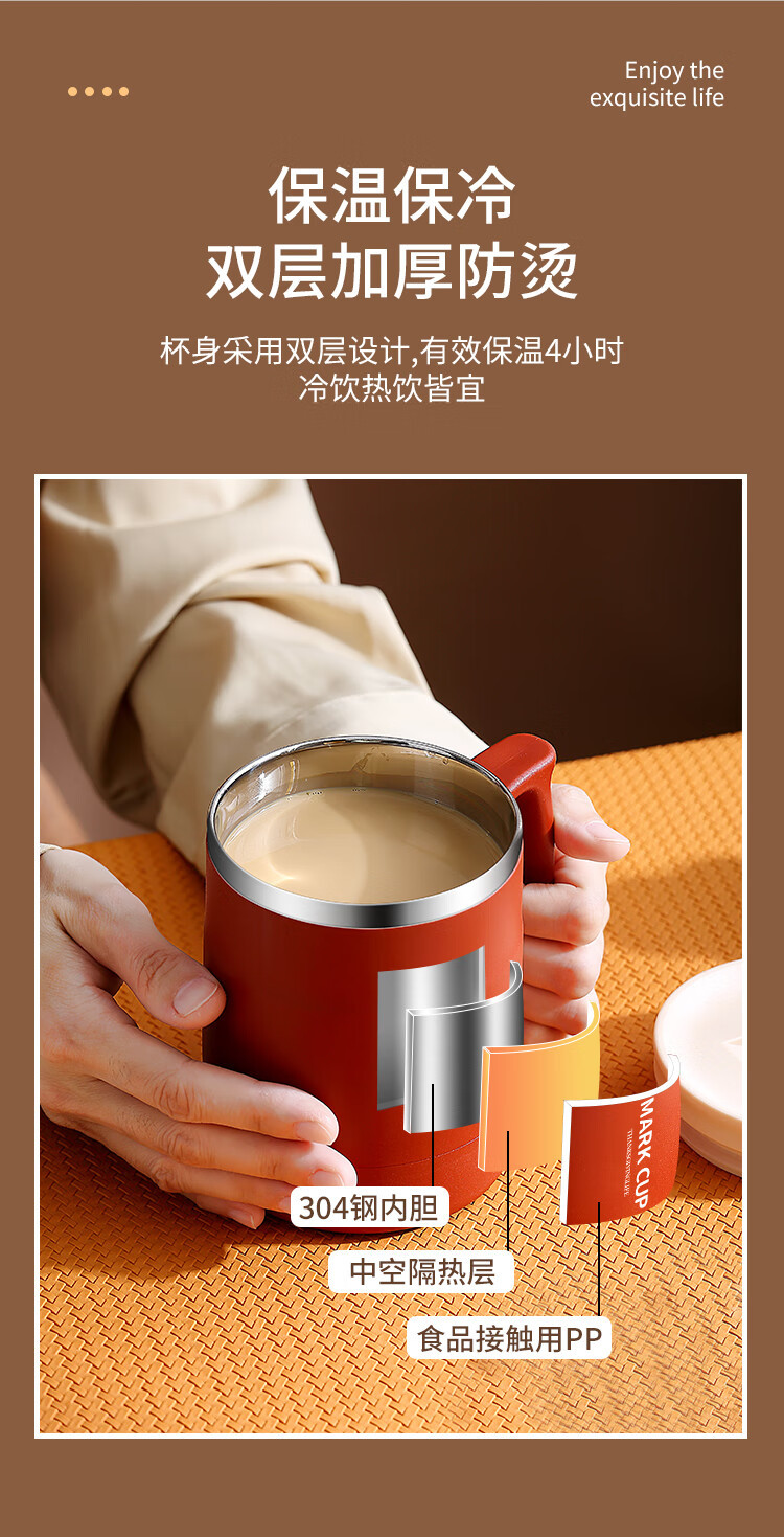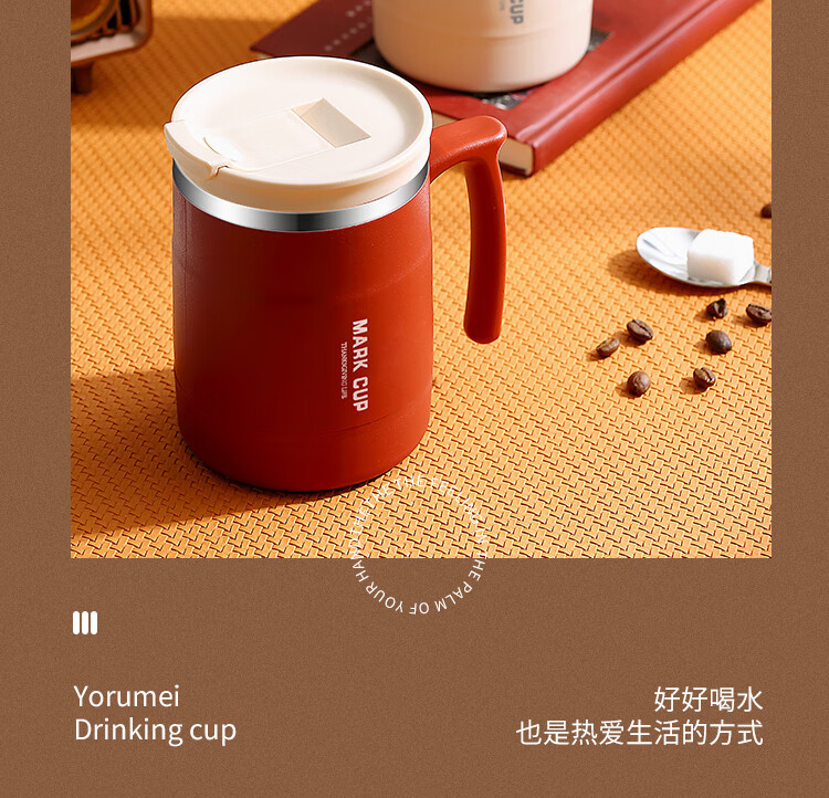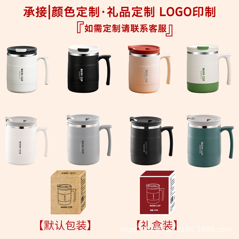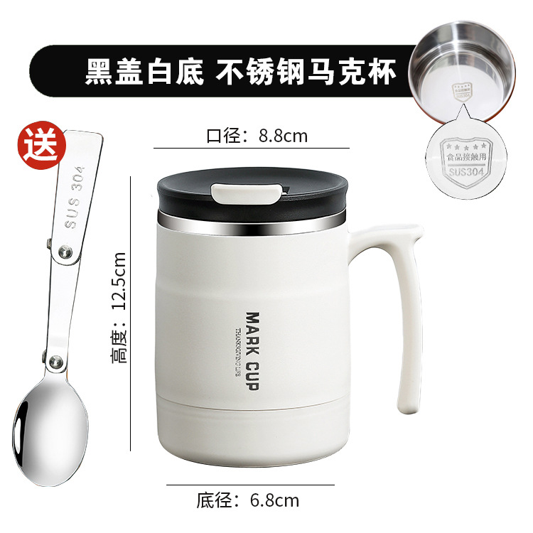 304不锈钢马克杯男女高颜值咖啡杯早餐杯水杯家用带盖勺办公水杯