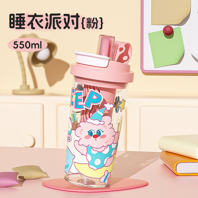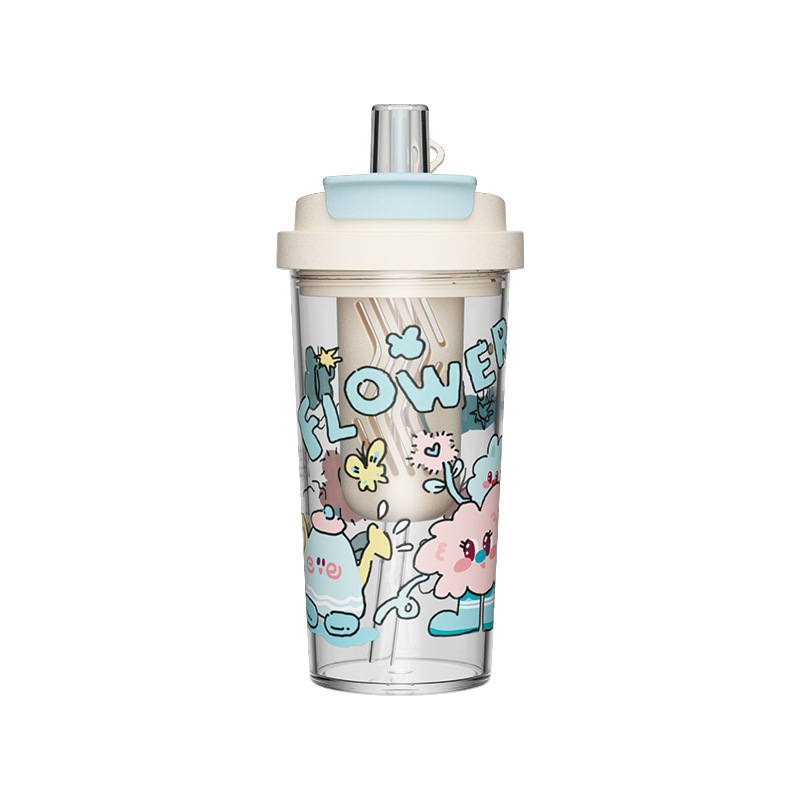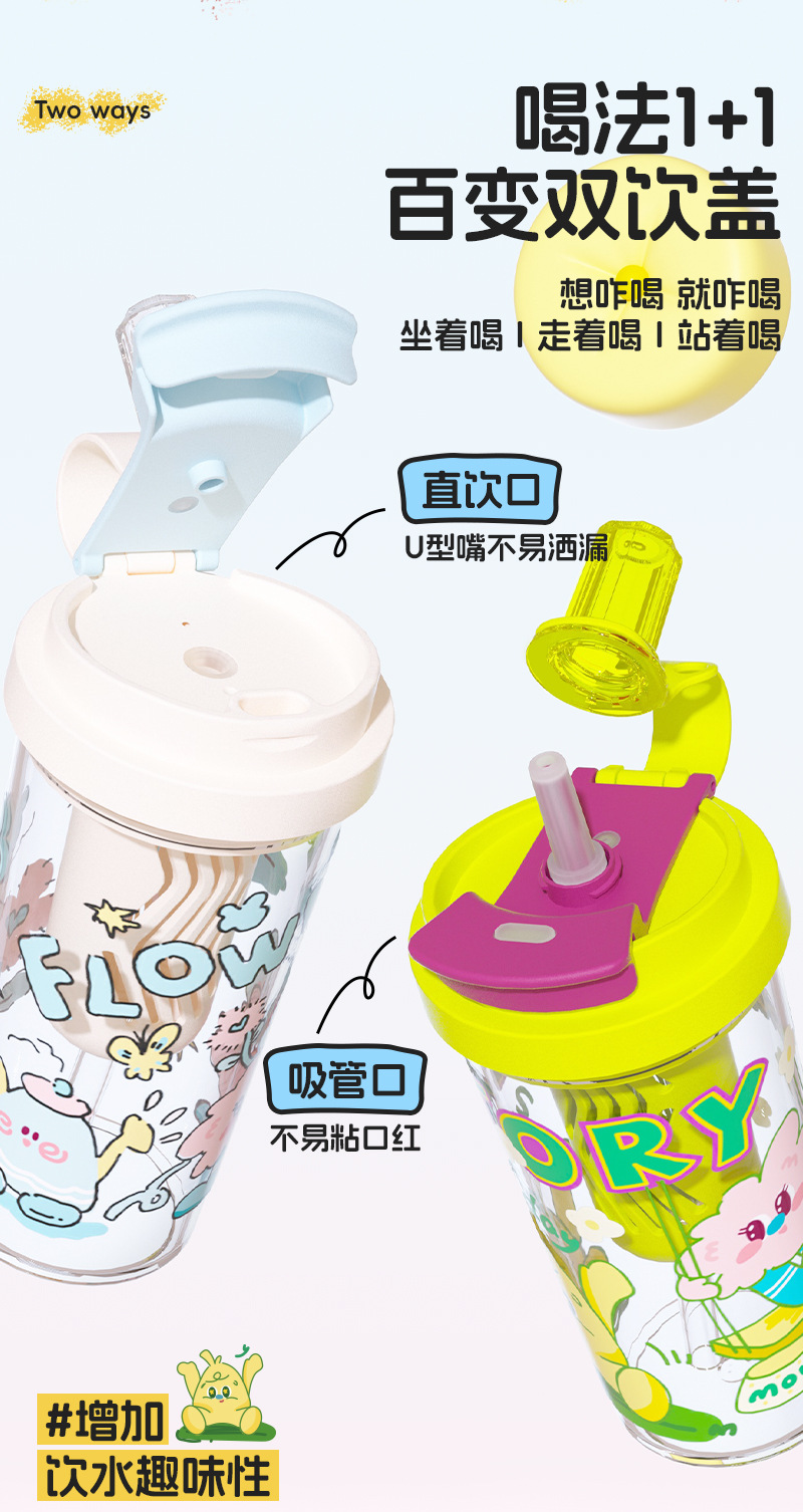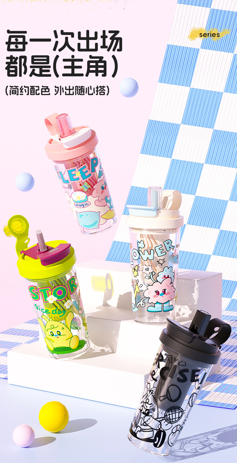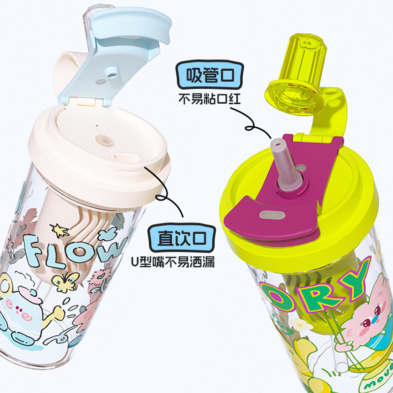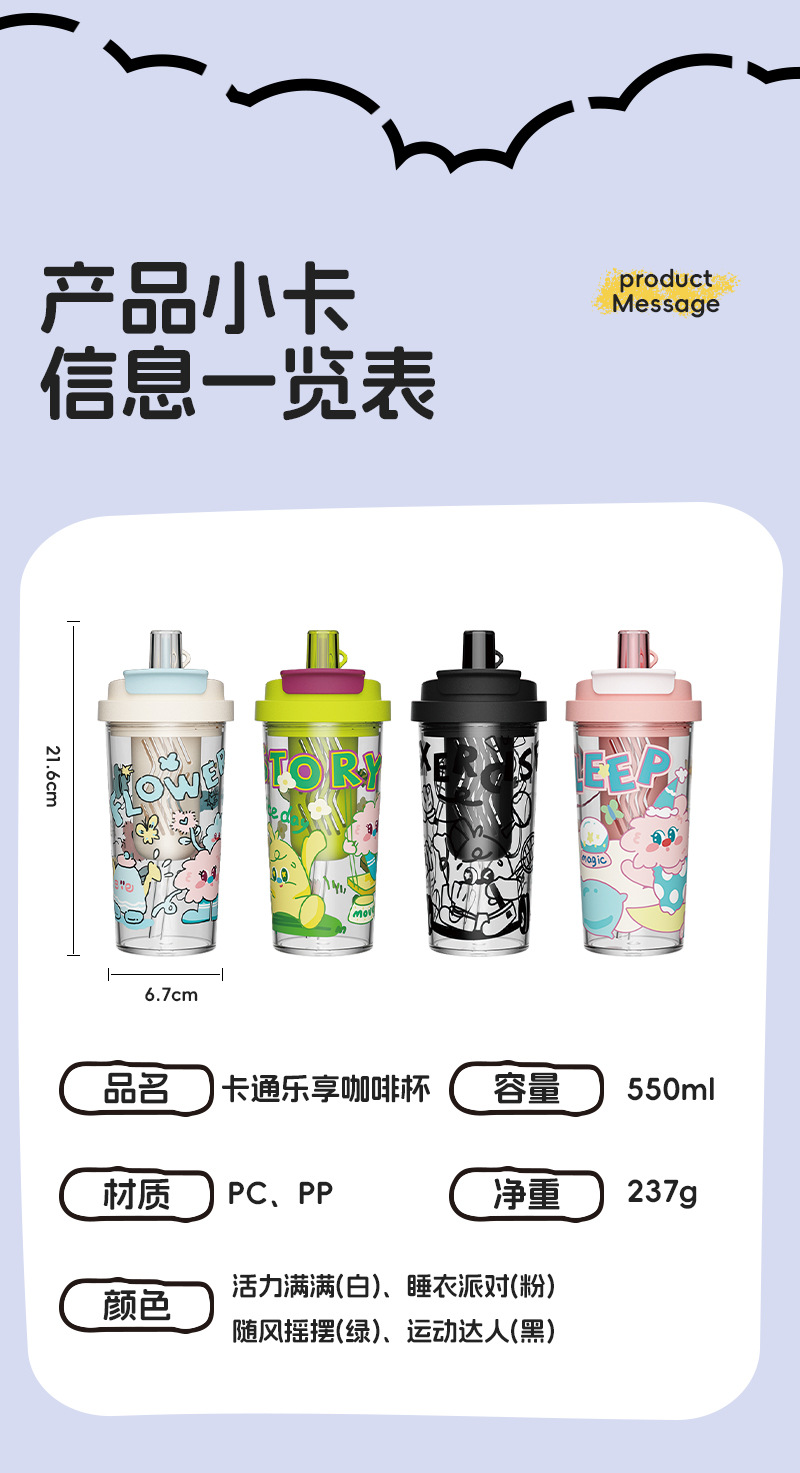 新款通用塑料杯简约大容量耐高温夏天水杯高颜值带吸管女生卡通杯
