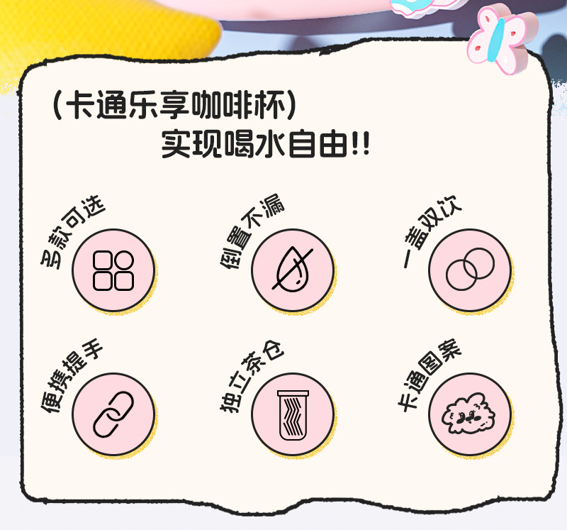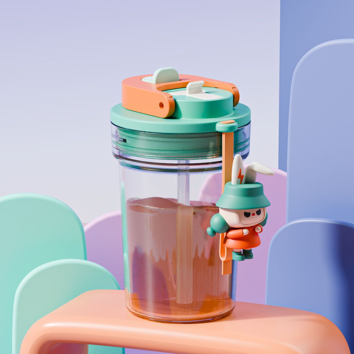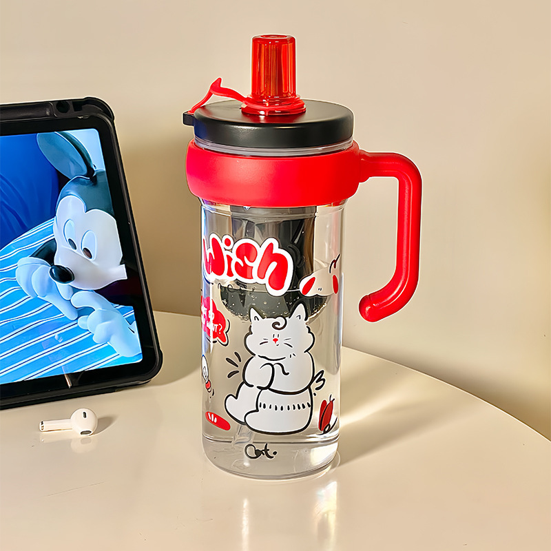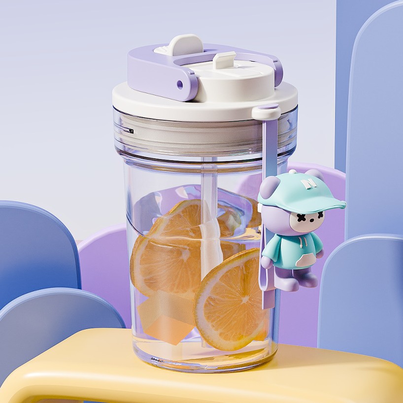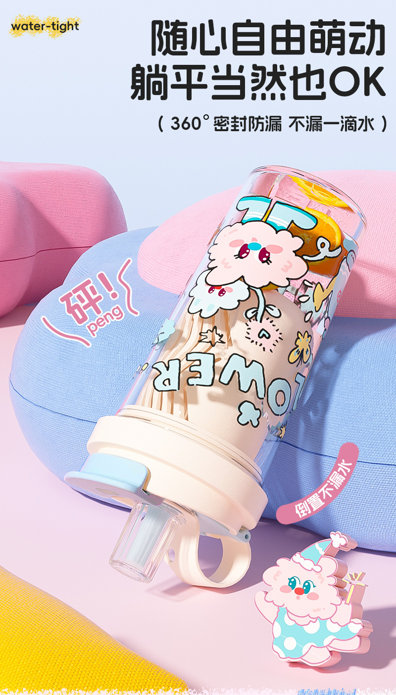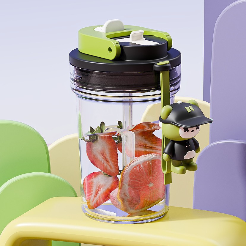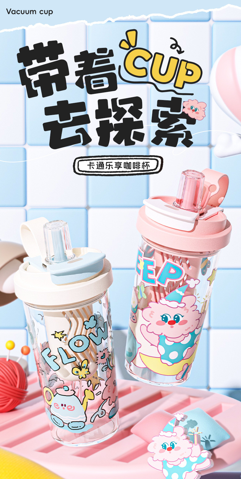 新款通用塑料杯简约大容量耐高温夏天水杯高颜值带吸管女生卡通杯