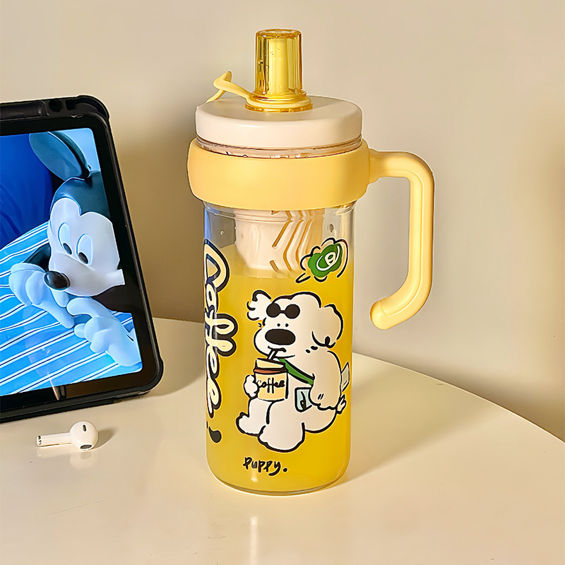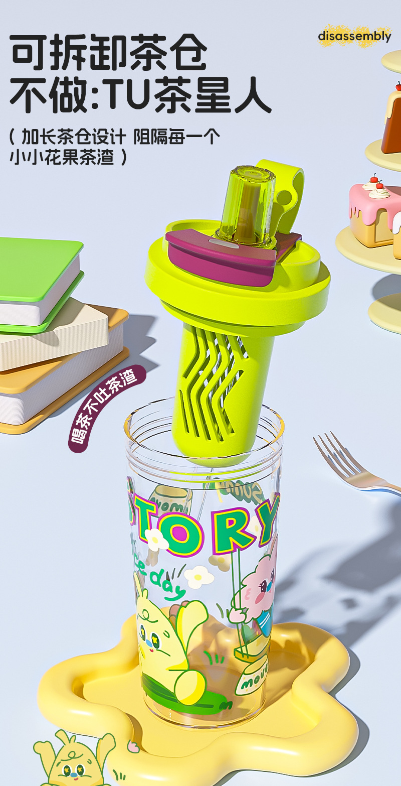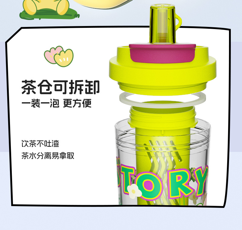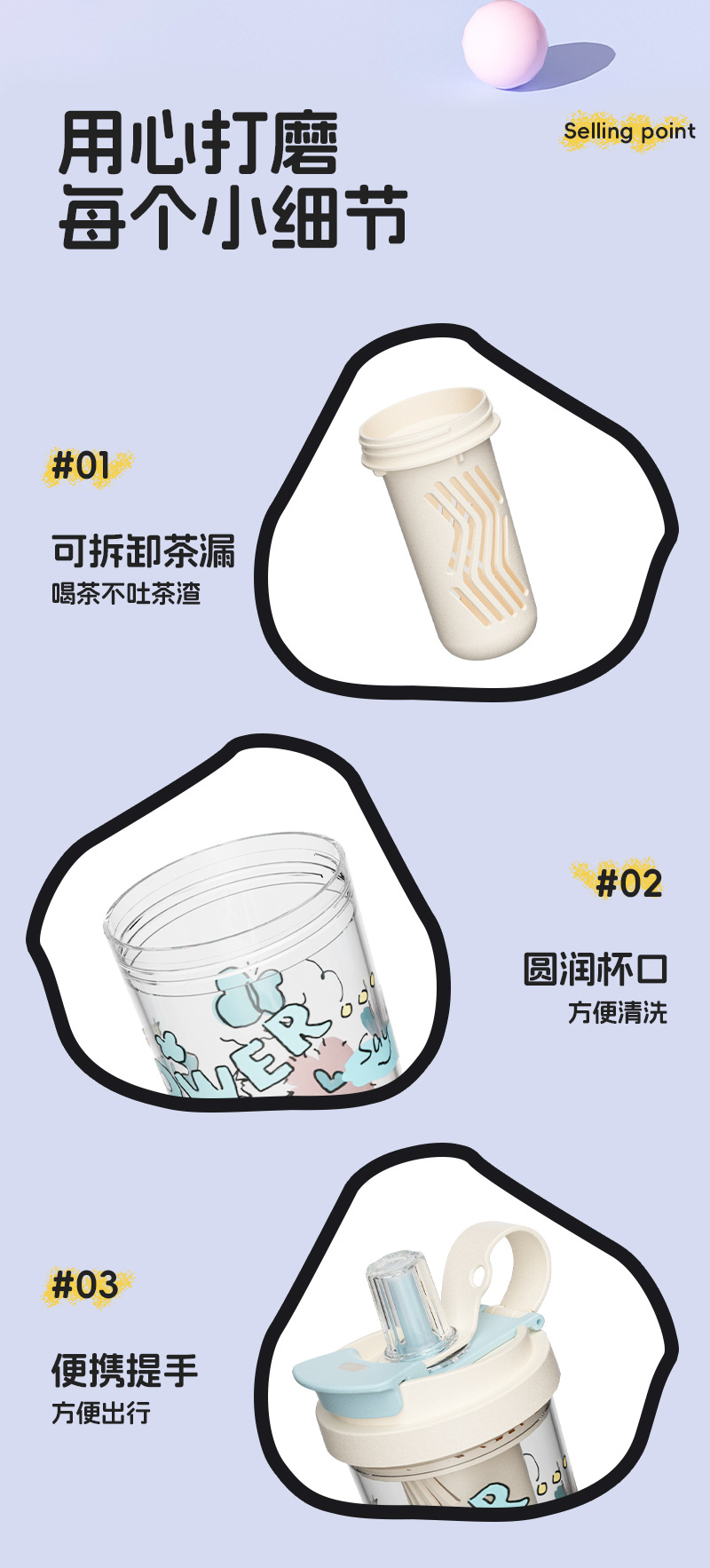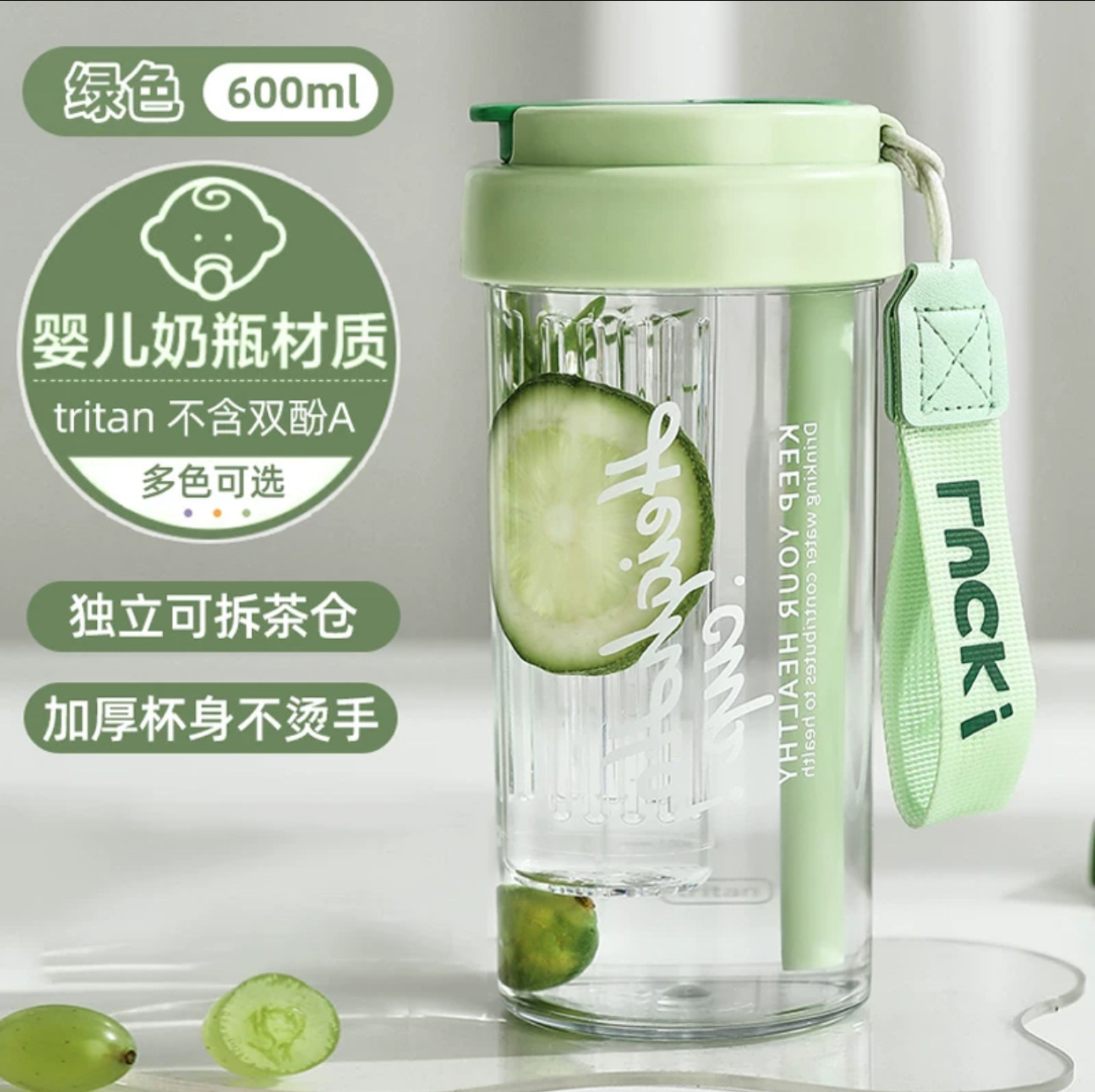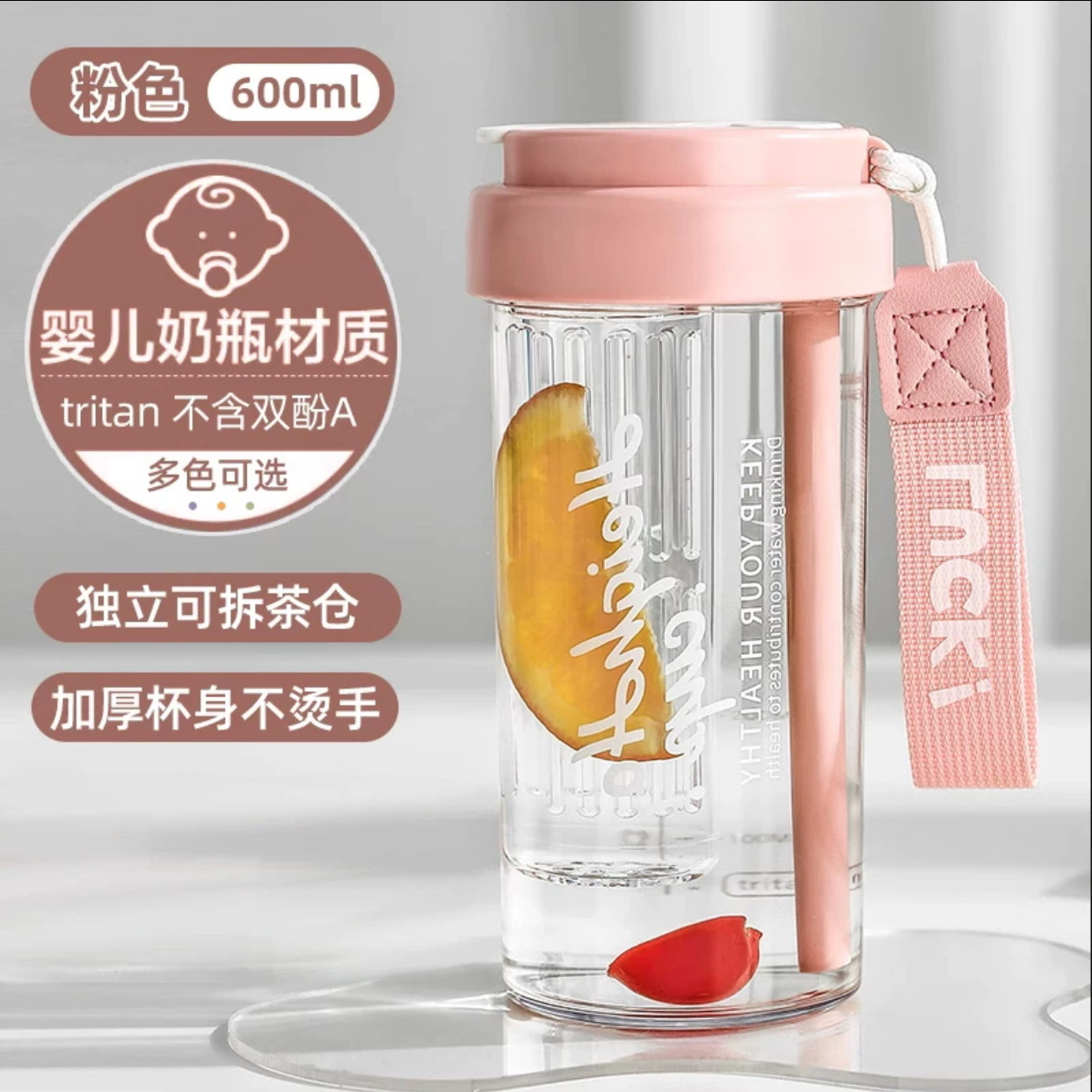 新款网红大肚杯塑料水壶儿童水杯大容量高颜值花茶杯带茶仓拎拎壶
