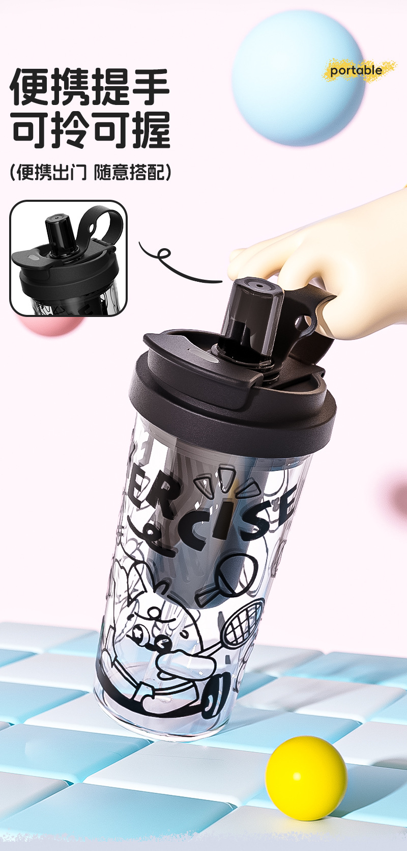 新款塑料水杯tritan随行杯户外运动水杯夏季健身男女骑行杯带吸管