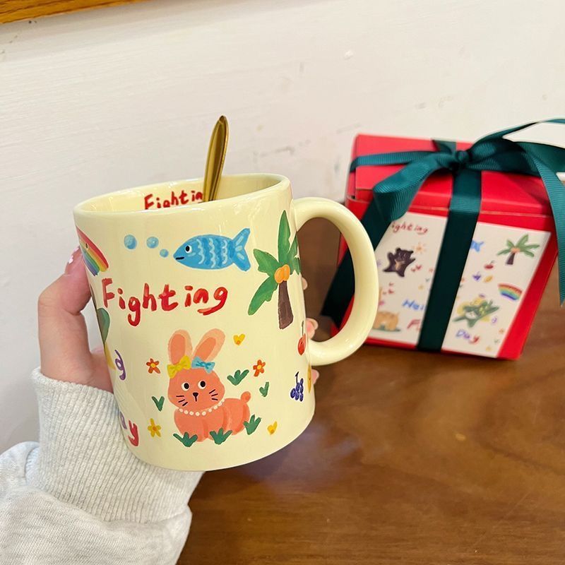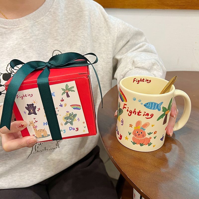 可爱卡通涂鸦马克杯学生水杯广告商务促销礼品生日新年毕业礼物