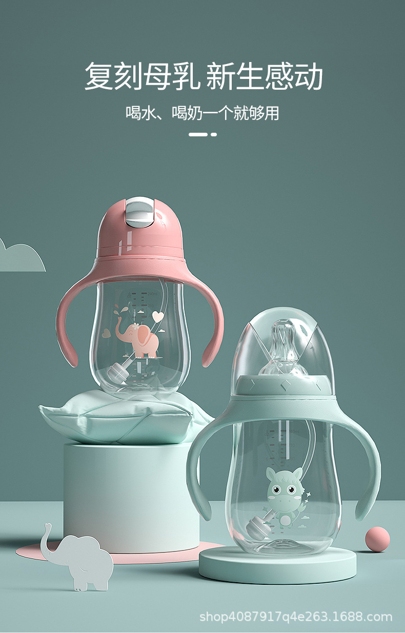 婴儿奶瓶新生儿两用儿童吸管水杯宽口径套装婴儿用品跨境批发厂家