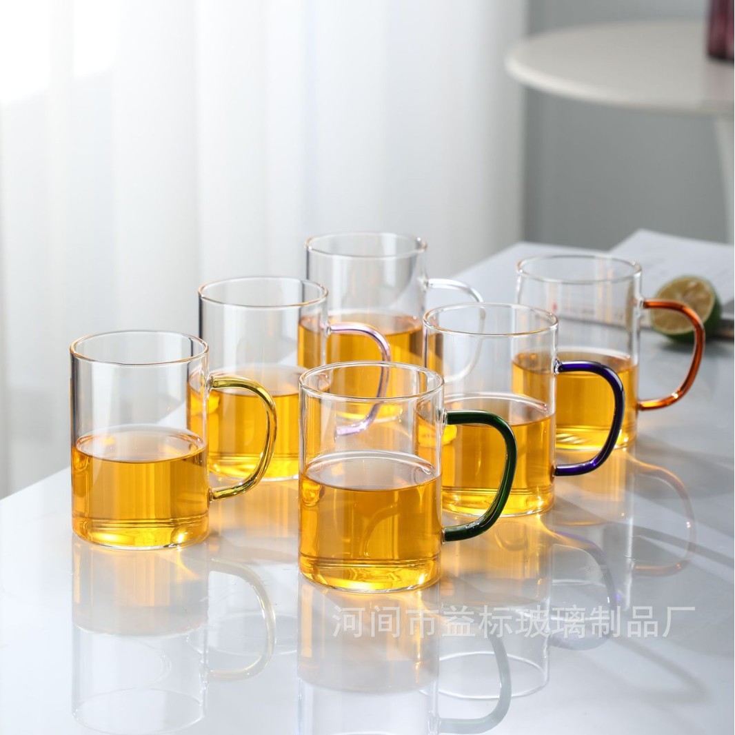 厂家批发创意彩把耐高温泡茶绿茶杯牛奶加厚玻璃水杯直身家用杯子